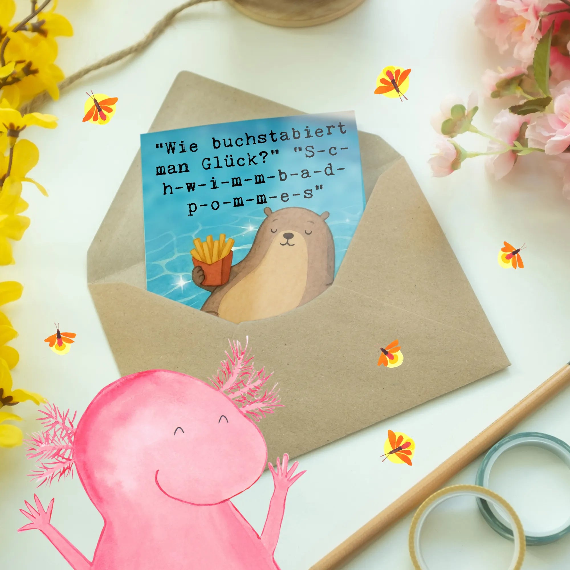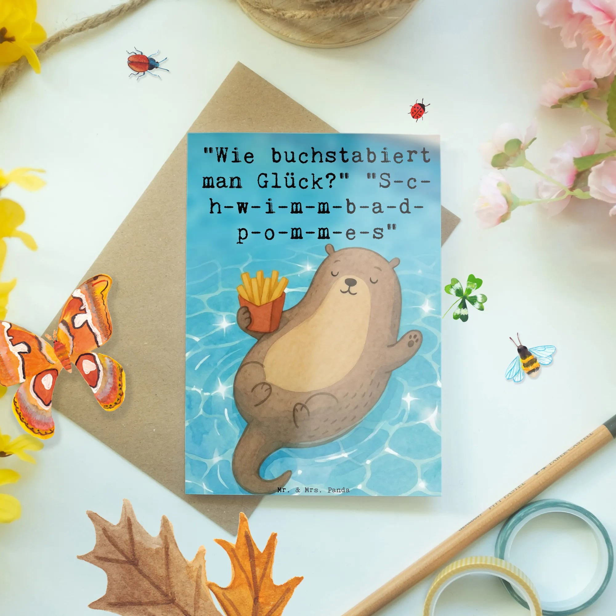 Glückwunschkarte Otter Schwimmbad Pommes Design - mit Spruch