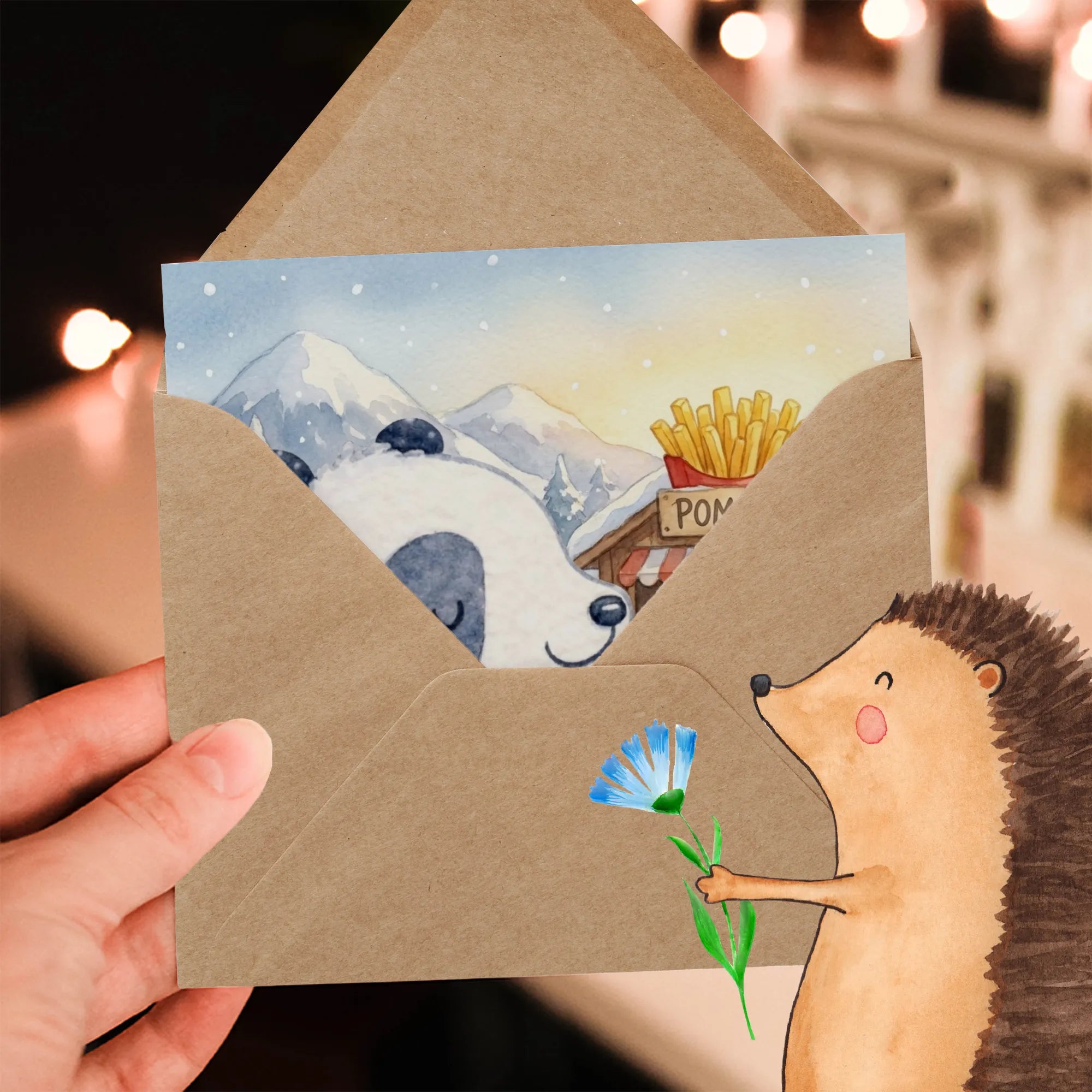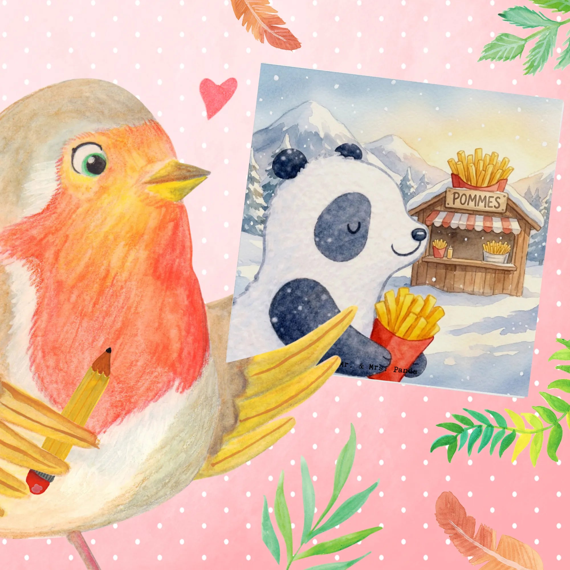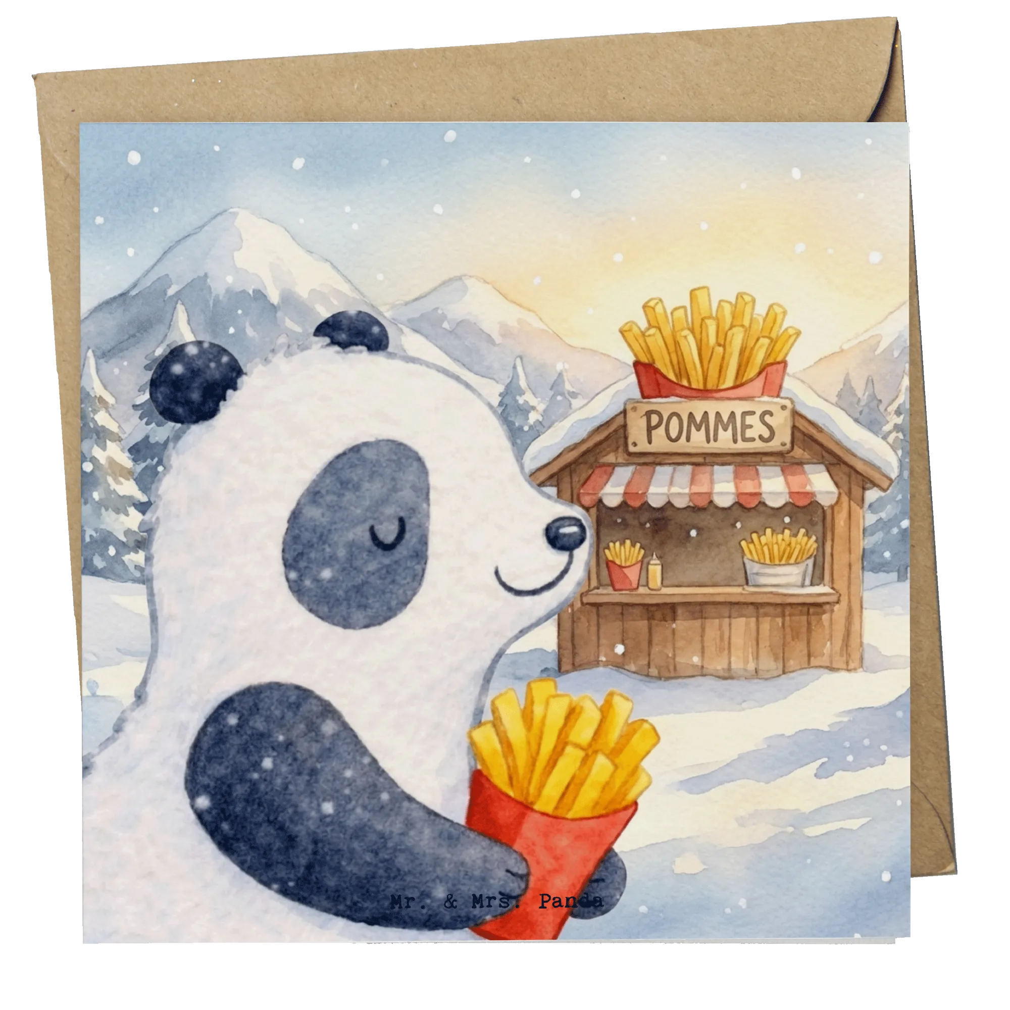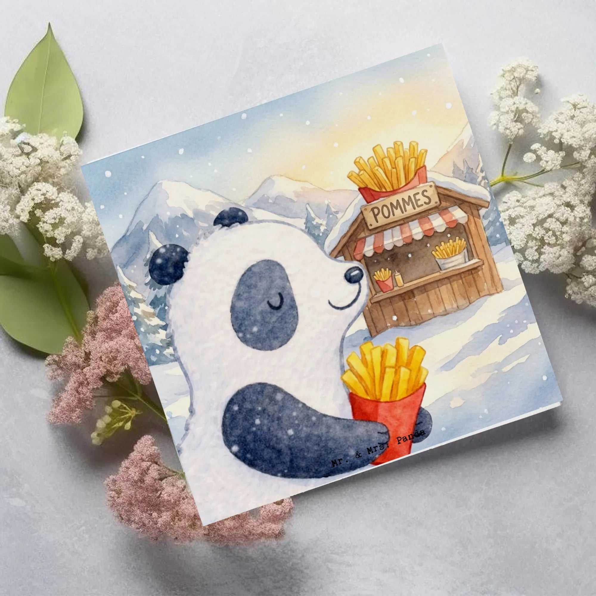 Grußkarte Panda Winter Pommes Design – Mr. & Mrs. Panda