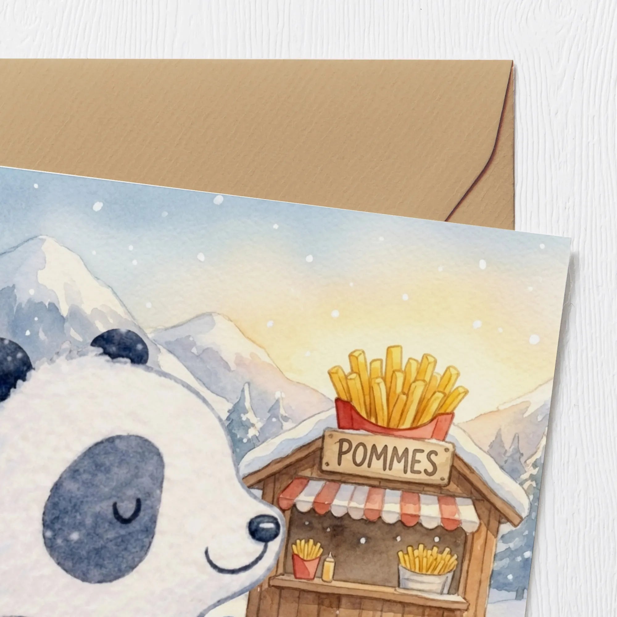 Grußkarte Panda Winter Pommes Design Doppelkarte, Klappkarte, Anlasskarte, Faltkarte, Grußkarte, Glückwunschkarte