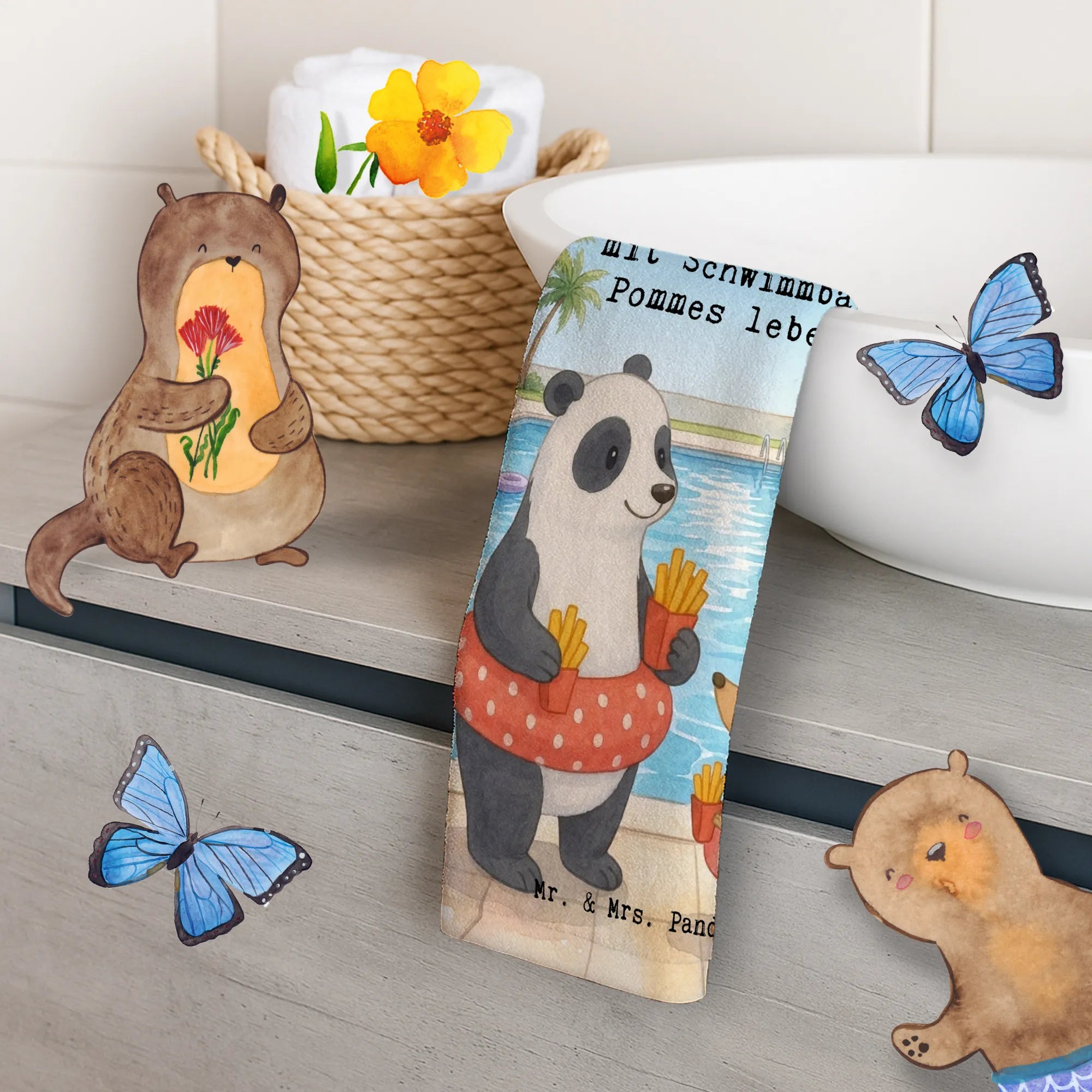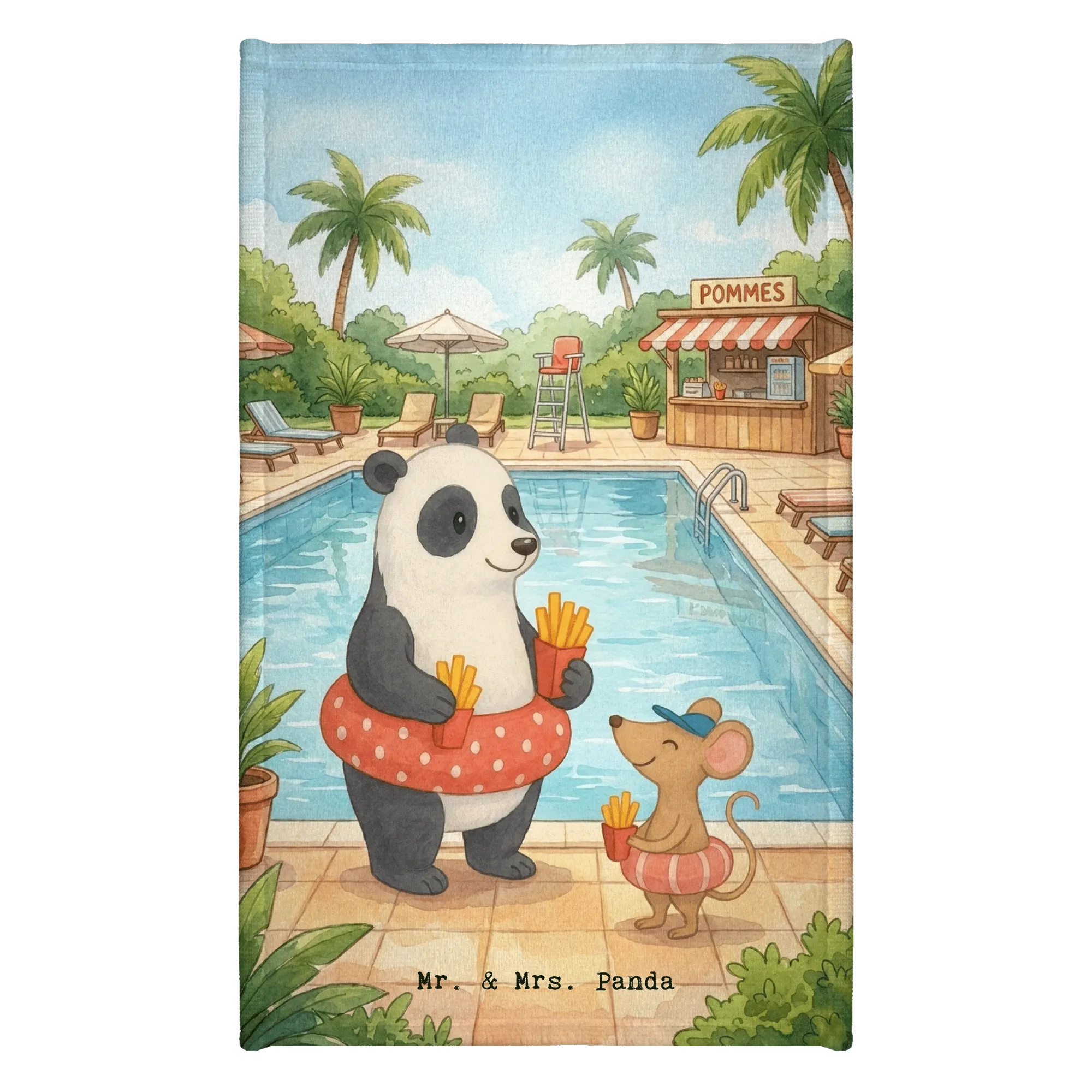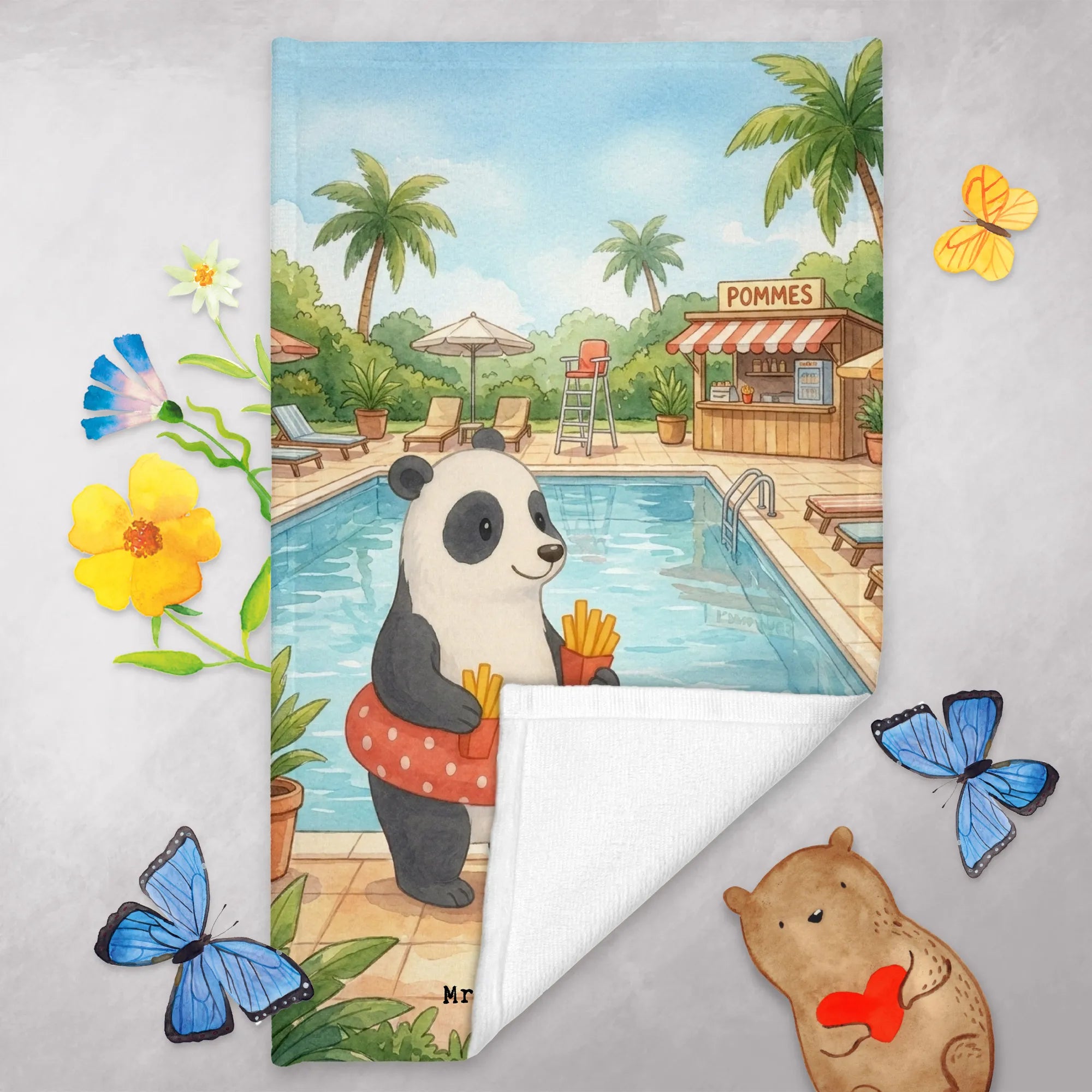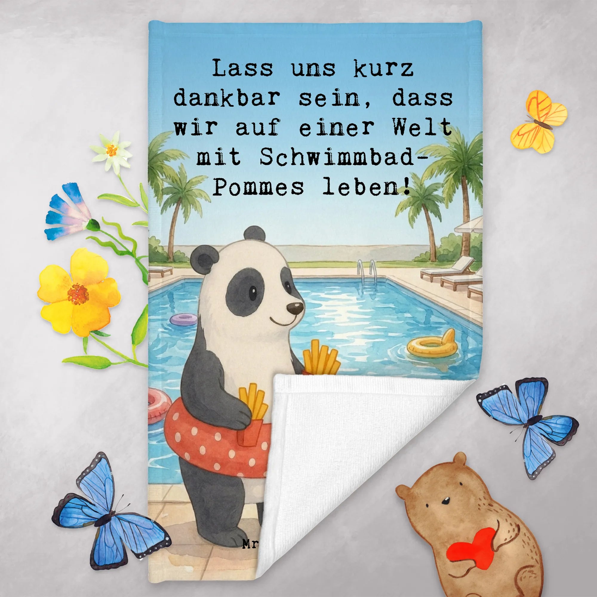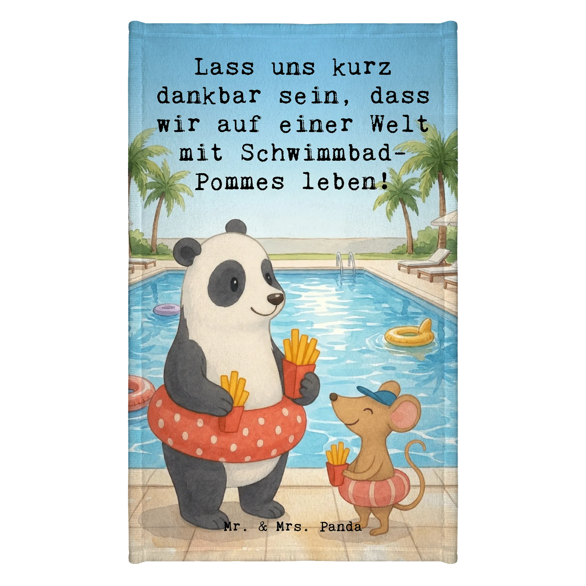 Handtuch Gäste-WC Panda Schwimmbad Pommes Design - mit Spruch