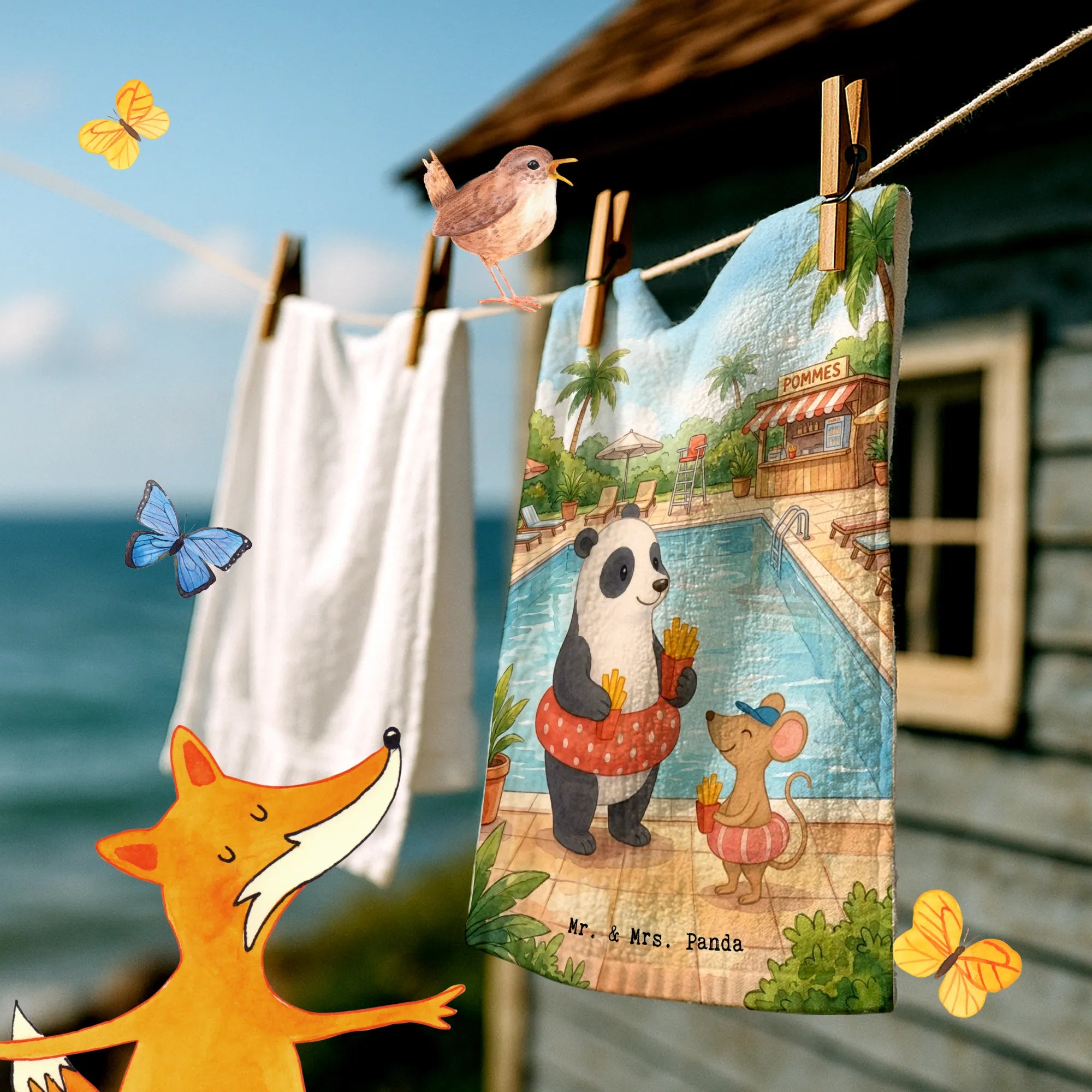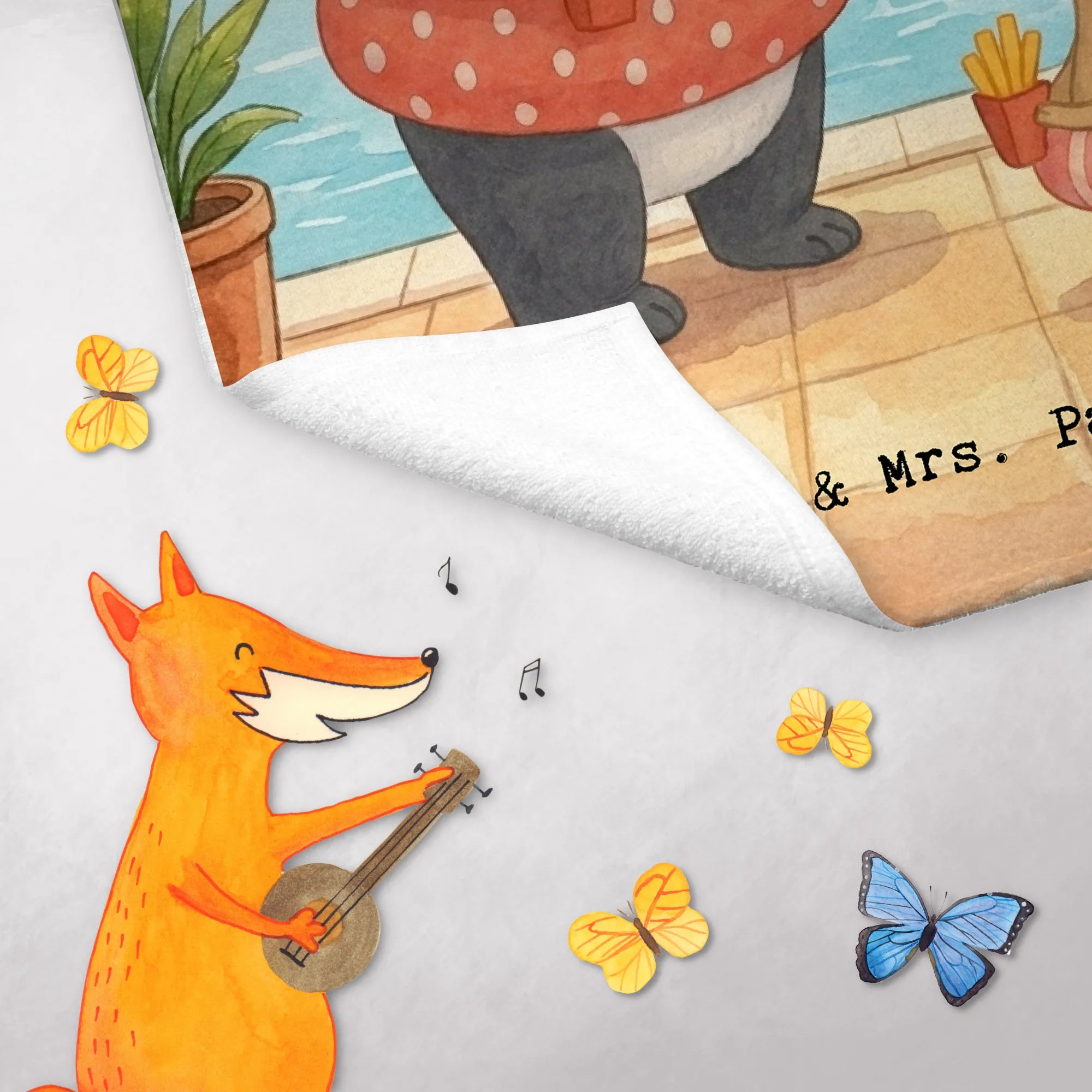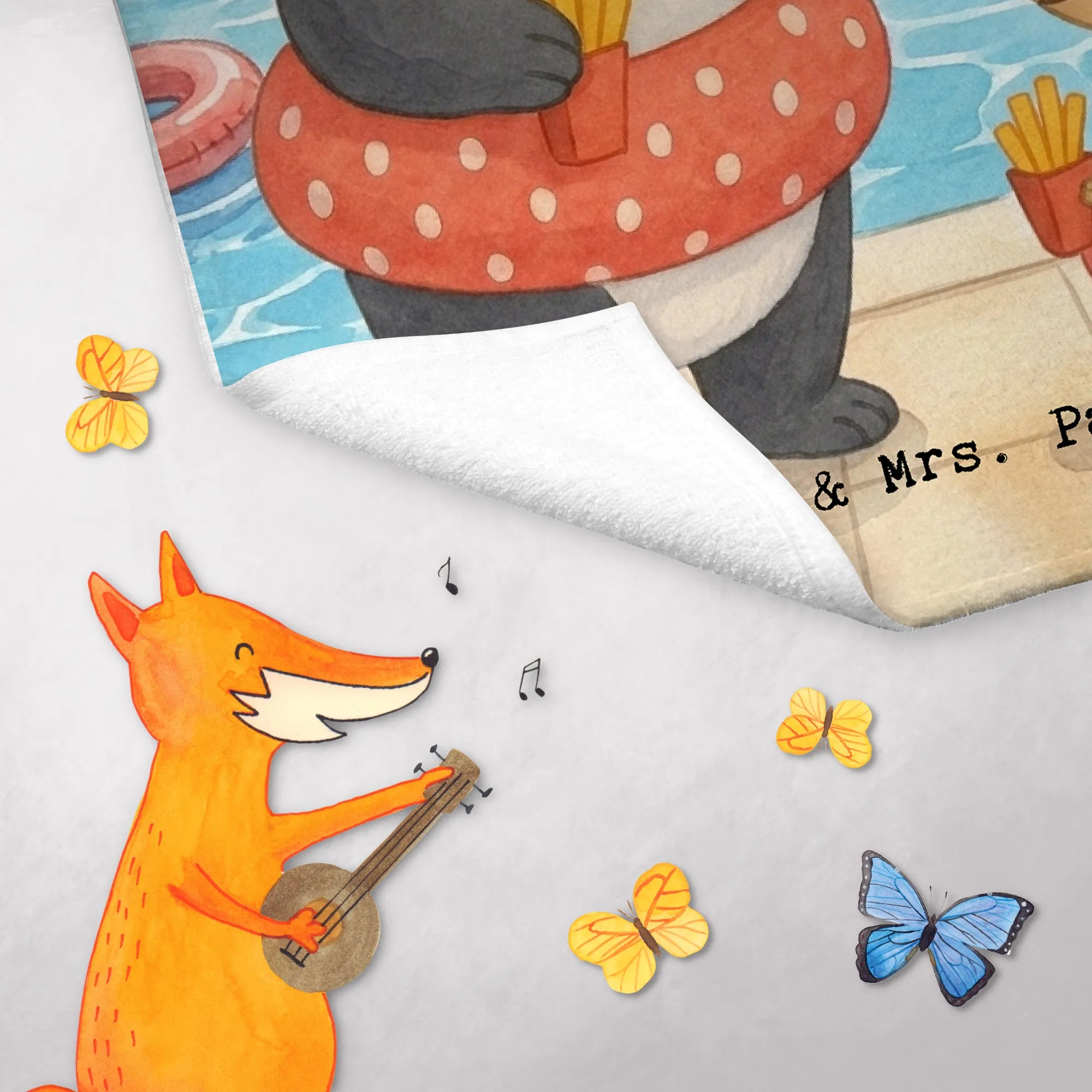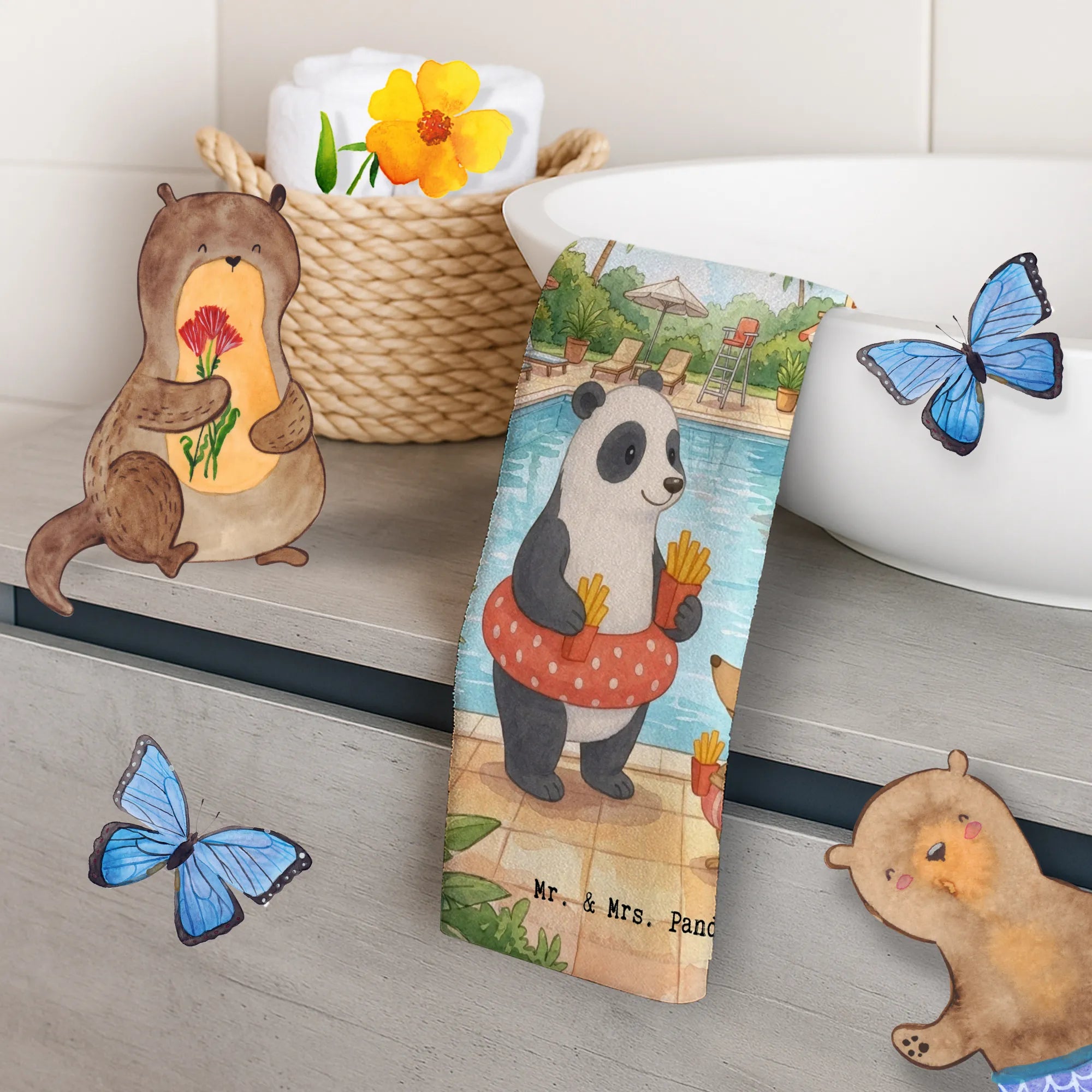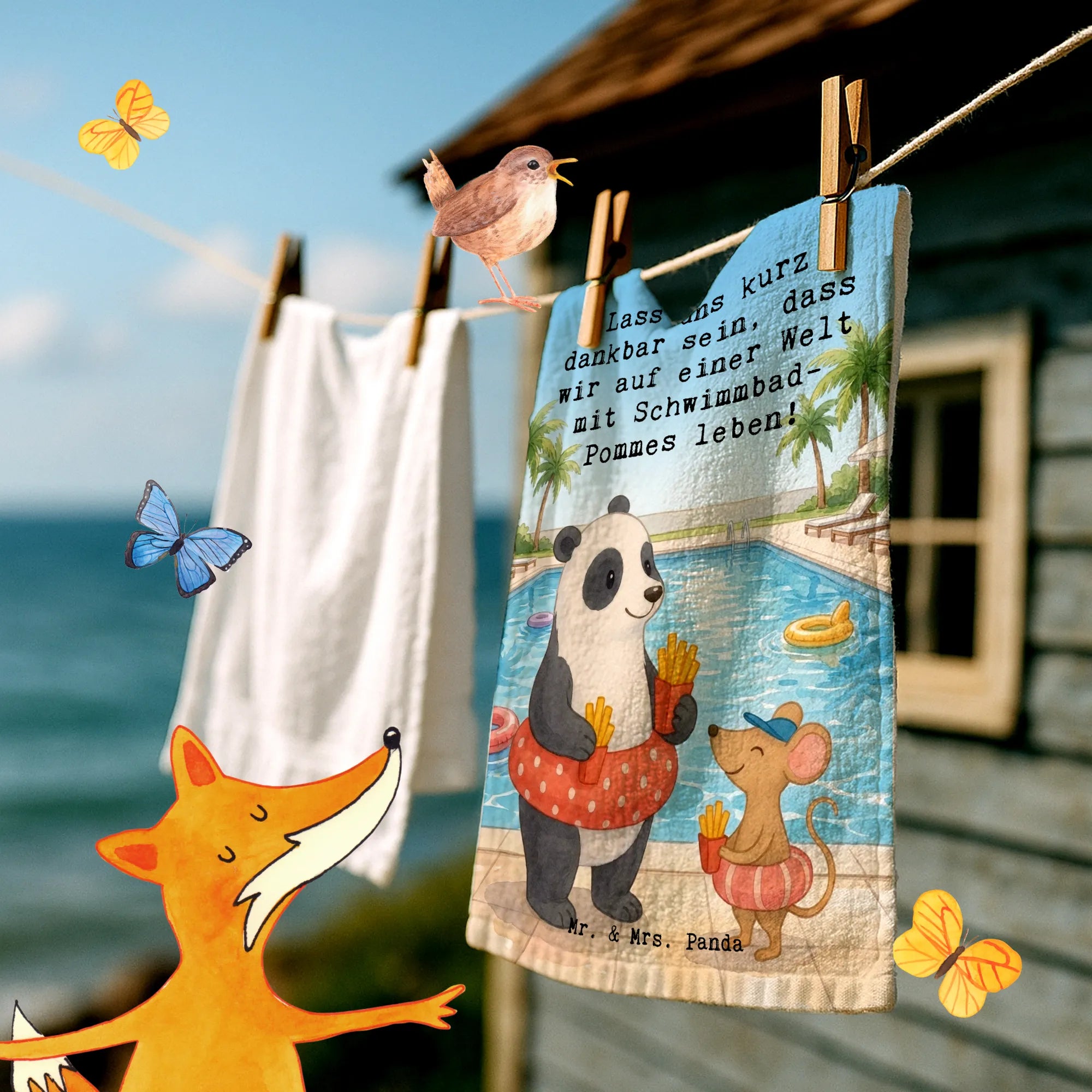 Handtuch Gäste-WC Panda Schwimmbad Pommes Design - mit Spruch