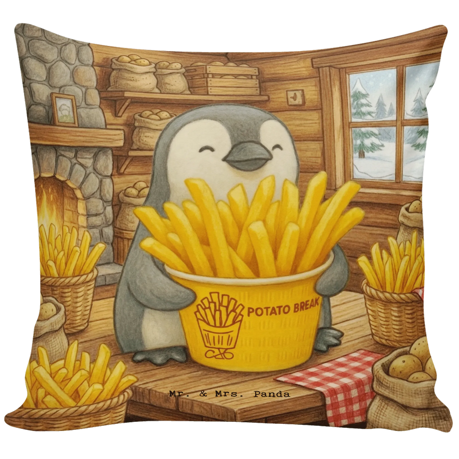 Kuschelkissen 40x40 Pinguin Pommes Eimer Design