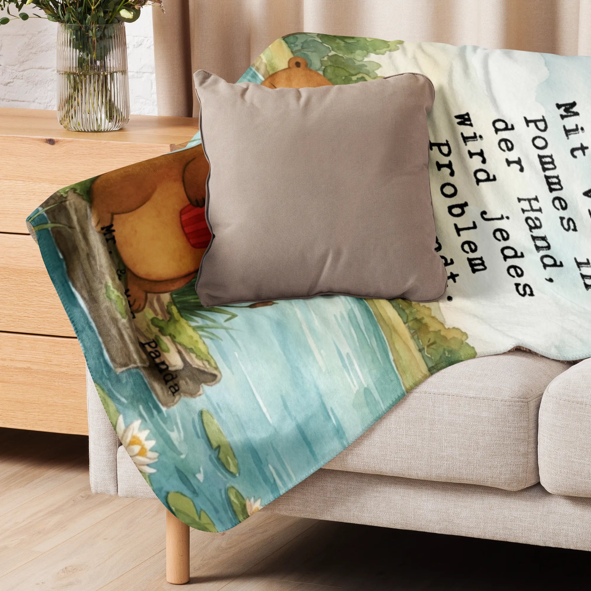 Sofadecke Otter See Pommes Design - 130 x 155 cm - mit Spruch