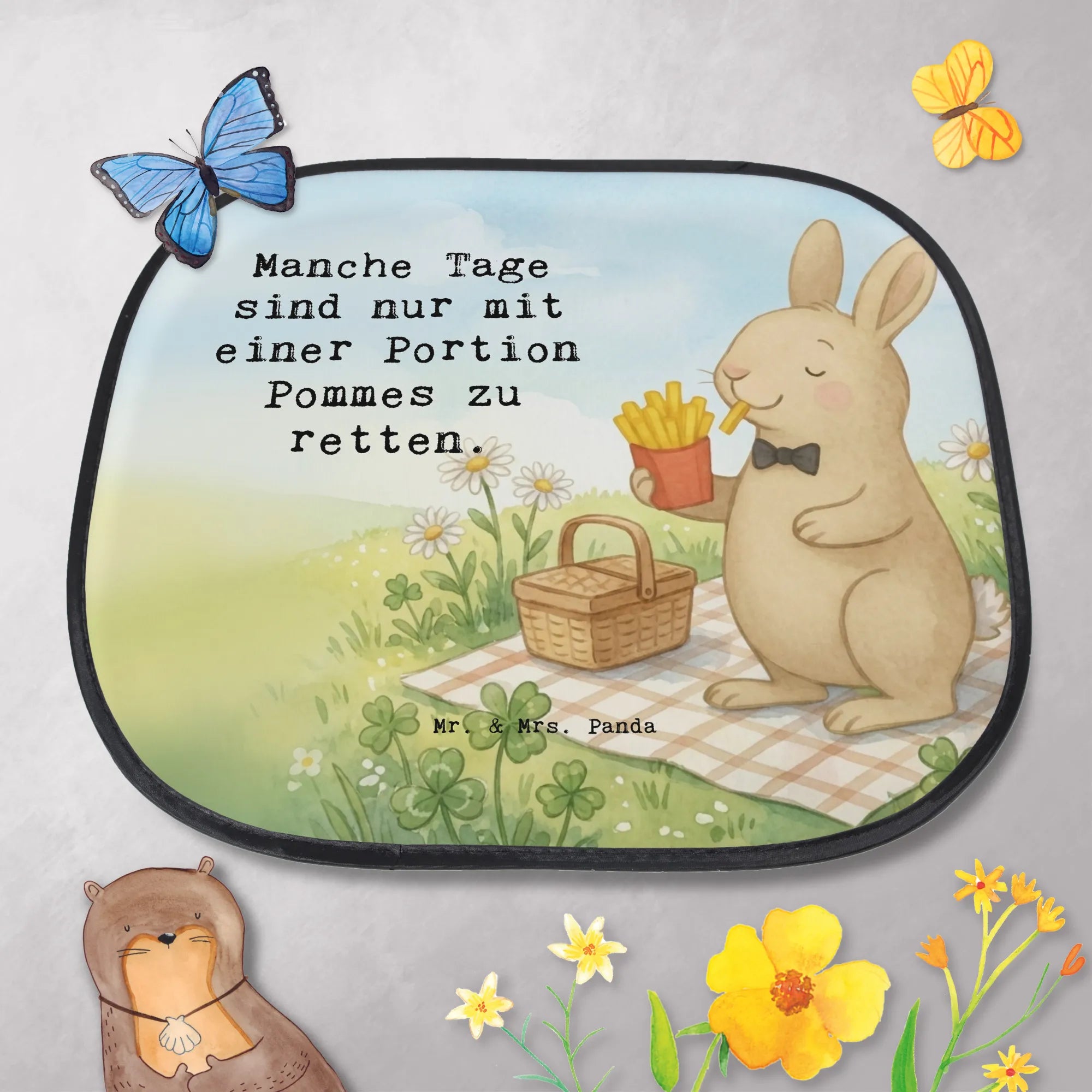 Sonnenschutz Auto Hase Pommes Design - mit Spruch