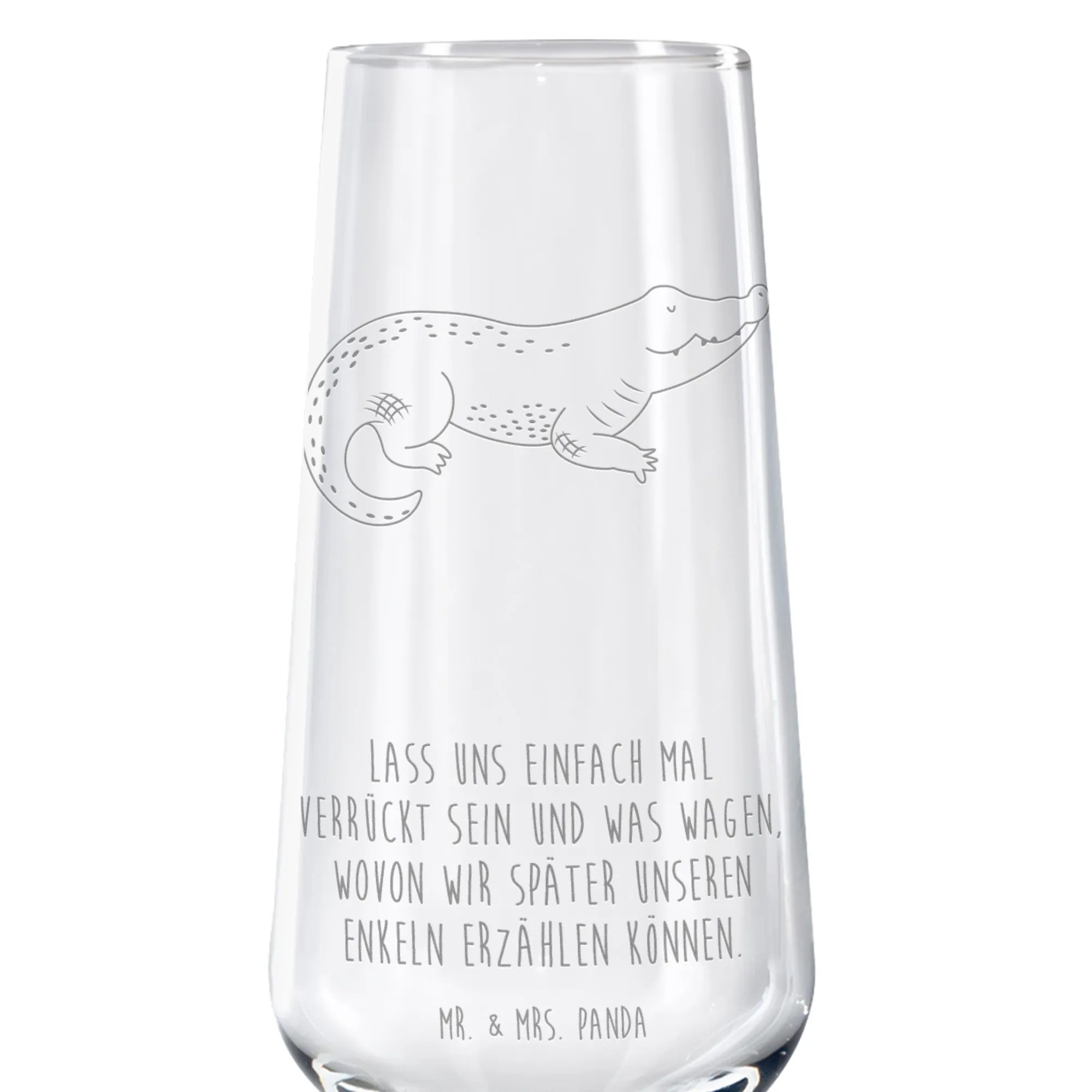 Das Krokodil Glas von Mr. & Mrs. Panda ist der perfekte Begleiter für alle Abenteuerlustigen und Meerestiere-Fans! Mit einem entzückenden Krokodil-Motiv bringt es eine Prise Spaß und eine Portion Fröhlichkeit in jeden Kaffeegenuss. Ob du deinen Latte Macchiato, Cappuccino oder einen erfrischenden Cocktail servierst, dieses Glas sorgt garantiert für gute Laune! Das freundliche Krokodil, das in sanften Grün- und Blautönen illustriert ist, vermittelt ein Gefühl von Entspannung und Lebensfreude. Es trägt den Slogan: 'Lass uns einfach mal verrückt sein und was wagen, wovon wir später unseren Enkeln erzählen können.' – perfekt für all jene, die das Leben in vollen Zügen genießen wollen.