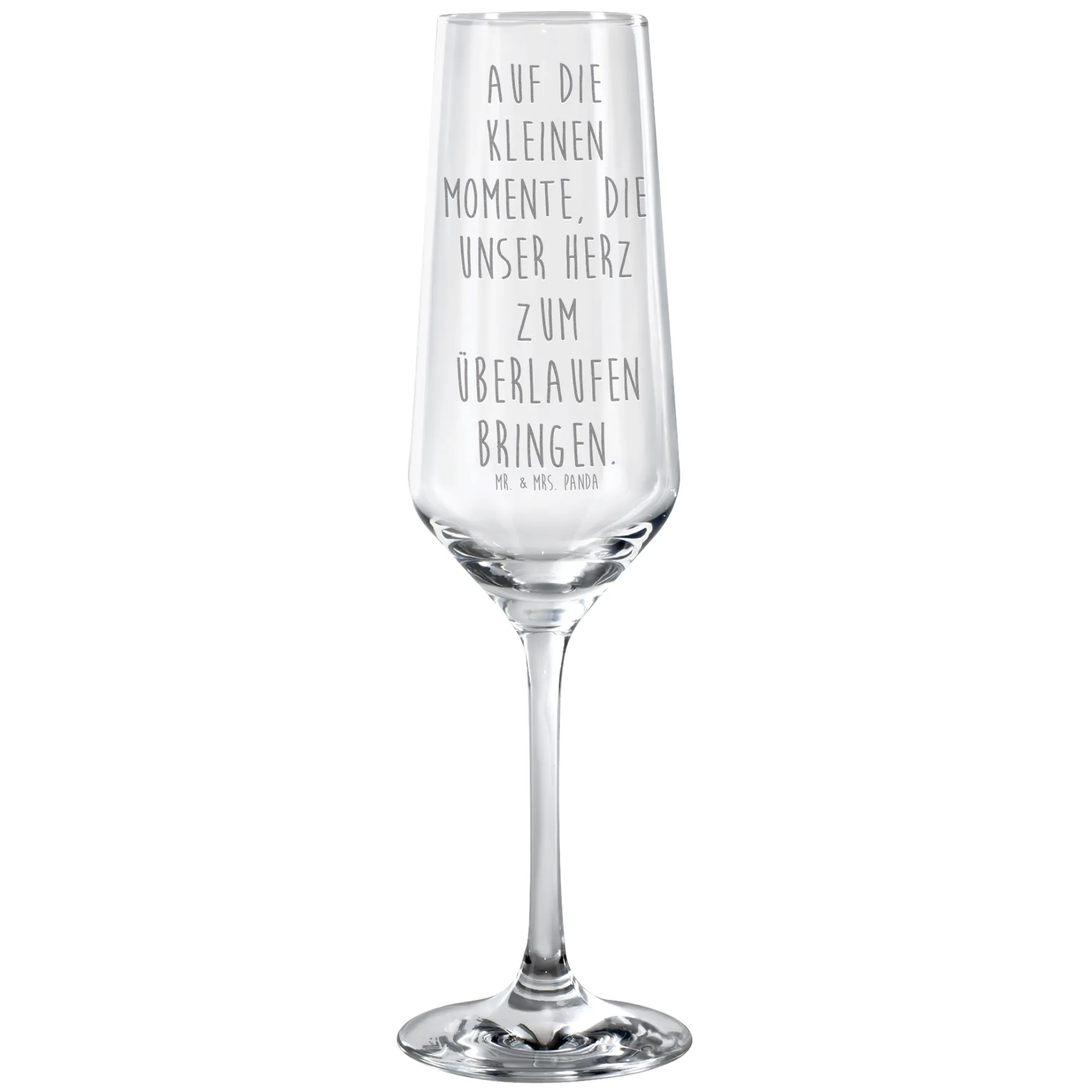 Schenke deinen besonderen Momenten den perfekten Glanz mit unseren wunderschönen Sektgläsern von Mr. & Mrs. Panda. Diese Sektgläser sind nicht einfach nur Glasbehälter – sie sind ein Ausdruck von Freude, Liebe und unvergesslichen Erinnerungen! Ob für einen Toast auf die besten Freunde, Feiern zu besonderen Anlässen wie Hochzeiten oder Geburtstagspartys, oder einfach für einen entspannten Abend zu Hause – ein Sektglas mit Gravur, das den Slogan "Auf die kleinen Momente, die unser Herz zum Überlaufen bringen." trägt, verwandelt jeden Schluck in ein besonderes Erlebnis.