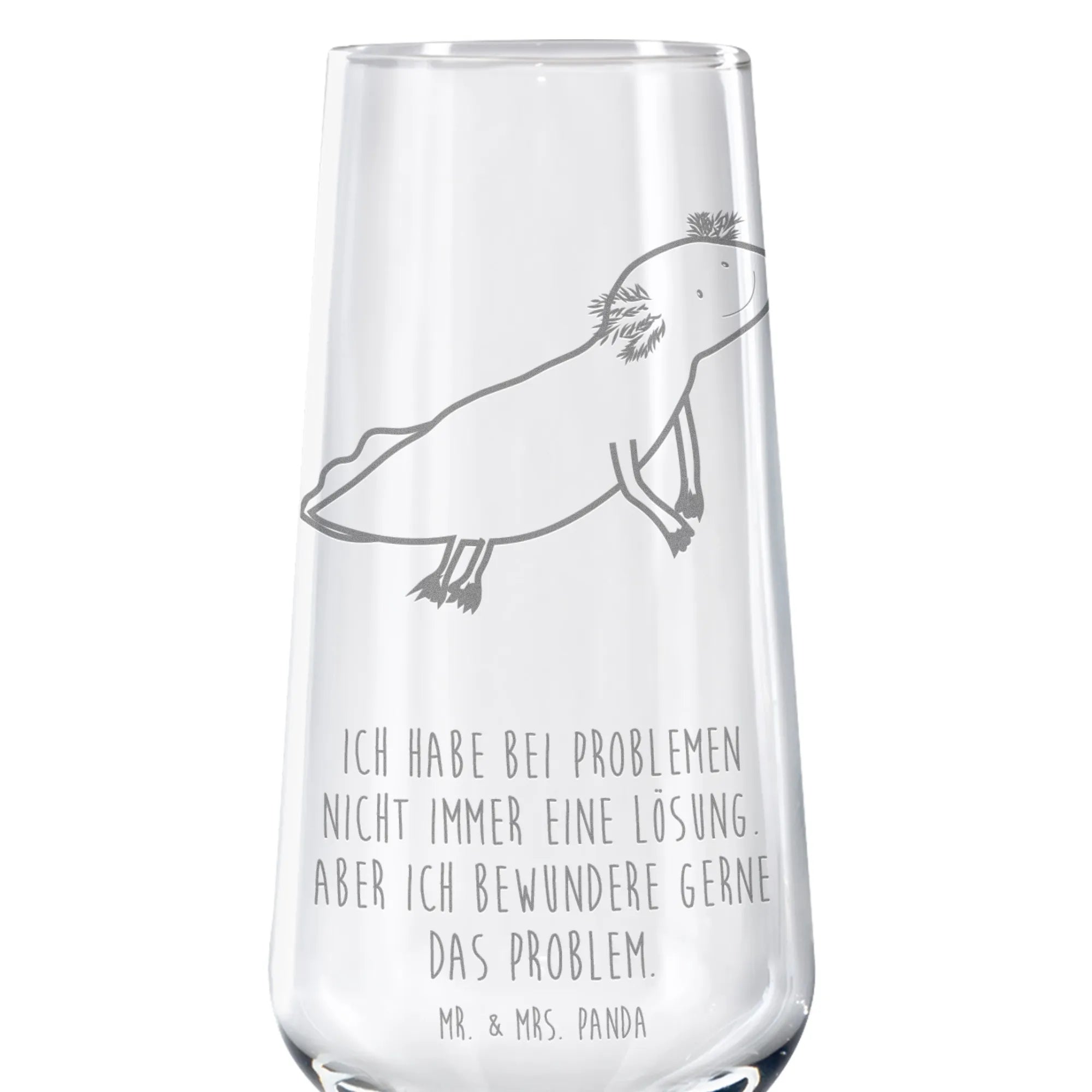 Entdeck das Axolotl-Glas von Mr. & Mrs. Panda 🐾 Tauche ein in die fröhliche Unterwasserwelt: Das Trinkglas „Axolotl schwimmt" kombiniert klares, modernes Design mit einem süßen Axolotl-Motiv. Ein Allzweckglas, das sowohl als Wasserglas wie auch als Saftglas oder Glasbecher für Cocktails funktioniert.