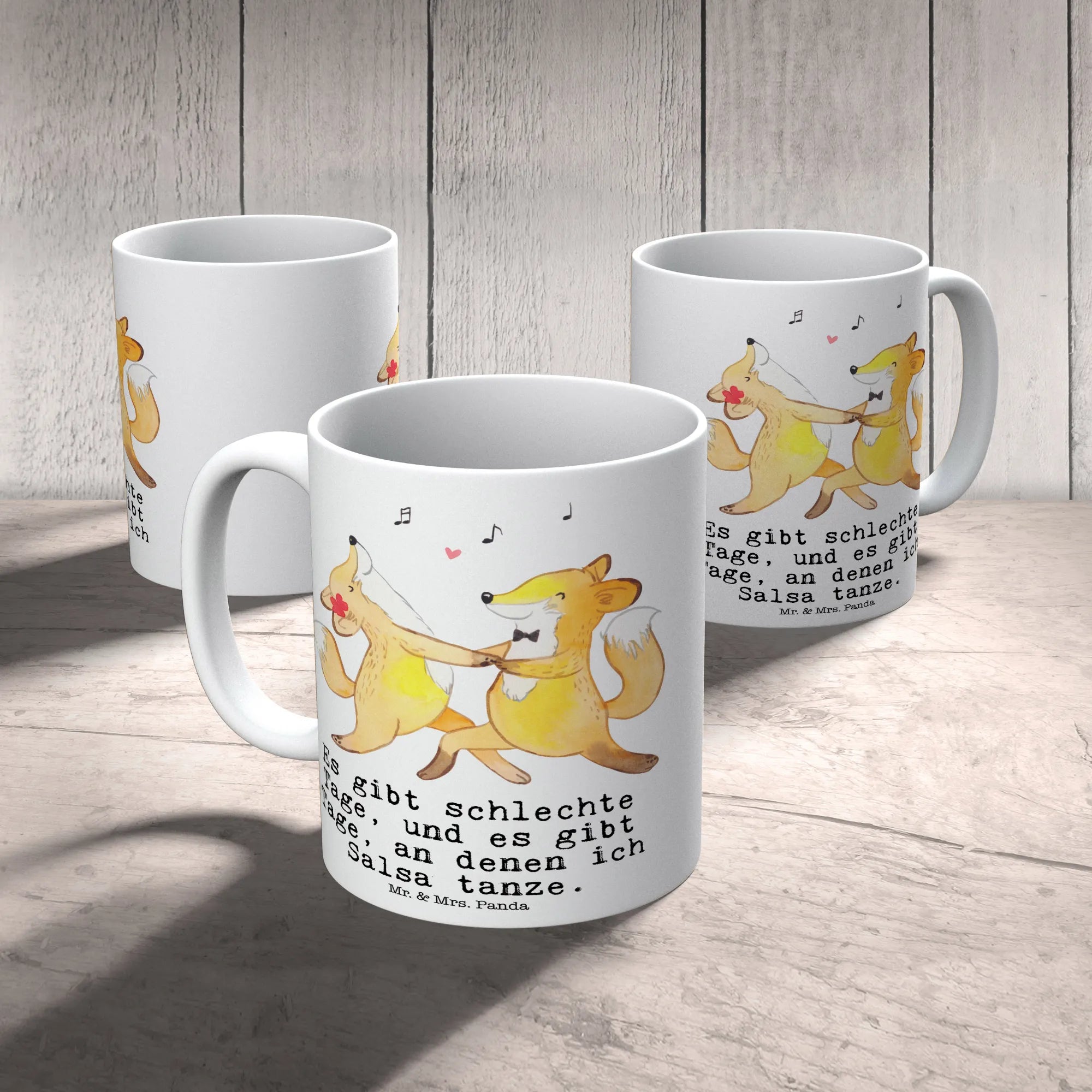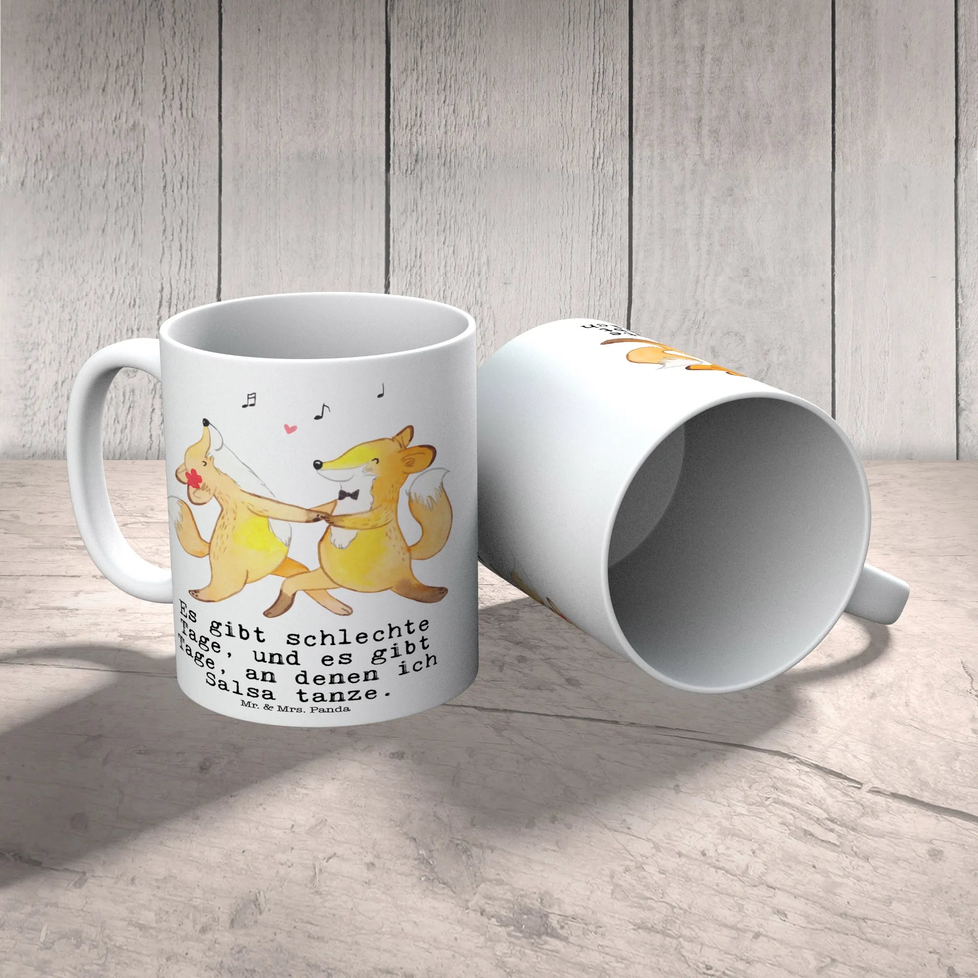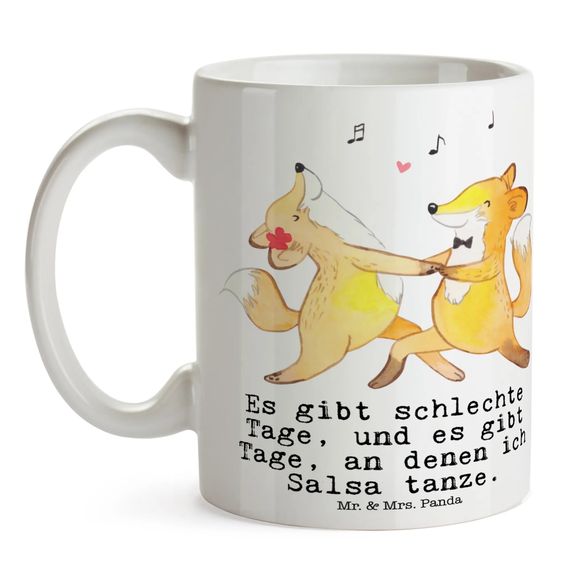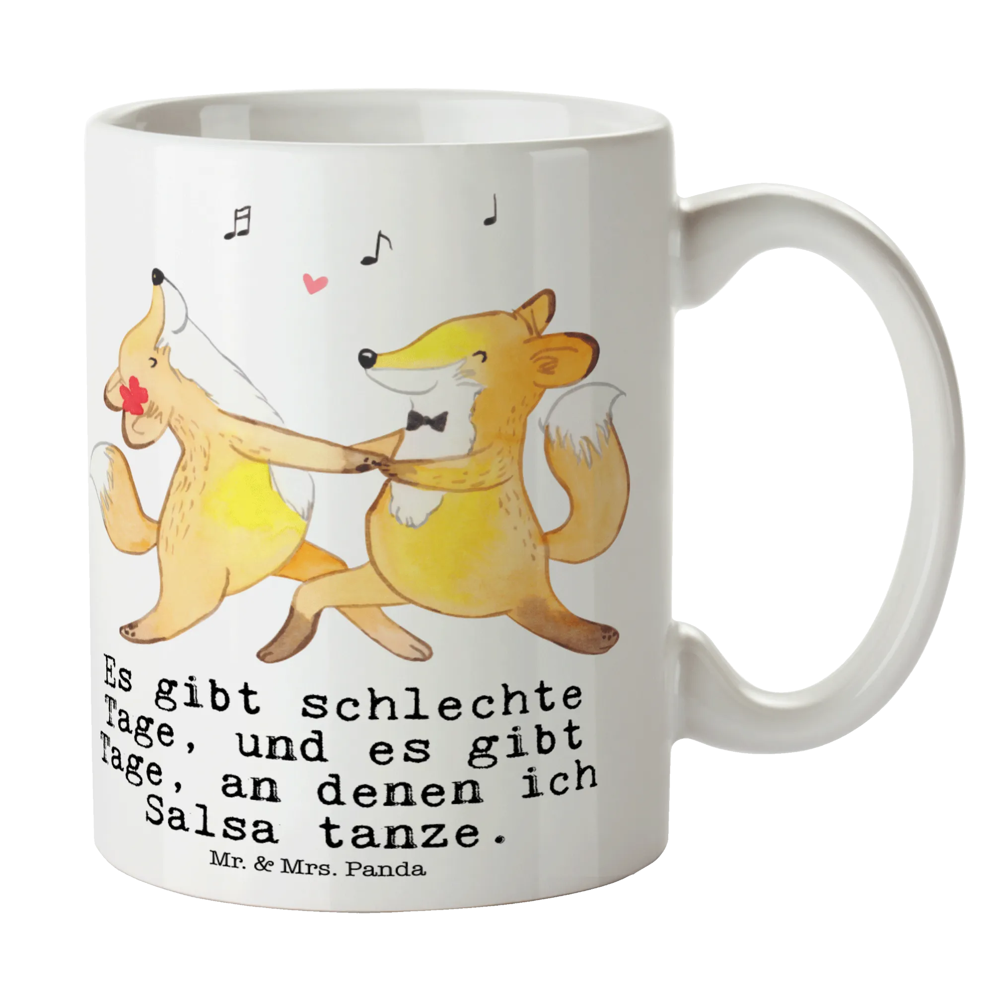 Suchst Du ein Geschenk, das Herz und Rhythmus trifft? Unsere Tasse „Füchse Salsa tanzen Tage“ aus der Mr. & Mrs. Panda Kollektion Hobby & Sport ist genau das: niedlich, inspirierend und alltagstauglich. Auf dem hellen, glänzenden Hintergrund tanzen zwei charmante Füchse Salsa – ein Motiv, das sofort gute Laune verbreitet. Der liebevolle Spruch „Es gibt schlechte Tage, und es gibt Tage, an denen ich Salsa tanze.“ macht die Tasse zum perfekten Mutmacher für jeden Morgen.