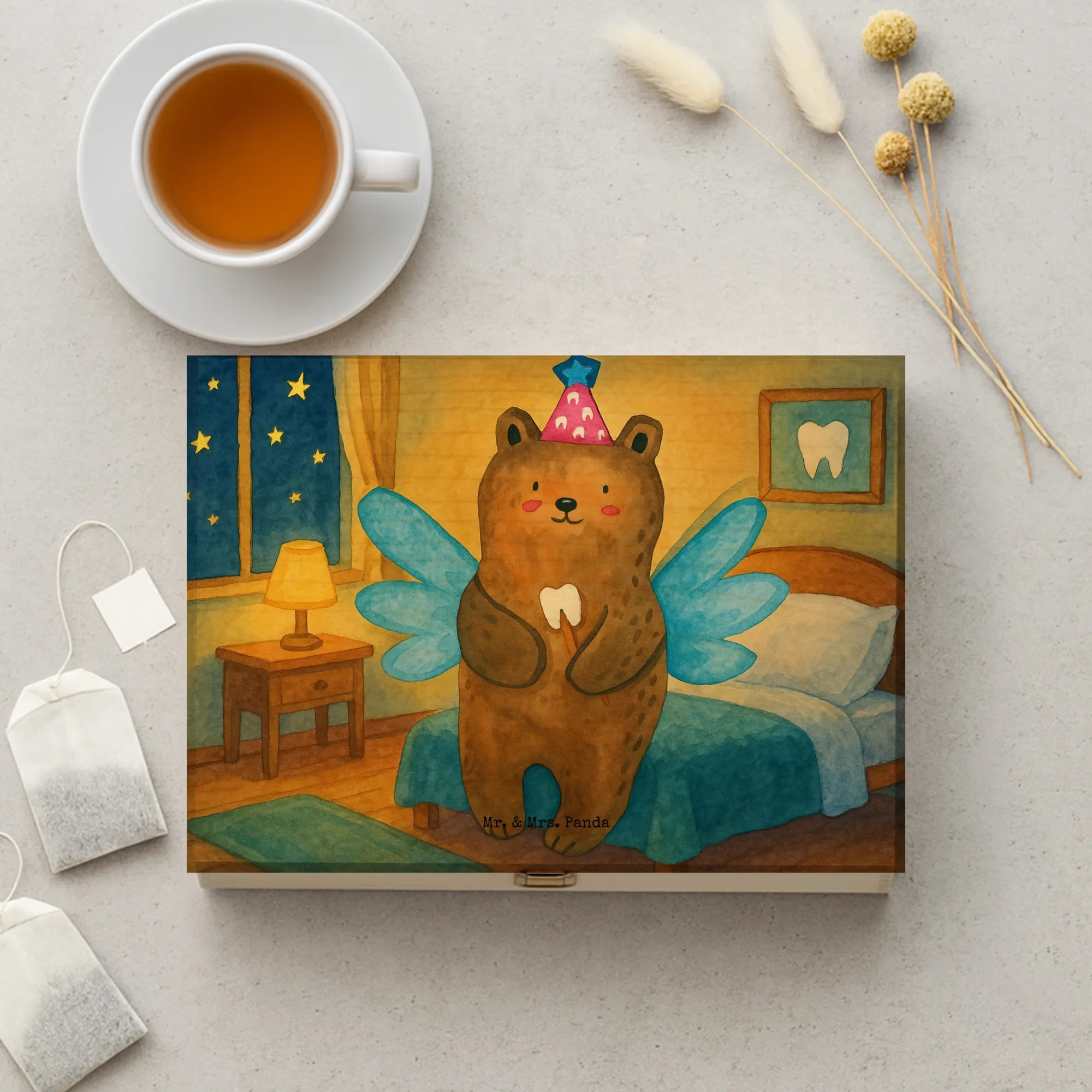 Holz Teebox Bär Zahnfee Design - mit Spruch
