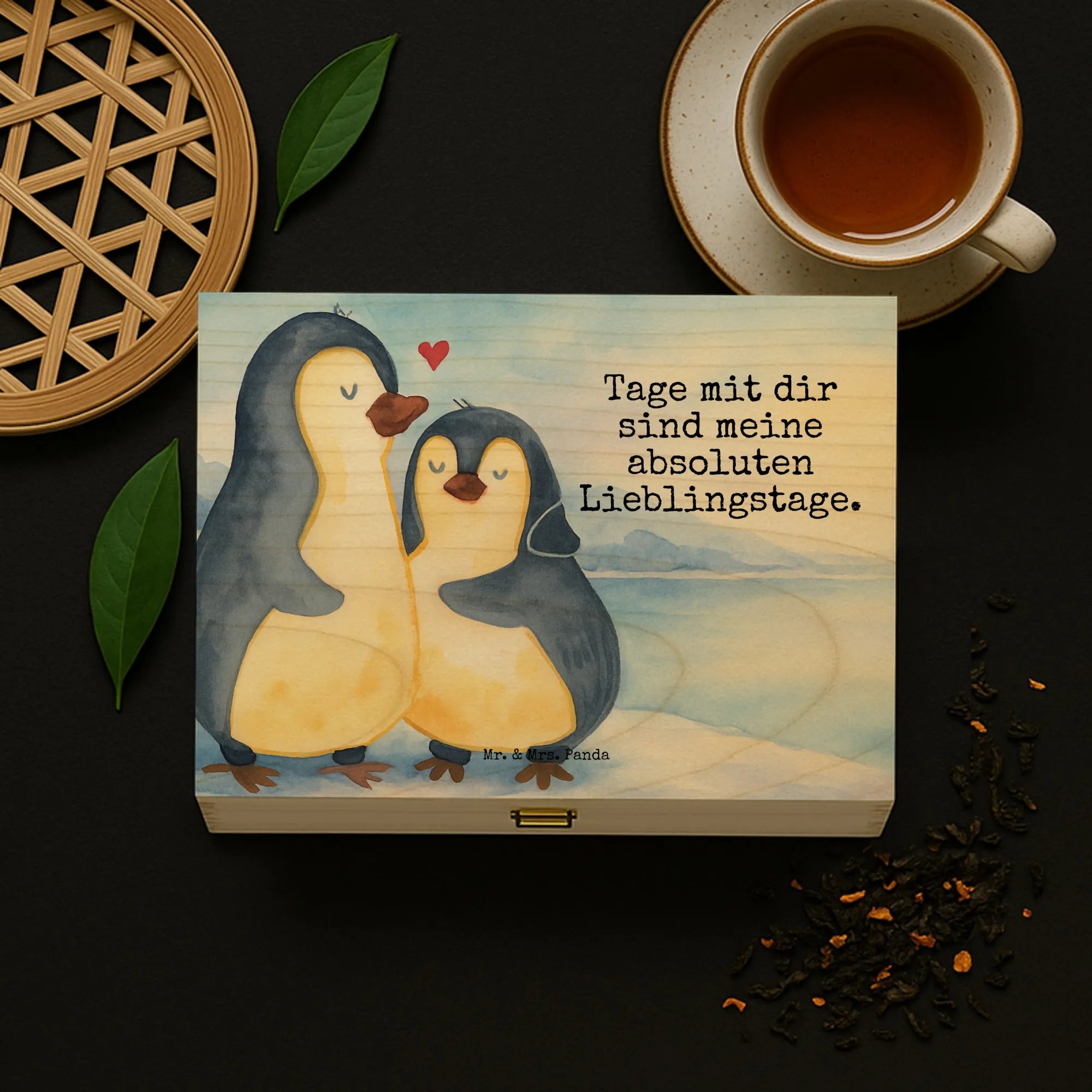 Tee-Aufbewahrungsbox Pinguin umarmen Design - mit Spruch