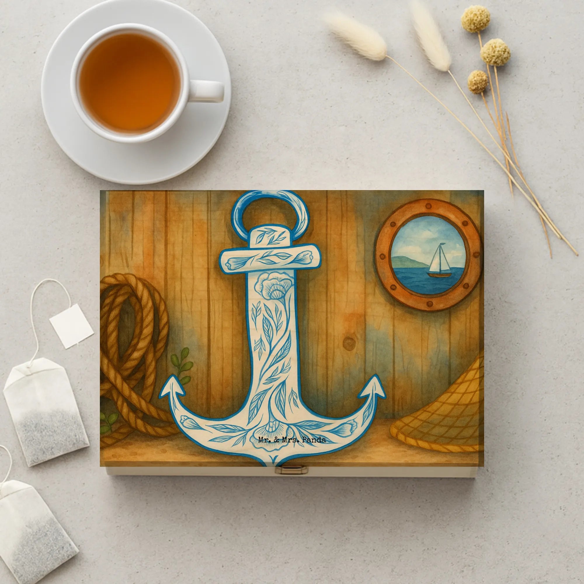 Die Teekiste besticht durch ihr liebevolles Design aus der Small World Kollektion. Das Motiv „Anker Blau“ wurde von Mrs. Panda persönlich mit Aquarellfarben handgezeichnet. Der Anker steht für Stabilität, Hoffnung und die Liebe zum Meer. Das tiefe Blau strahlt eine wunderbare Ruhe aus und erinnert dich täglich daran, deinen eigenen Kurs zu halten. 🌊
