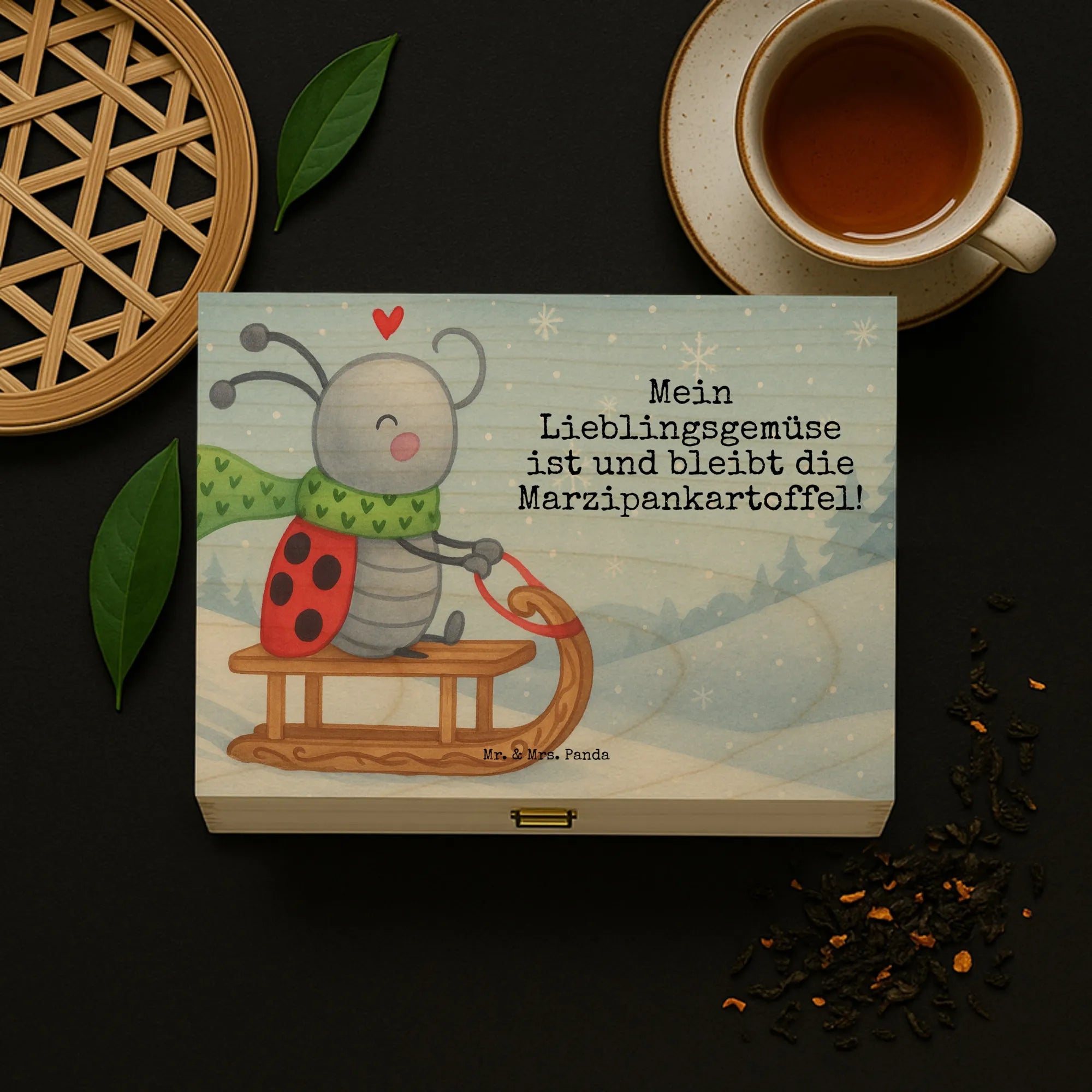 🐼 TEE ORGANIZER BOX: Funktionale Holzbox mit schönem Druck und stabilem Verschluss.