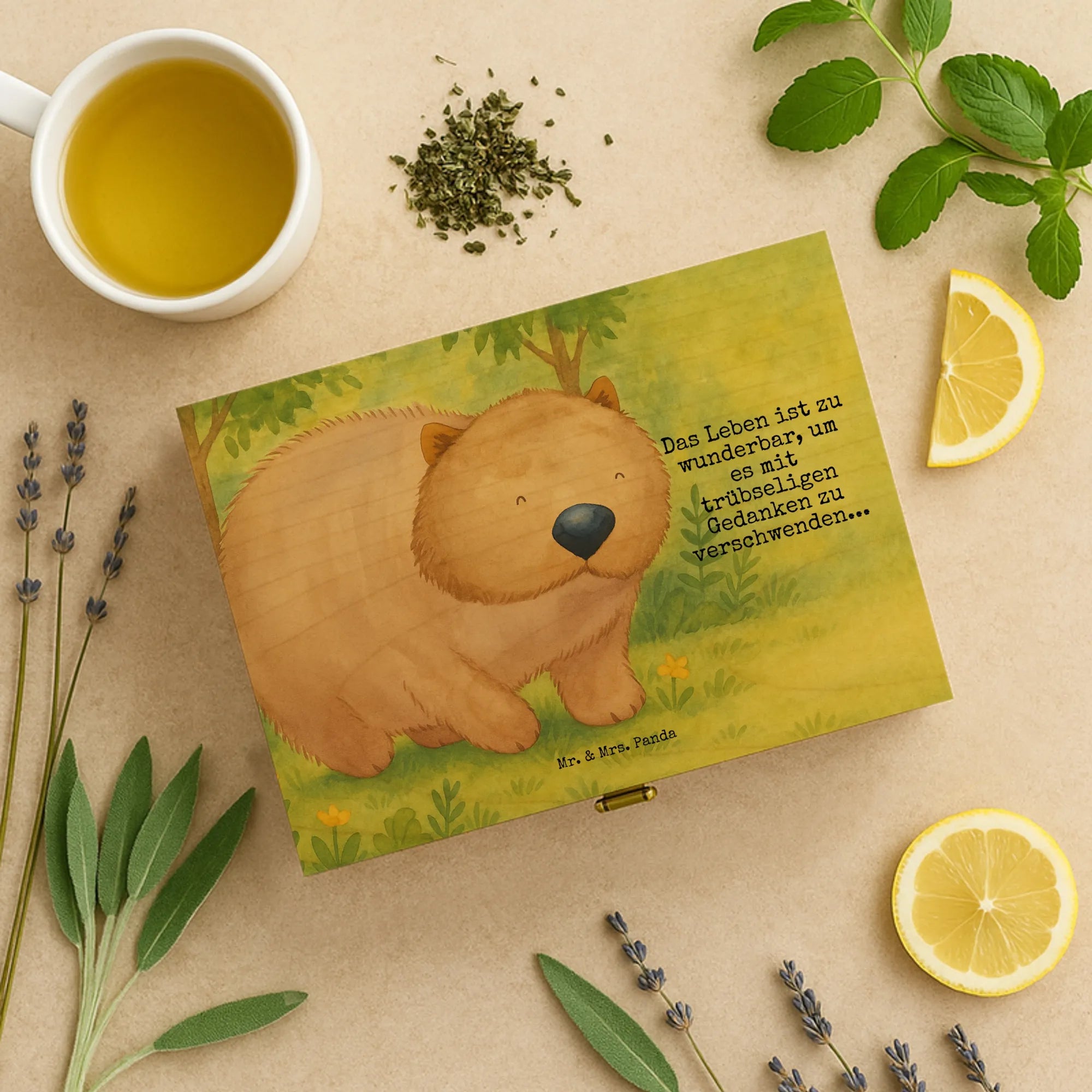 teebox holz Wombat Design - mit Spruch