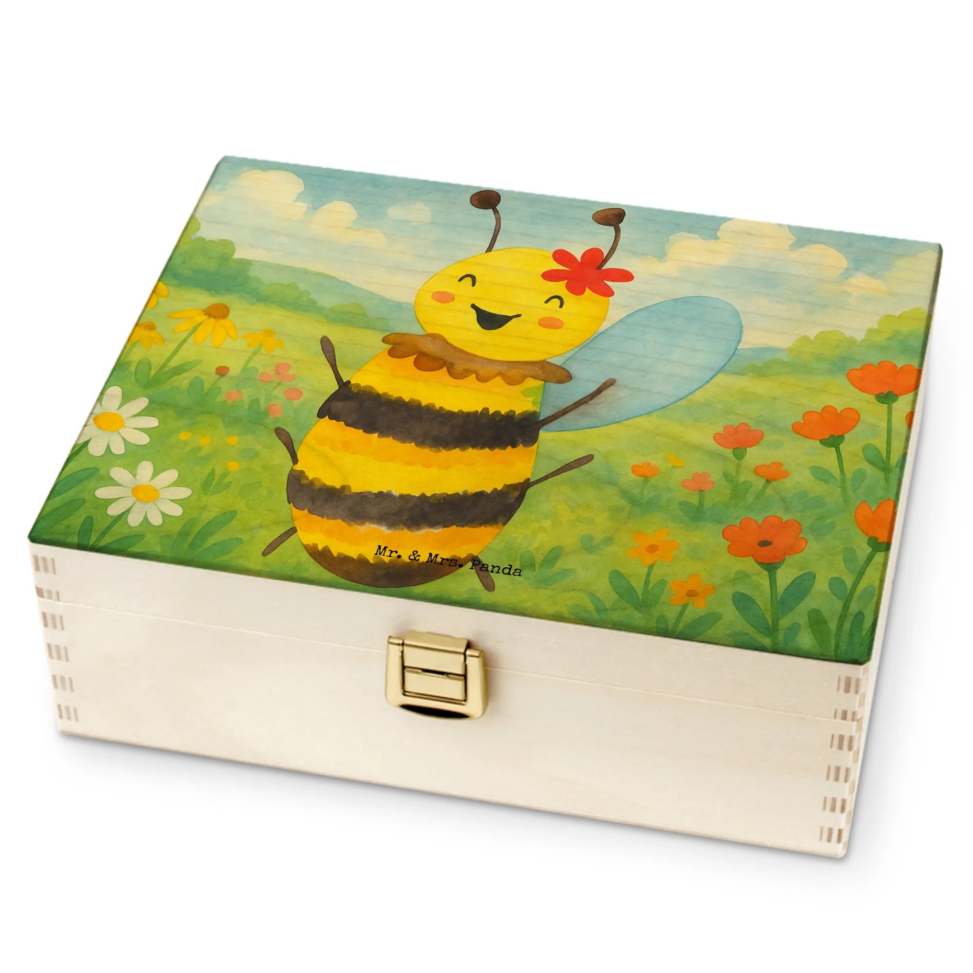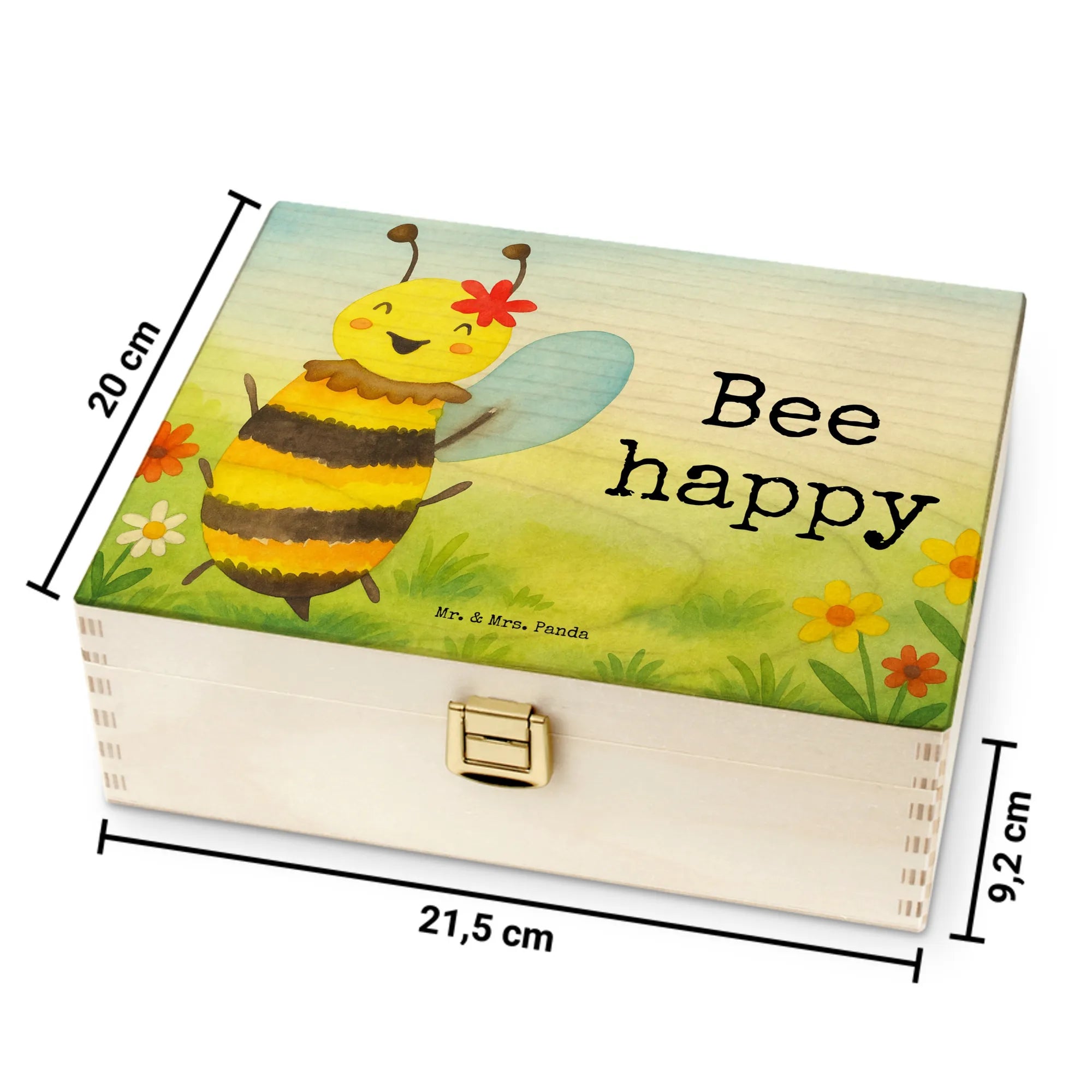 Gefertigt aus hochwertigem 7 mm Birke-Schichtholz und veredelt mit einem fasertiefen, umweltfreundlichen Druck, ist diese Teedose ein echtes Qualitätsprodukt. Das Motiv 'Biene Happy' mit dem motivierenden Spruch 'Bee happy' wurde von Mrs. Panda liebevoll mit Aquarellfarben handgezeichnet. Die kleine Biene mit der Blume auf dem Kopf strahlt so viel positive Energie aus, dass man gar nicht anders kann, als mitzulächeln. 😊