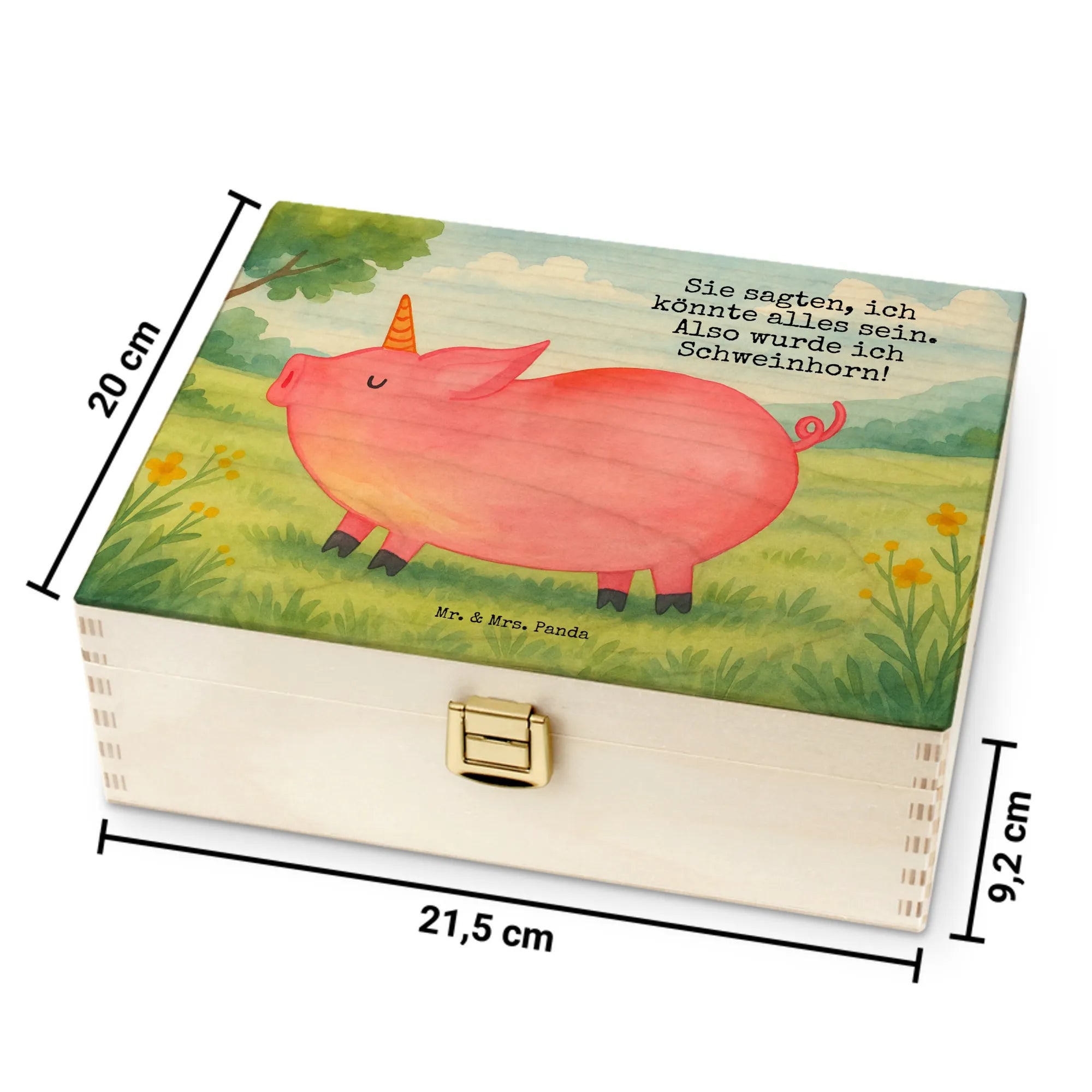 Unsere liebevoll gestaltete Teekiste von Mr. & Mrs. Panda ist die perfekte Aufbewahrungslösung für deine Teebeutel und sorgt gleichzeitig für ein fröhliches Ambiente in deiner Küche. Bedruckt mit zauberhaften Motiven von Mr. & Mrs. Panda, bringt diese Teebox Charme und Ordnung in deinen Alltag. Die Teekiste besteht aus hochwertigem Birke-Schichtholz (7 mm) an den Kanten gezinkt, ist in natürlicher Farbe gehalten und wurde mit umweltfreundlicher, nachhaltiger Tinte farbtief bedruckt. Innen ist die Box in sechs Fächer unterteilt, sodass du verschiedene Teesorten sauber sortieren und schnell griffbereit haben kannst. Der praktische Verschluss und die Einschlag-Scharnier sorgen für sicheren Halt (nicht abschließbar). Maße: 215 mm x 75 mm x 155 mm, Gewicht: 450 g — ein handliches Format, das sich wunderbar auf der Arbeitsplatte, im Regal oder als Geschenk eignet. Die dekorativen Layouts und Vorlagen machen die Teekiste zu einem Blickfang, egal ob als Teedose im Frühstücksbereich oder als hübscher Teekasten auf dem Esstisch. Bitte beachte: Die Teebox ist nicht personalisierbar. Ob als Teebeutel-Aufbewahrung, als hübsche Teedose oder als Geschenk für Teeliebhaber — diese Teekiste vereint Funktionalität und verspieltes Design von Mr. & Mrs. Panda in perfekter Weise.
