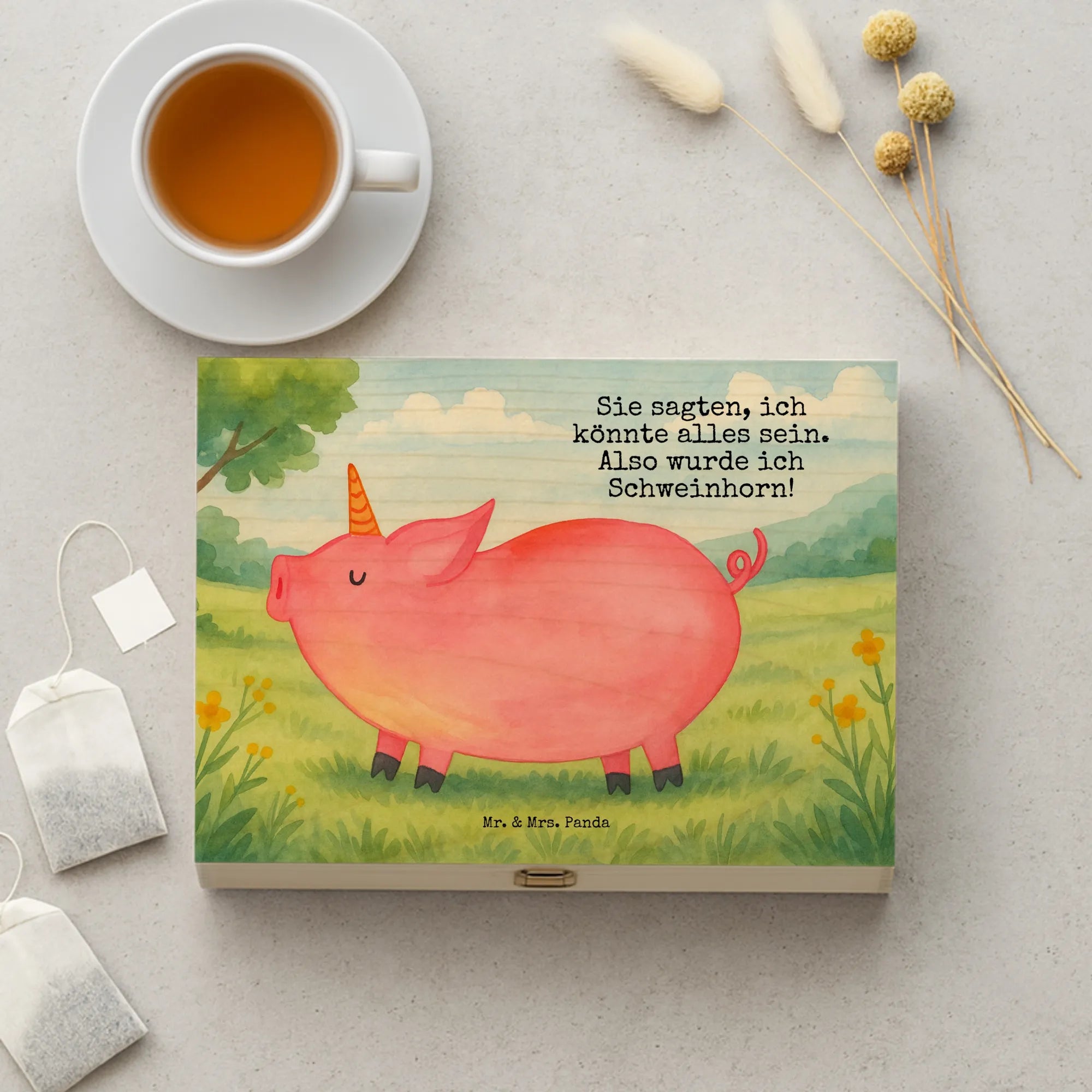 Teebehälter Einhorn Schwein Design - mit Spruch