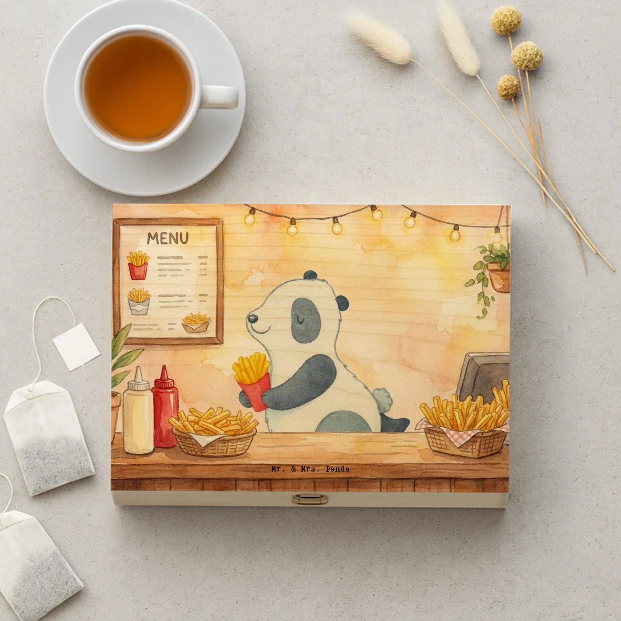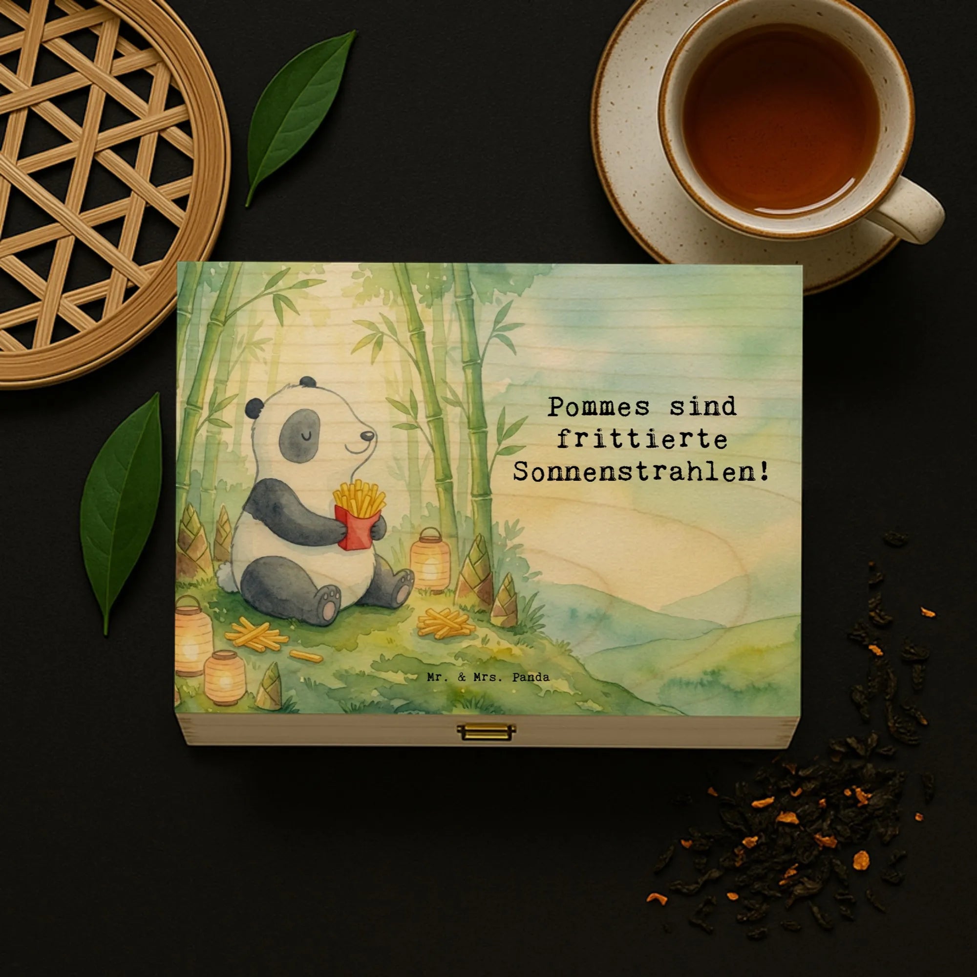 Teebeutel Aufbewahrung Panda beflügelt Pommes Design - mit Spruch