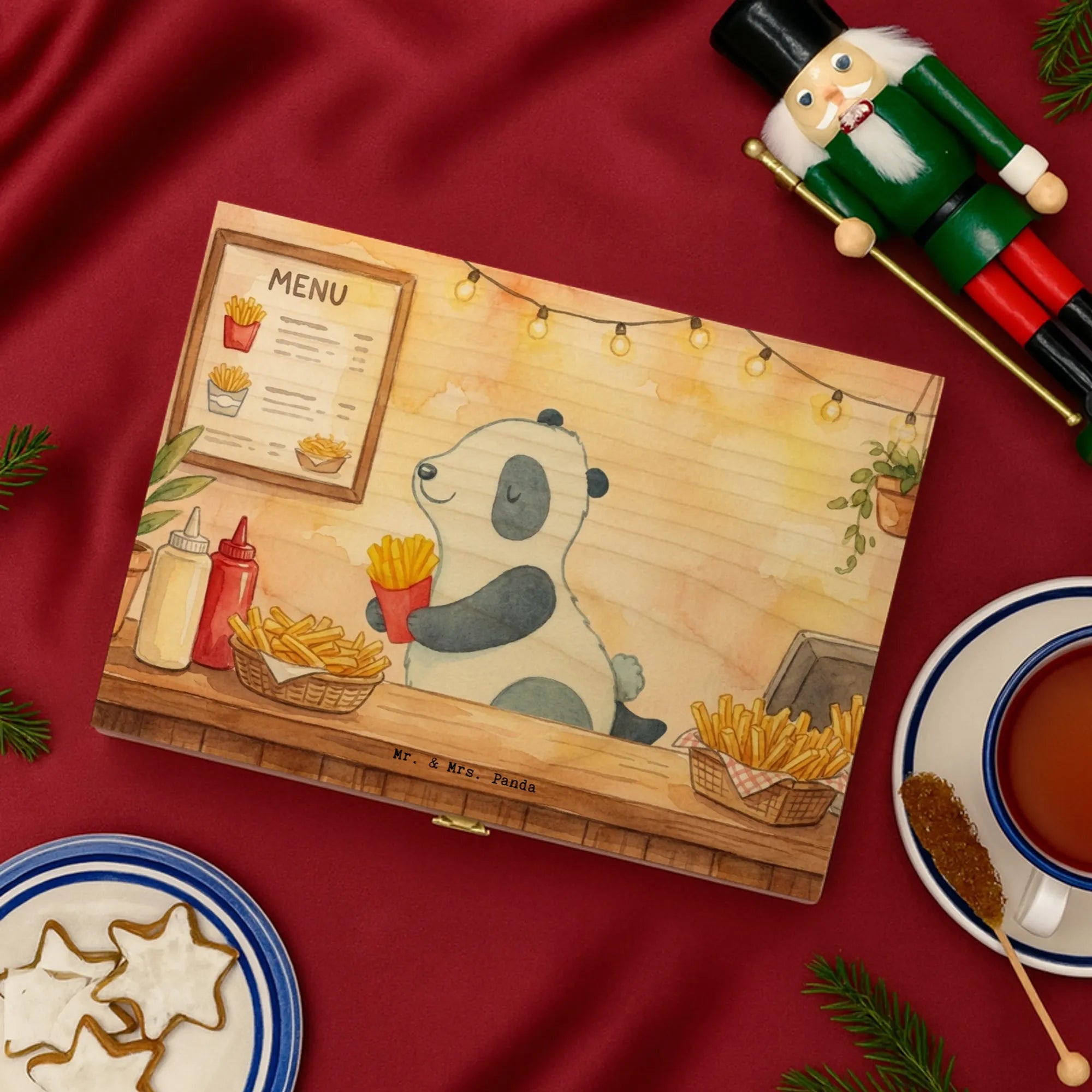 Für echte Tee-Liebhaber: unsere Teekiste von Mr. & Mrs. Panda ist die ideale box für tee und sorgt für Übersicht in deiner Sammlung. Als teeaufbewahrungsbox aus hochwertigem Birke-Schichtholz (Kanten 7 mm gezinkt) bietet sie eine natürliche Optik und stabile Verarbeitung. Der farbtiefe Druck mit umweltfreundlicher Tinte zeigt die typischen, liebevollen Motive von Mr. & Mrs. Panda und macht die holzteekiste zum dekorativen Highlight. Innen ist die holzteebox in sechs Fächer eingeteilt, damit du unterschiedliche Tees clever und aromaschonend sortieren kannst. Verschluss mit Einschlag-Scharnier (nicht abschließbar) sorgt für sicheren Halt. Maße: 215 mm x 75 mm x 155 mm, Gewicht: 450 g – ideal dimensioniert für Regal und Küchentheke. Die dekorativen Layouts und Vorlagen machen die Box zur perfekten vorratsbox tee oder Geschenkidee. Hinweis: Die Teekiste ist nicht personalisierbar. Ob als praktische tee organizer box oder als hübsche Aufbewahrung für deine Teebeutel – diese Teekiste verbindet Funktionalität mit dem verspielten Stil von Mr. & Mrs. Panda.