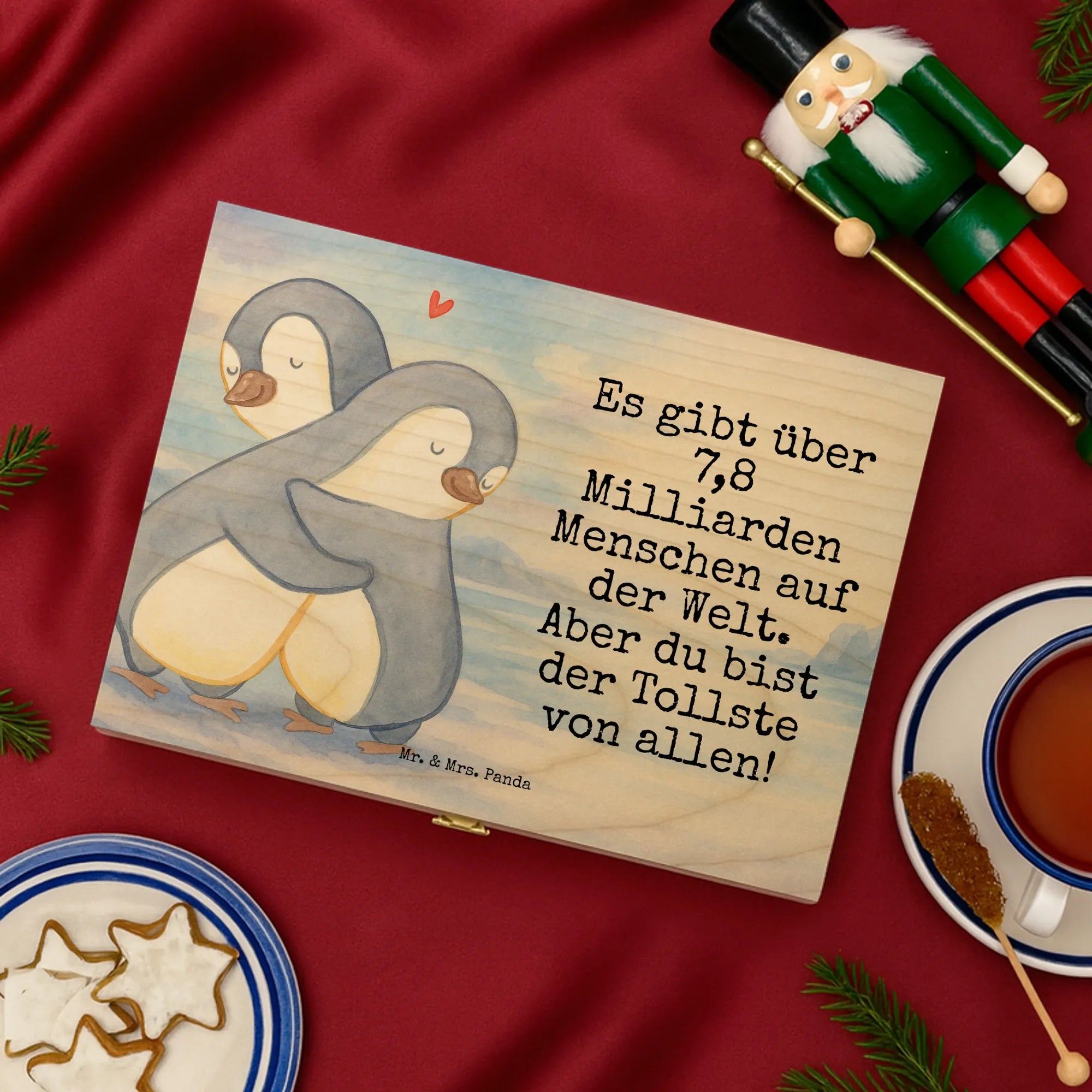 Schau dir an, wie diese Pinguine sich in einer warmen Umarmung zusammenkuscheln! Sie verkörpern die pure Liebe und Zuneigung, die so viele von uns empfinden. Das rote Herz, das über ihnen schwebt, verstärkt diese Botschaft. Egal, ob du ein Geschenk für deine Freundin oder für deinen Ehemann suchst, dieses Motiv ist perfekt für den Valentinstag, euren Jahrestag oder einfach nur so, um eurer Liebe Ausdruck zu verleihen. Der Spruch ‚Es gibt über 7,8 Milliarden Menschen auf der Welt. Aber du bist der Tollste von allen!’ fasst alles zusammen, was du verbalisieren möchtest, und macht klar, wie wichtig diese eine besondere Person in deinem Leben ist.