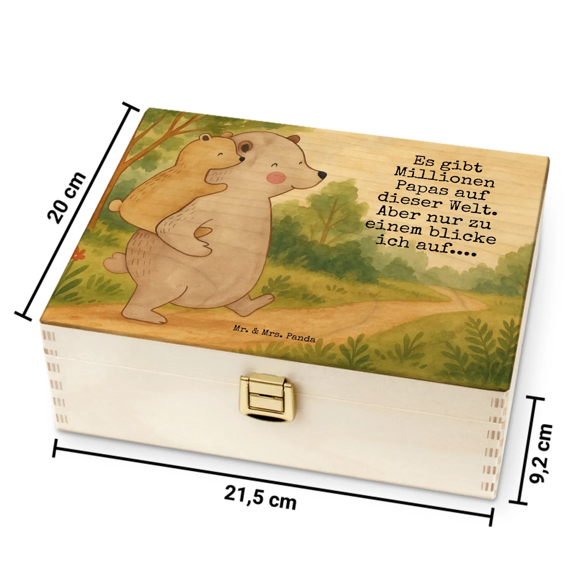 Suchst du eine hübsche und praktische Lösung für deine Teesammlung? Unsere Teekiste von Mr. & Mrs. Panda ist die Antwort. Bedruckt mit den wunderschönen Motiven von Mr. & Mrs. Panda bringt sie Freude in jede Teestunde. Die Box ist nicht personalisierbar, überzeugt aber durch fasertiefen wunderschönen Druck und umweltfreundliche & nachhaltige Tinte. Die dekorativen Layouts und Vorlagen machen das Öffnen zur Freude. Hergestellt aus 7 mm Birke-Schichtholz an den Kanten gezinkt, Farbe: Natur, wirkt die Box edel und gleichzeitig gemütlich. Der Verschluss und die Einschlag-Scharnieren (nicht abschließbar) halten den Inhalt sicher. Maße: 215 mm x 75 mm x 155 mm, Gewicht: 450 g – kompakt und stabil. Innen findest du sechs Fächer, perfekt für tee beutel halter, tee organizer oder teebeutel aufbewahrungsbox. Sortiere deine Lieblingstees nach Geschmack oder Anlass und hab immer alles griffbereit. Ob als Geschenk oder fürs eigene Regal – diese Aufbewahrungsbox für Teebeutel ist praktisch, dekorativ und nachhaltig produziert. Entdecke Ordnung mit Stil.