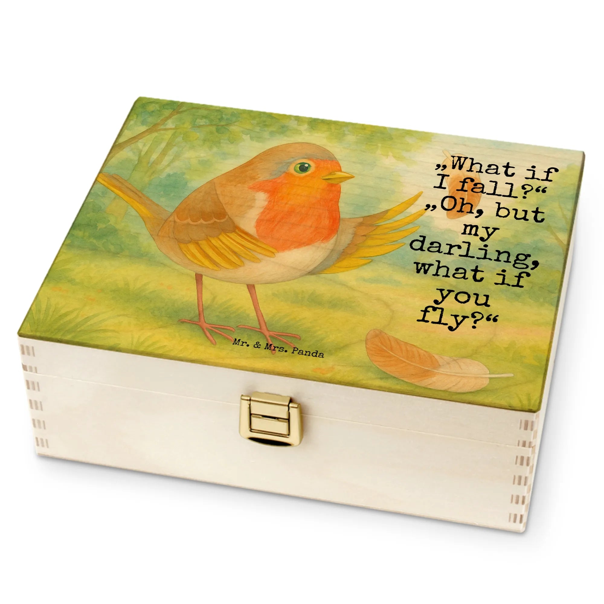 Mr. & Mrs. Panda Rotkehlchen mit Spruch „What if I fall?“ - Motivation und Mut Inspirierend