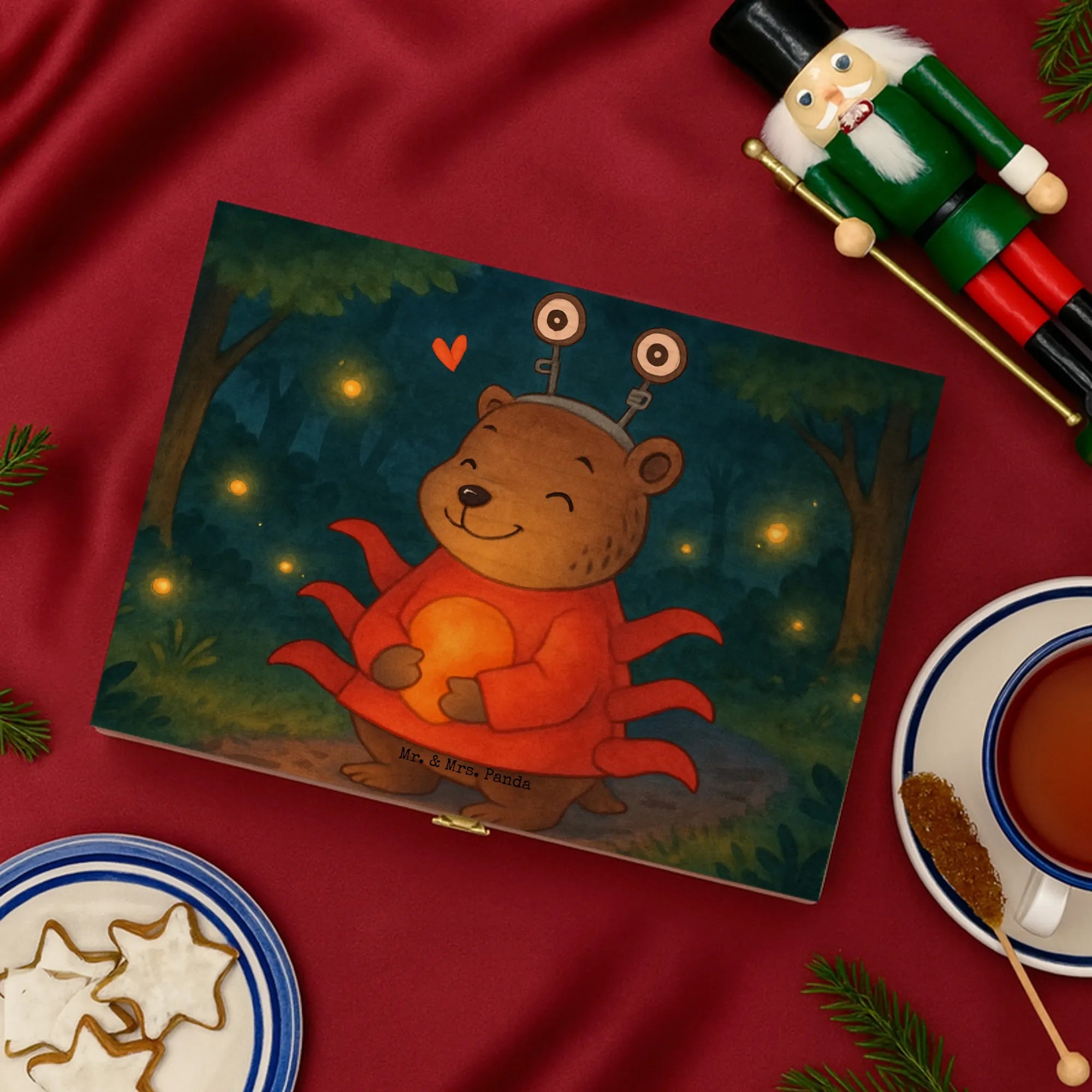 Unsere Holz-Teekiste von Mr. & Mrs. Panda kombiniert Funktionalität mit zauberhaftem Design. Bedruckt mit den wunderschönen Motiven von Mr. & Mrs. Panda verleiht sie deinem Zuhause eine persönliche Note, auch wenn sie nicht personalisierbar ist. Der Druck ist fasertief und wunderschön, gefertigt mit umweltfreundlicher & nachhaltiger Tinte. Dekorative Layouts und Vorlagen machen die Box zu einem tollen Blickfang. Material: 7 mm Birke-Schichtholz an den Kanten gezinkt, Farbe: Natur – robust und natürlich. Die Teebox hat einen sicheren Verschluss und Einschlag-Scharnieren (nicht abschließbar). Maße: 215 mm x 75 mm x 155 mm, Gewicht: 450 g – handlich und stabil zugleich. Innen ist die Box in sechs Fächer unterteilt, ideal als aufbewahrungsbox für teebeutel, tee kiste oder holzteekiste zur übersichtlichen Lagerung verschiedener Sorten. Ob du sie als box für tee, tee organizer box oder vorratsbox tee nutzt – diese Kiste bringt Stil und Ordnung. Ein schönes Geschenk für Freunde oder eine hübsche Ergänzung für dein eigenes Regal.