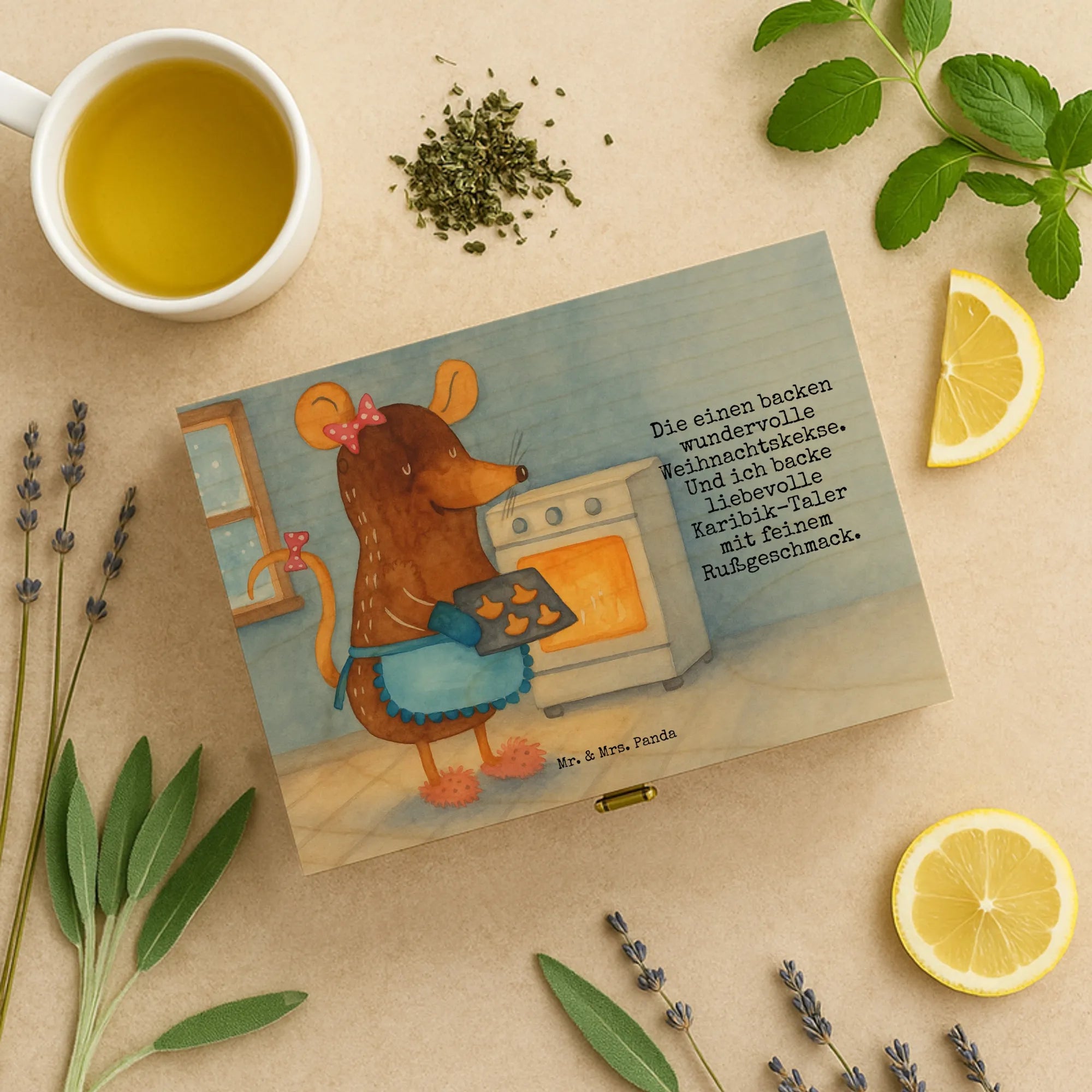 Hol dir die natürliche Holzteekiste von Mr. & Mrs. Panda – schöne Ordnung für deine Tees und ein liebevolles Geschenk.