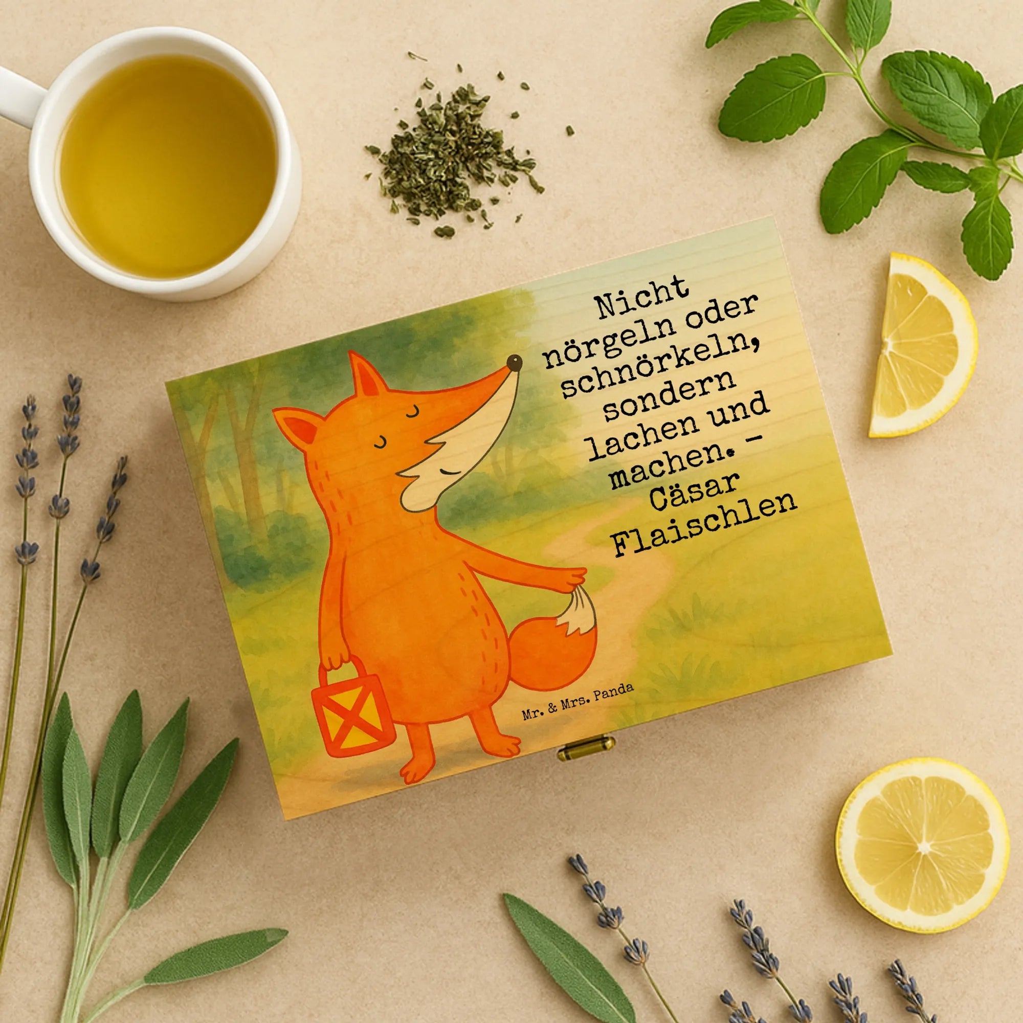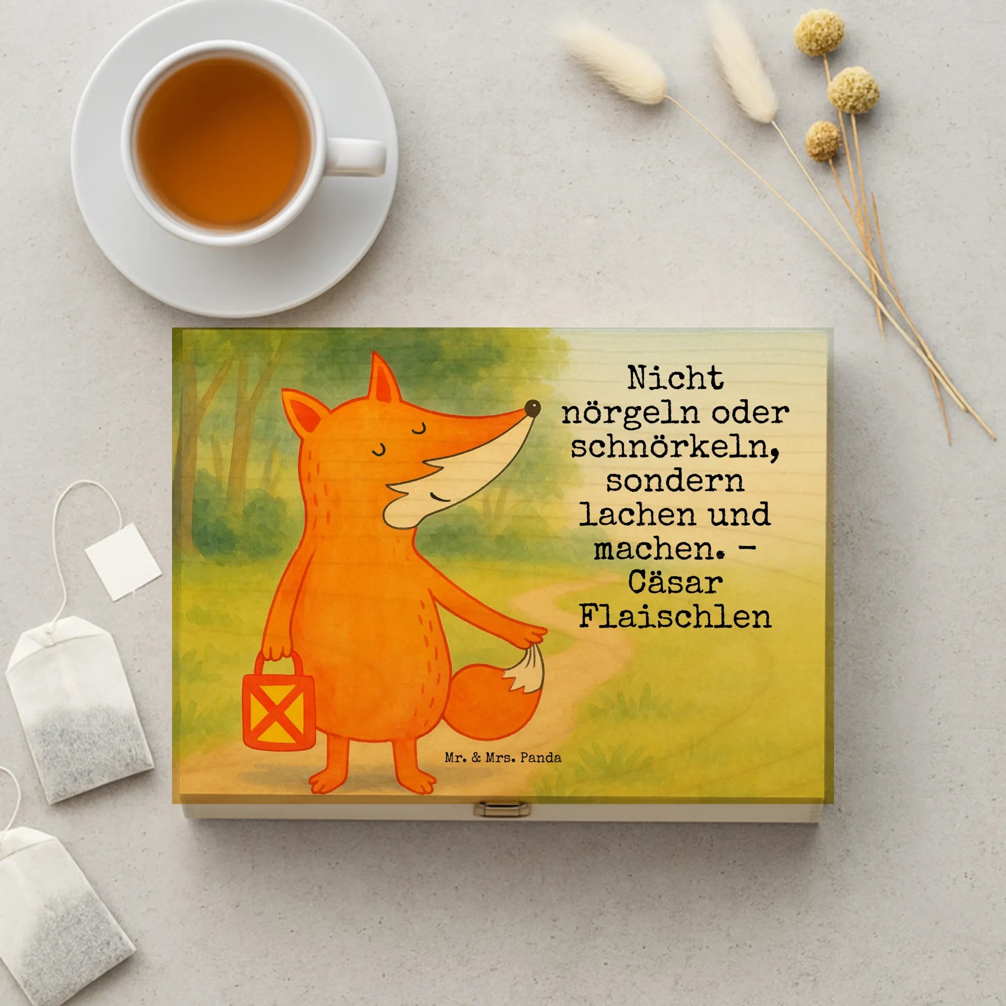 Hol dir jetzt die liebevoll bedruckte Teekiste von Mr. & Mrs. Panda und sortiere deine Teebeutel stilvoll und nachhaltig.