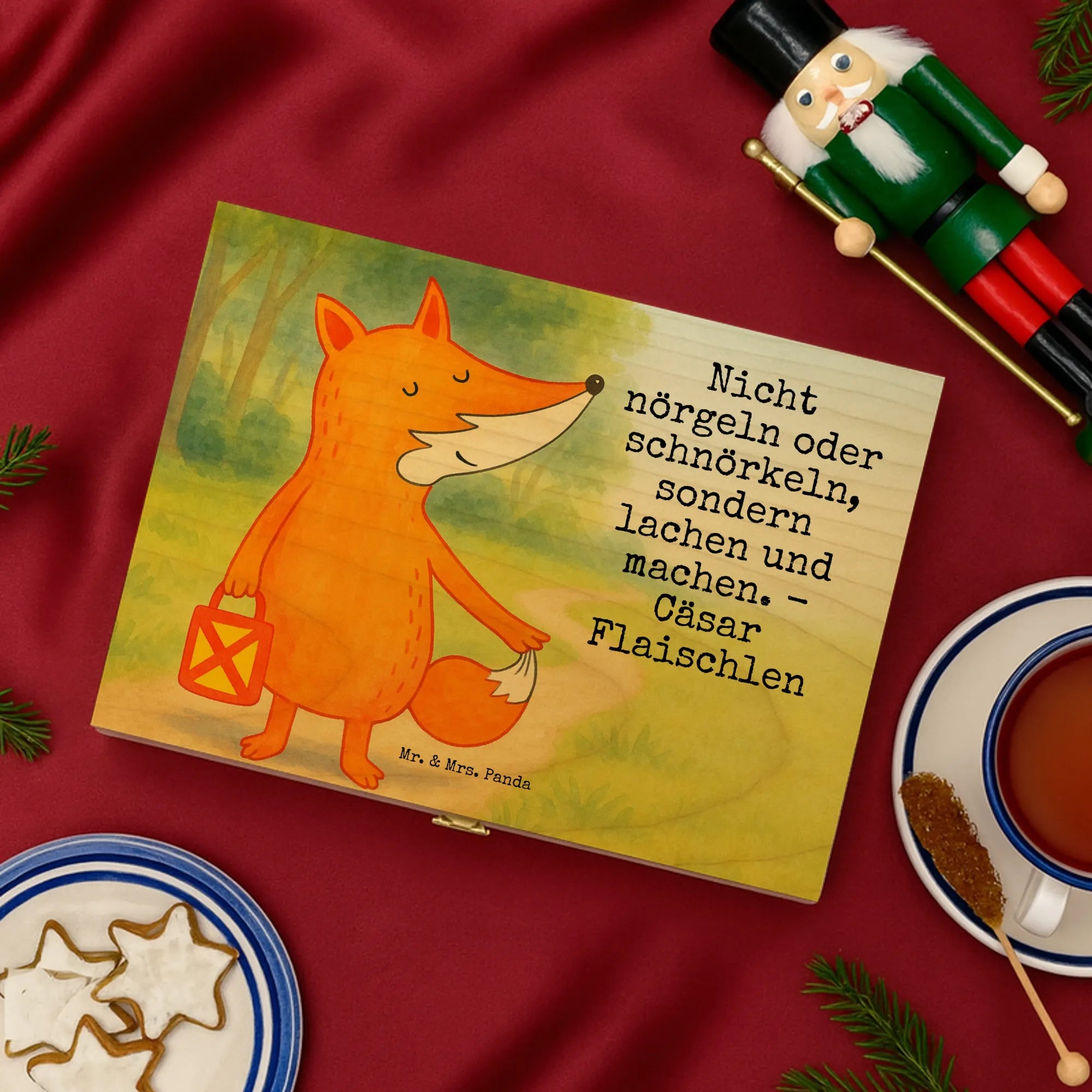 Holz Teebox Fuchs Laterne Design - mit Spruch