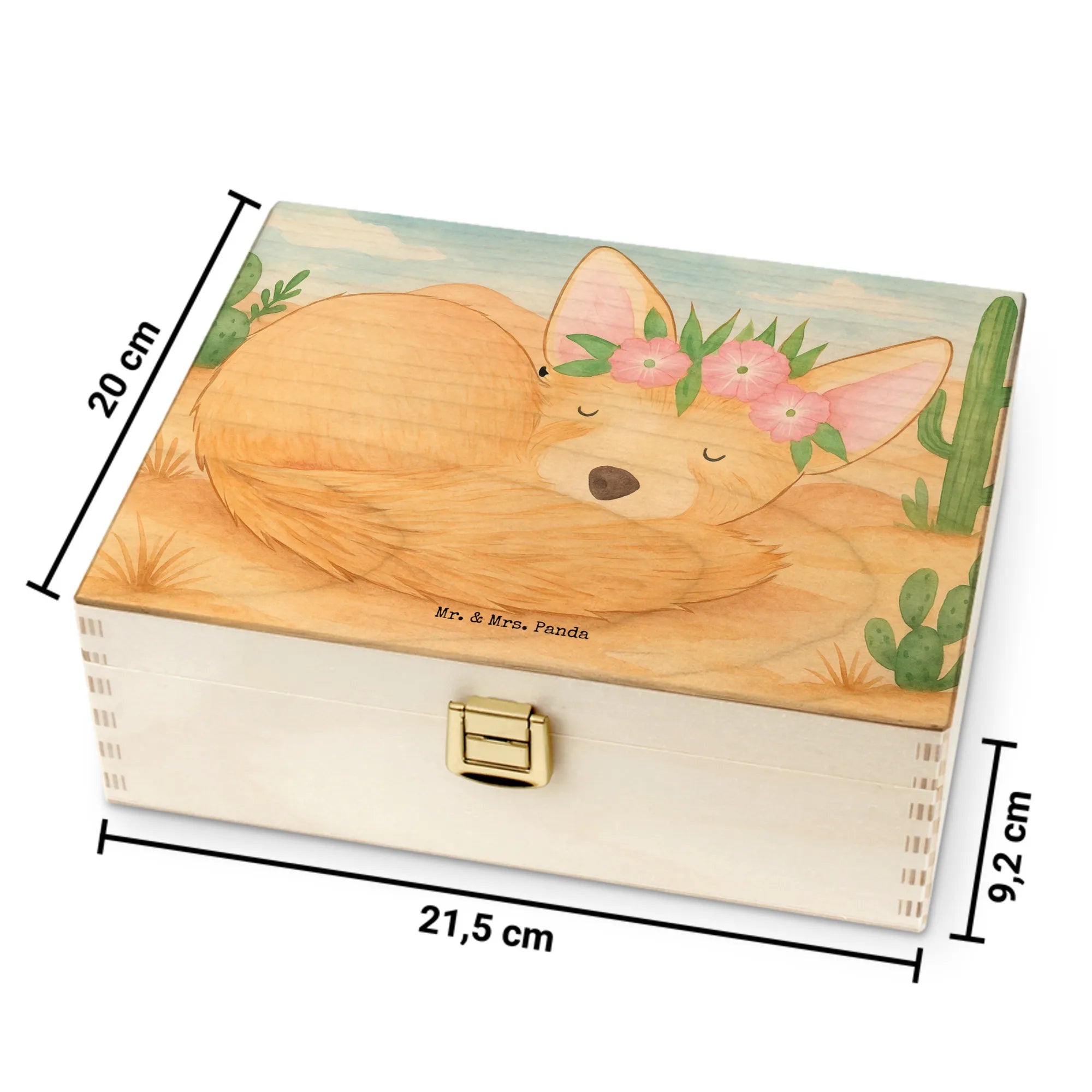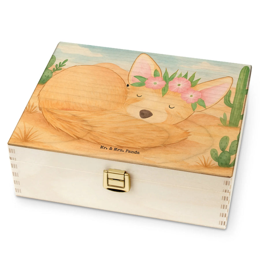 Mr. & Mrs. Panda Motiv: Schlafender Wüstenfuchs mit Blumenkranz | Wüsten-Deko & liebevolle Illustration