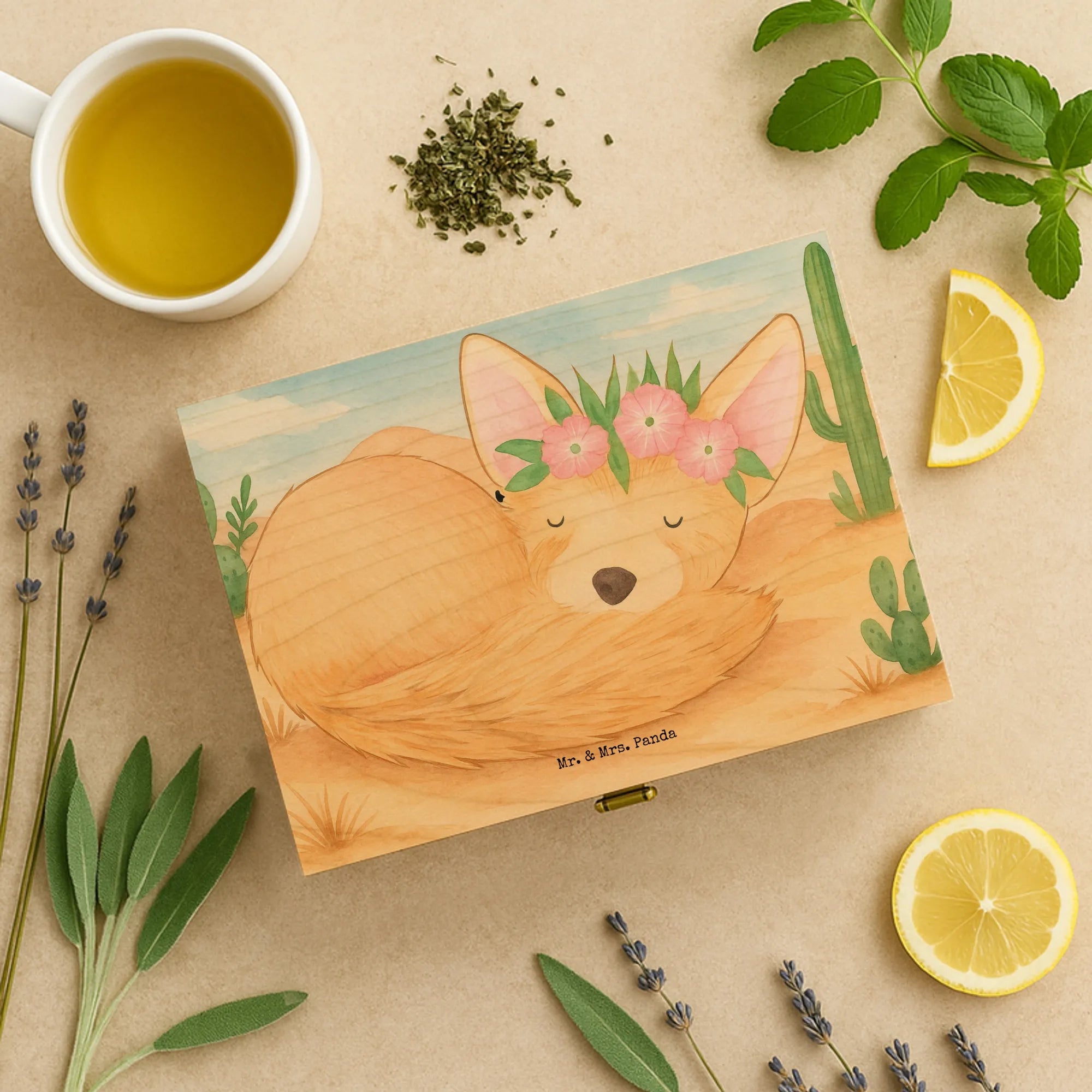 Tee Box Wüstenfuchs Blumen Design