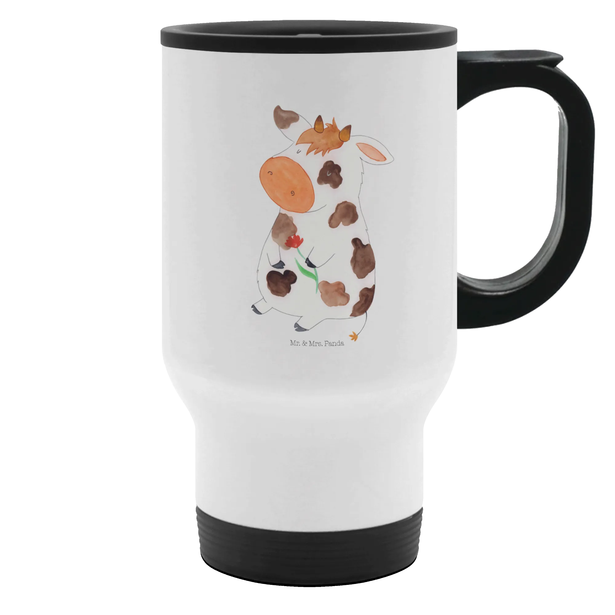 Der Thermobecher mit dem süßen Kuh-Motiv von Mr. & Mrs. Panda ist das perfekte Geschenk für alle Tierliebhaber und Bauernhof-Fans! Diese praktische und einzigartige Thermotasse ist nicht nur ein echter Hingucker, sondern auch äußerst funktional. Hergestellt aus hochwertigem Edelstahl und Kunststoff, eignet sich dieser Kaffeebecher für Heißgetränke jeder Art. Ob du deinen Kaffee auf dem Weg zur Arbeit oder deinen Lieblingstee beim Entspannen im Park genießen möchtest, dieser Edelstahlbecher hält deine Getränke stets warm und lecker.