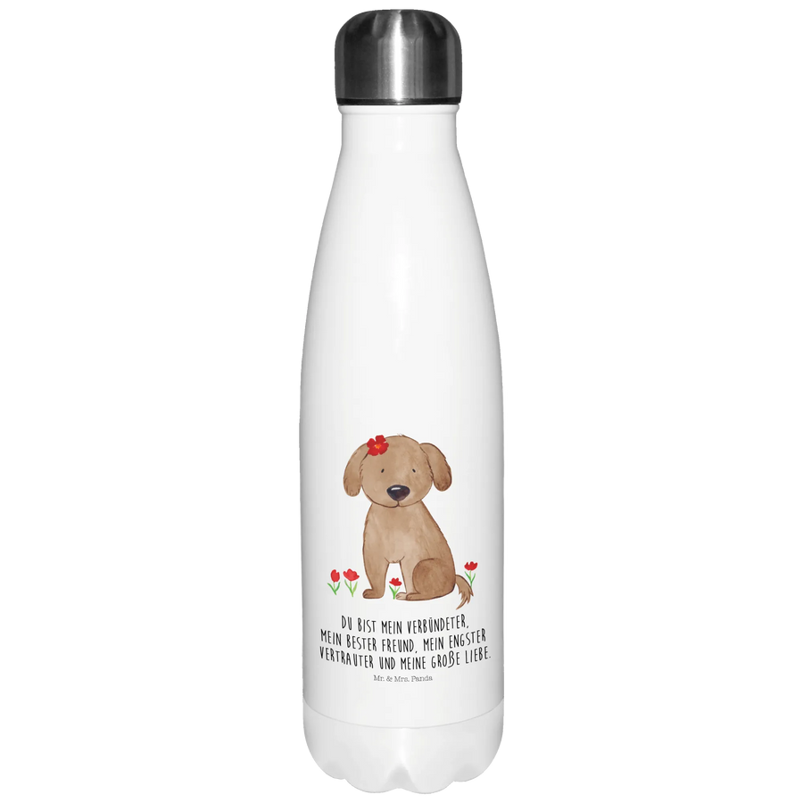 Die perfekte Thermosflasche für alle Hundeliebhaber: Die Thermosflasche Hund Hundedame von Mr. & Mrs. Panda ist nicht nur ein echter Hingucker, sondern auch extrem funktionell. Mit einer doppelwandigen Edelstahlkonstruktion sorgt sie dafür, dass Deine heißen Getränke lange heiß und die kalten Getränke angenehm kühl bleiben. Ob beim Spaziergang mit deinem treuen Vierbeiner, im Büro oder bei einem Ausflug in die Natur – diese Trinkflasche begleitet Dich zuverlässig!