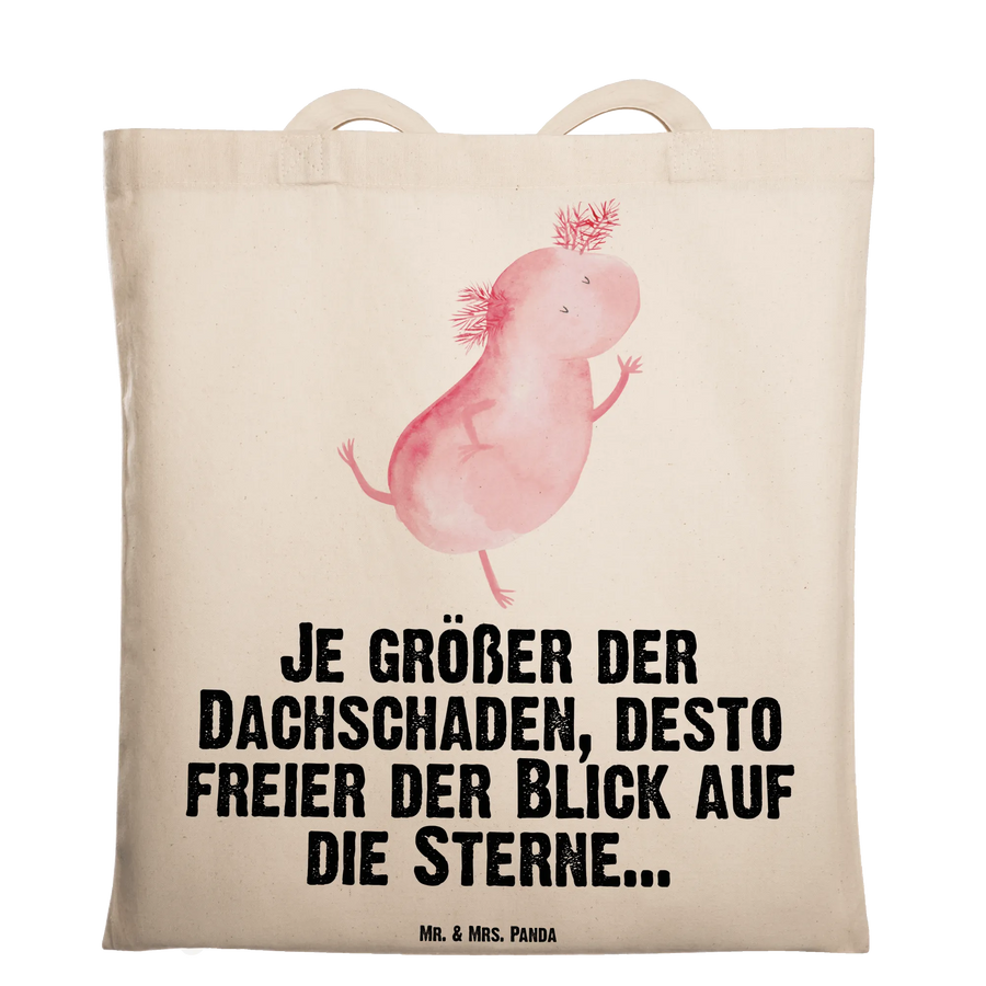 Mit der Aussage "Je größer der Dachschaden, desto freier der Blick auf die Sterne..." bringt die Tasche Humor und Lebensfreude in deinen Alltag. Diese Axolotl Motiv Tasche ist zudem ein tolles Geschenk für alle, die das Besondere suchen, perfekt für Anlässe wie Weihnachten, Ostern oder einfach nur, um jemandem eine Freude zu machen.