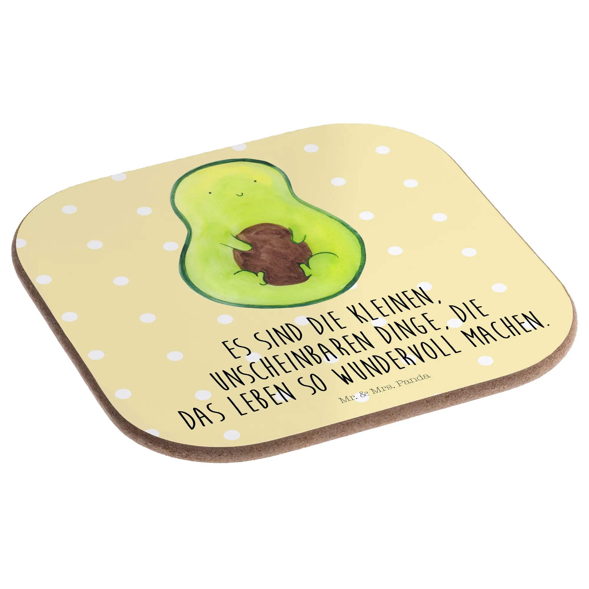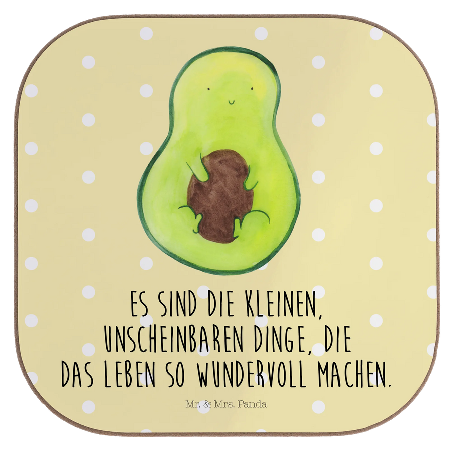 Tassenuntersetzer Avocado Kern - mit Spruch - Gelb Pastell