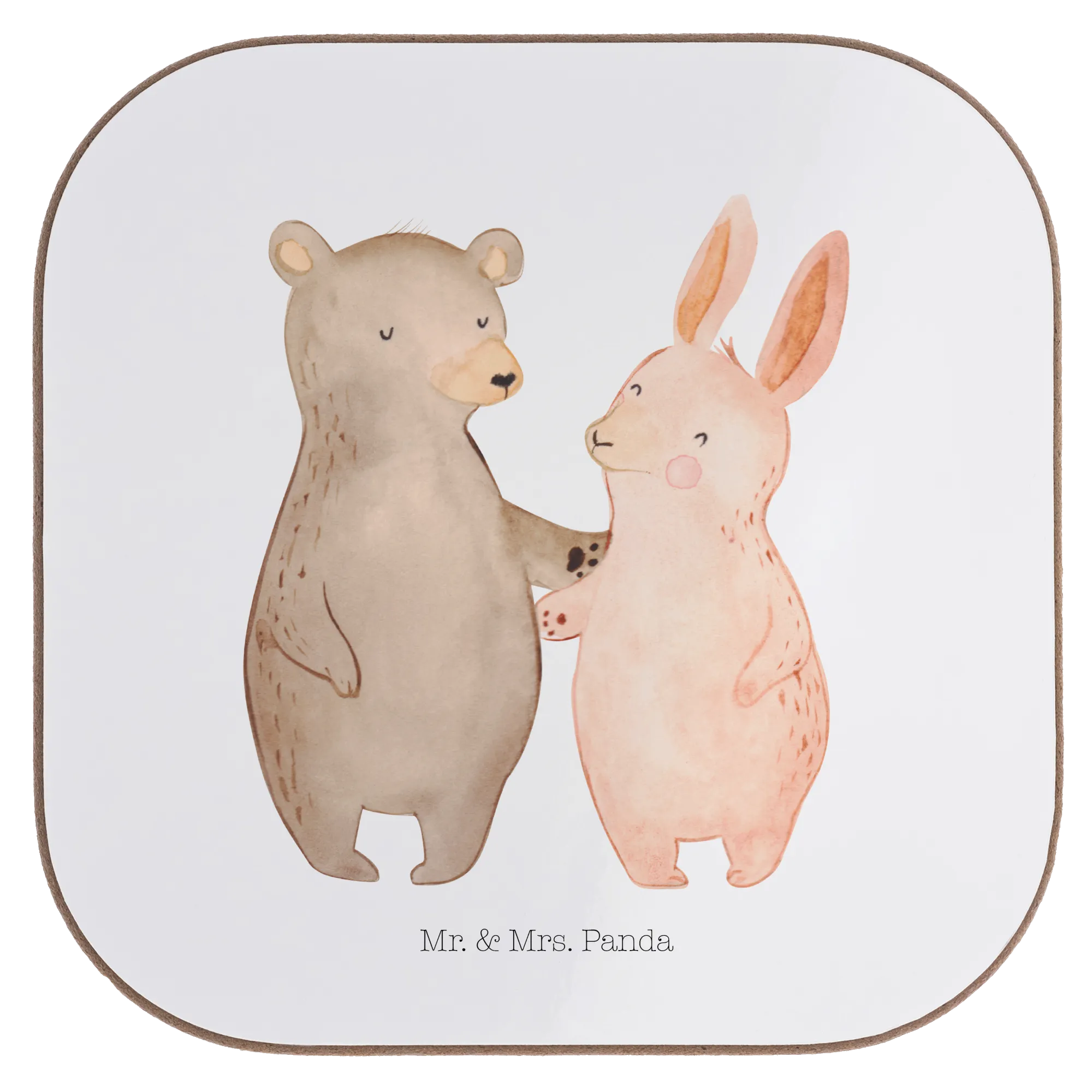 Untersetzer Glas Bär und Hase Umarmen - mit Spruch