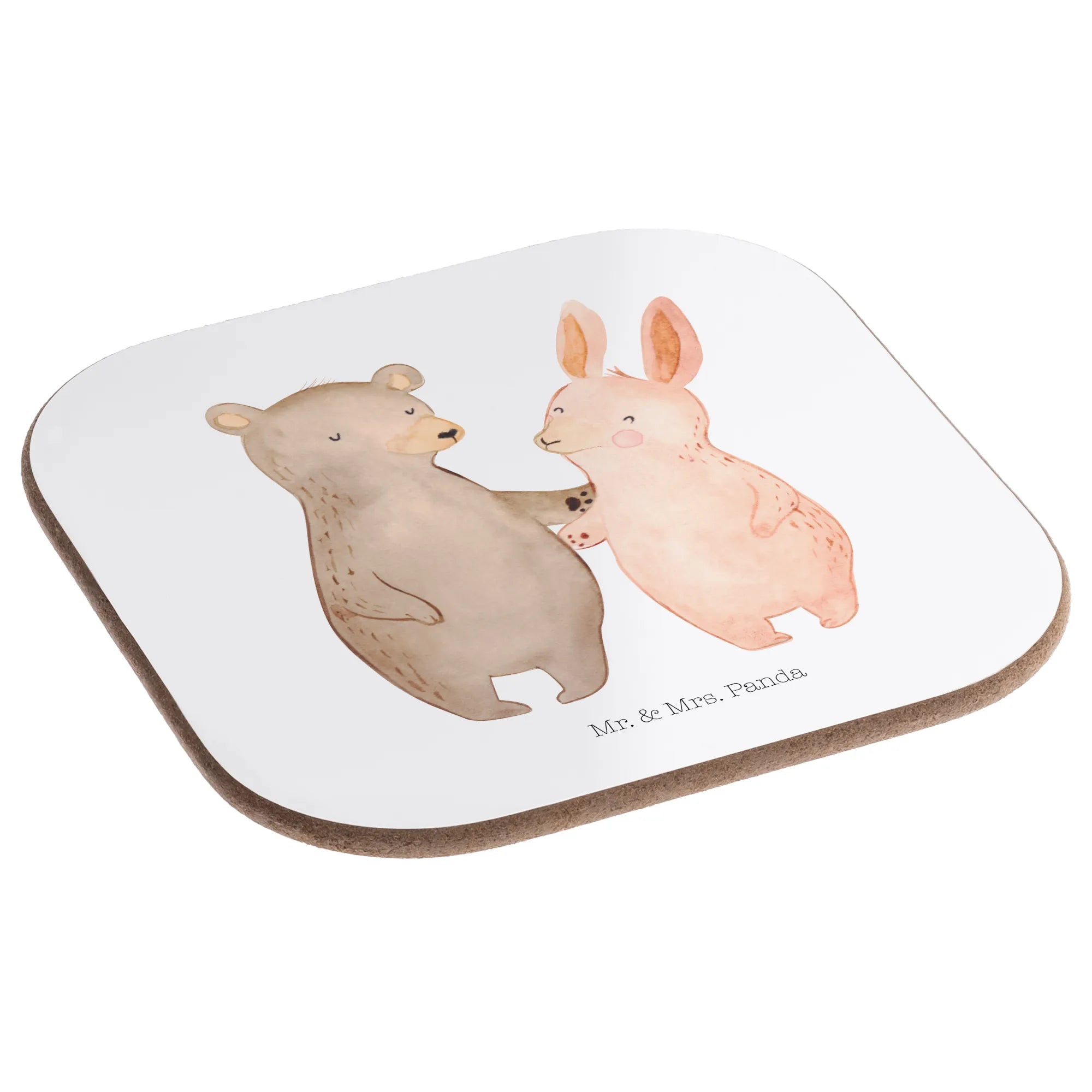 Ein kleiner Liebesgruß für deinen Tisch: Der quadratische Untersetzer von Mr. & Mrs. Panda mit dem Motiv „Bär Hase Umarmen“ aus der Kollektion Liebe ist mehr als nur ein Glasuntersetzer. Die herzerwärmende Szene zeigt einen Bären und einen Hasen in zärtlicher Umarmung, sanft aquarelliert in Braun- und Rosatönen. Perfekt als Getränkeuntersetzer oder als dekorativer Bierdeckel für gemütliche Abende.