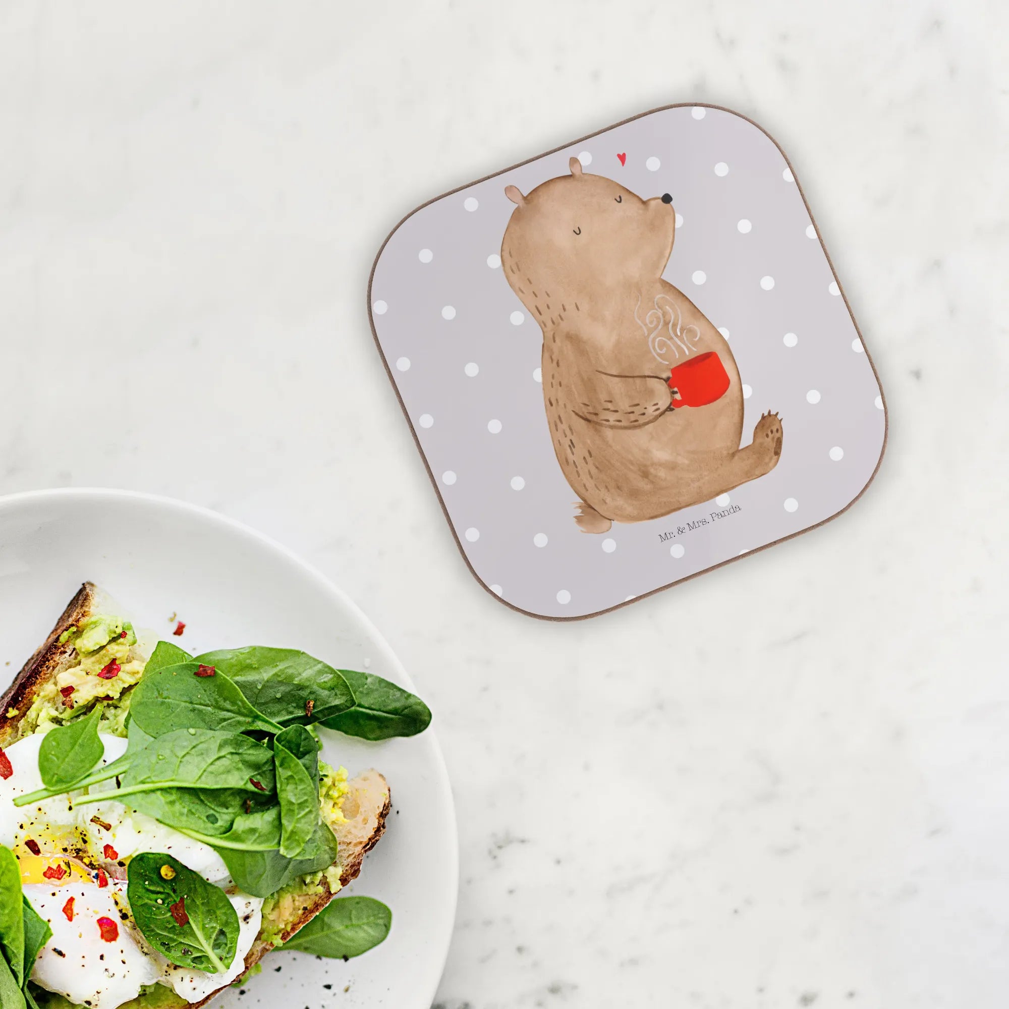 Untersetzer für Gläser Bär Kaffee - mit Spruch - Grau Pastell