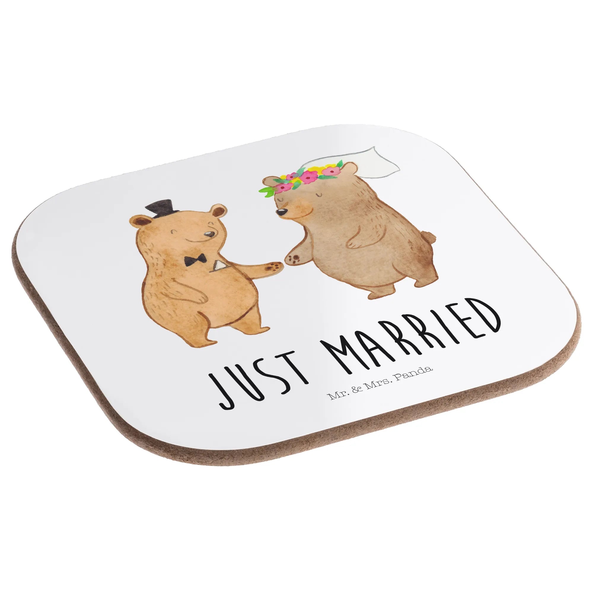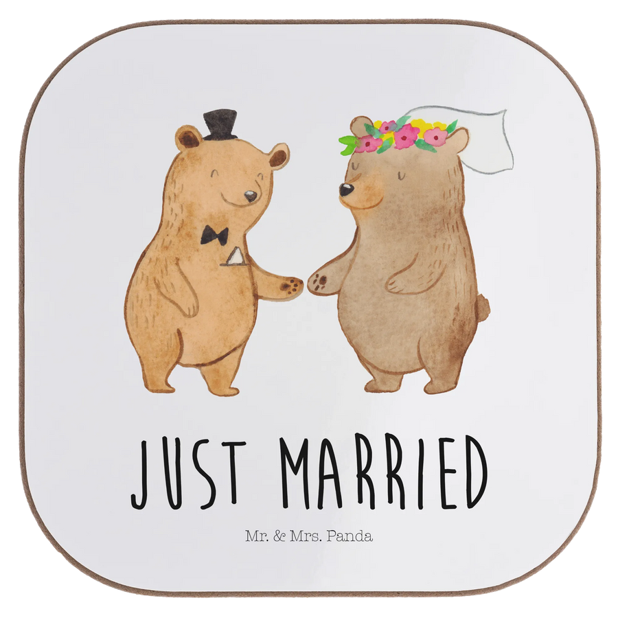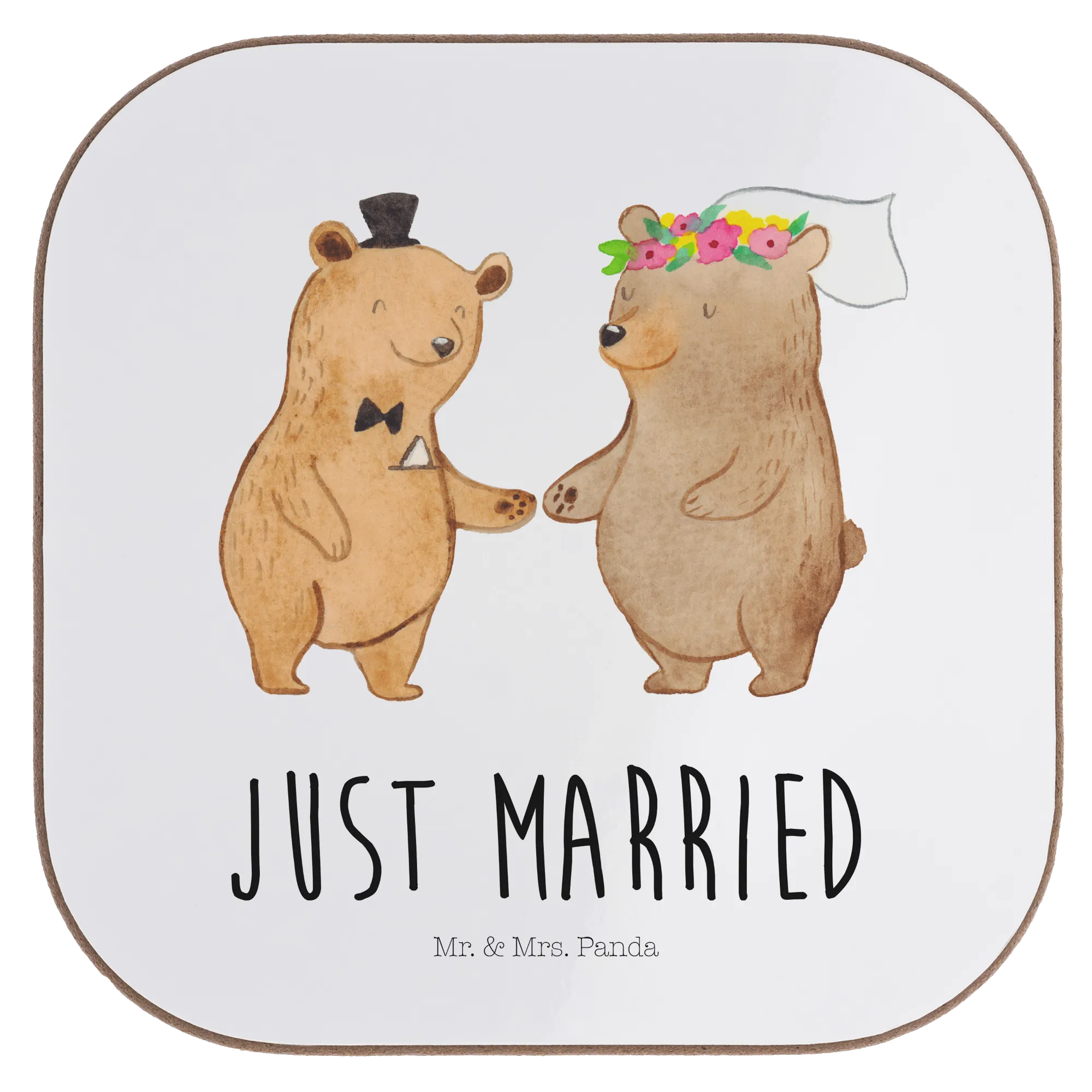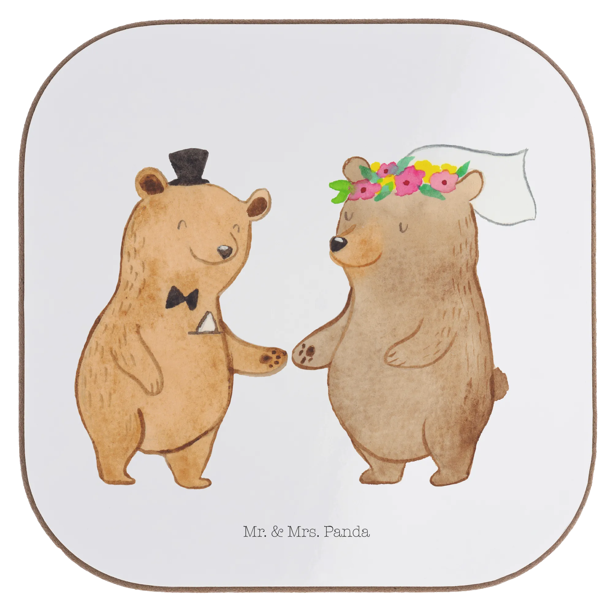 Du suchst nach dem perfekten Geschenk zur Hochzeit? Dann sind die liebevollen Untersetzer mit dem bezaubernden Bären Heirat Motiv von Mr. & Mrs. Panda genau das Richtige!