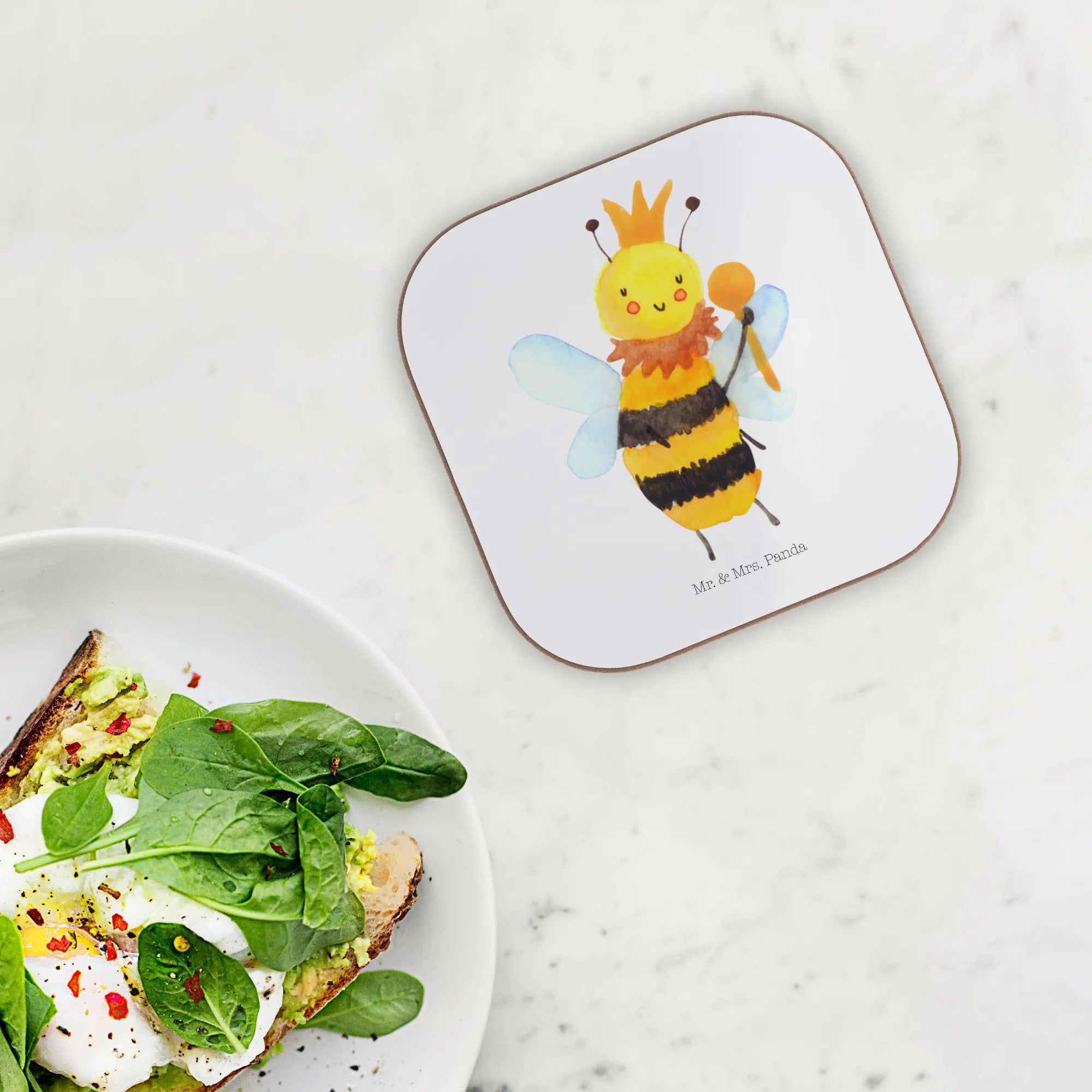 Wenn du nach dem perfekten Geschenk suchst, das sowohl stilvoll als auch praktisch ist, dann sind die Untersetzer "Biene König" von Mr. & Mrs. Panda genau das Richtige! Mit einem bezaubernden Motiv, das eine süße Biene mit Zepter und Krone zeigt, bringen diese quadratischen Untersetzer einen Hauch von Freude und Kreativität in dein Zuhause. Die Untersetzer sind nicht nur dekorativ, sie schützen außerdem deine Tischoberflächen vor unschönen Abdrücken, Kratzern und extremen Temperaturen. Genieße deine Getränke, ohne dir Sorgen machen zu müssen!