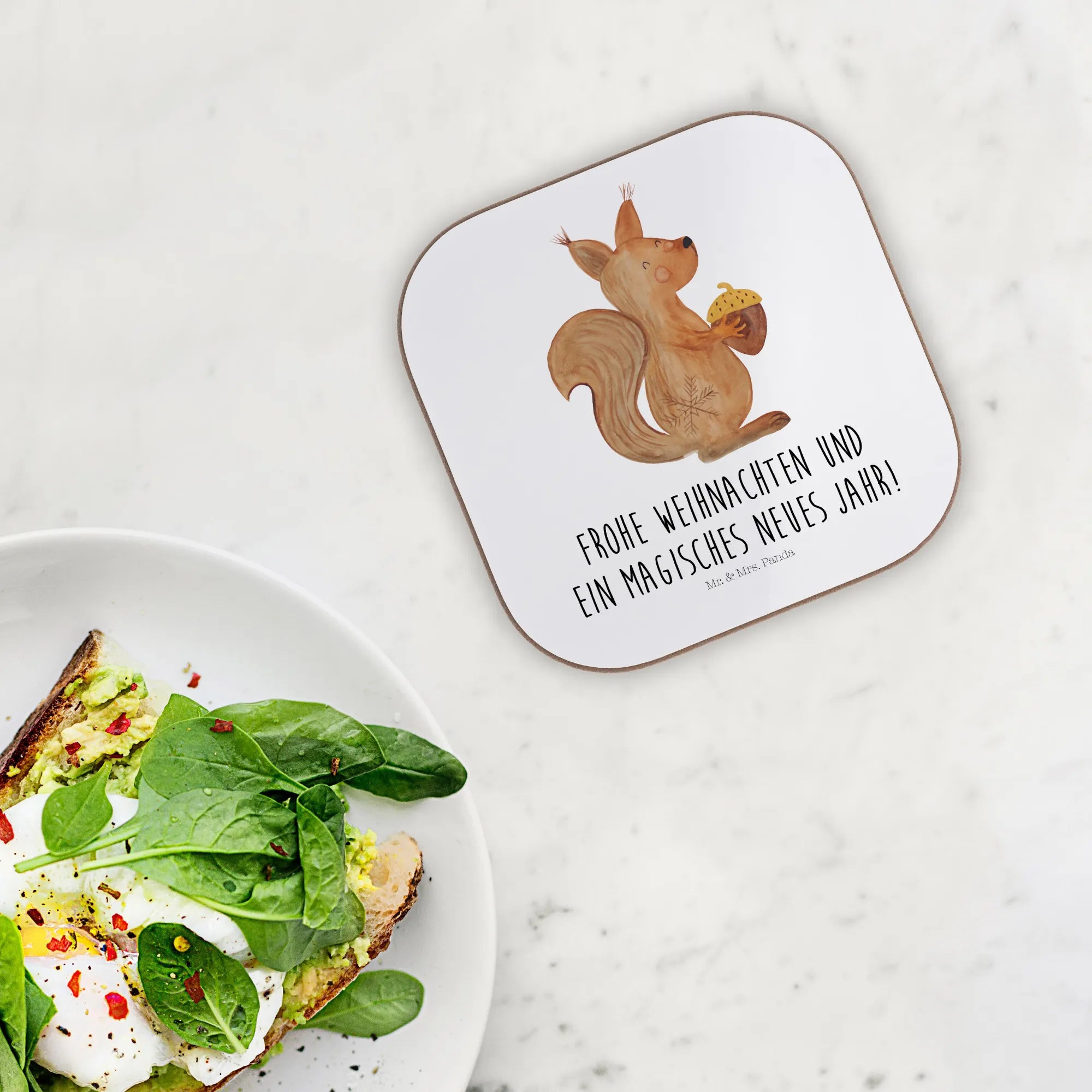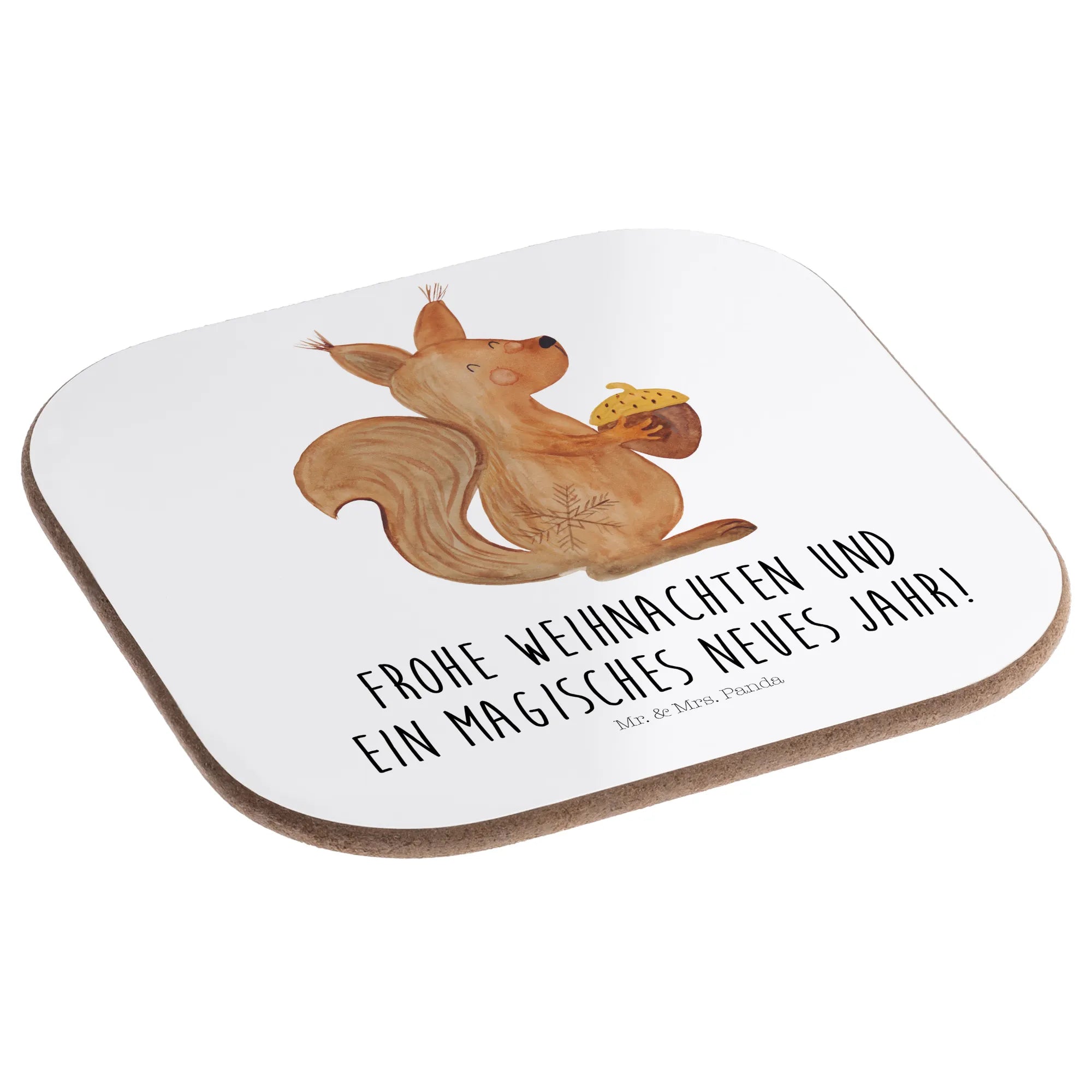 Bist du auf der Suche nach dem perfekten Geschenk, um die Winter- und Weihnachtszeit zu zelebrieren? Dann sind die Untersetzer mit dem liebevollen Eichhörnchenmotiv von Mr. & Mrs. Panda genau das Richtige für dich! Mit dem Slogan "Frohe Weihnachten und ein magisches neues Jahr!" sind diese wunderschönen quadratischen Untersetzer nicht nur ein praktisches Accessoire für deinen Tisch, sondern auch ein echter Hingucker!