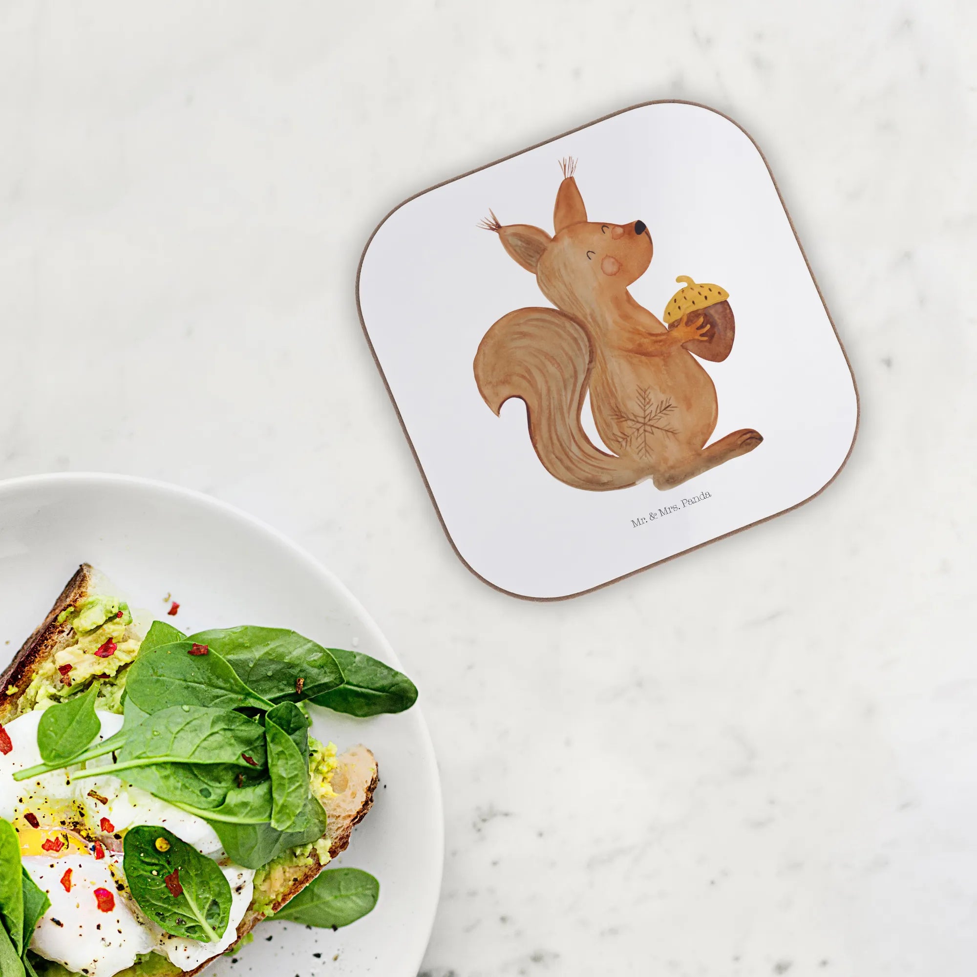 Die warmen, erdigen Töne des Eichhörnchens passen wunderbar zu jeder Weihnachtsdeko und verleihen deinem Zuhause sofort eine Extraportion Gemütlichkeit. Ob auf dem Couchtisch beim Weihnachtsfilm-Marathon oder auf der festlich gedeckten Tafel an Heiligabend – dieser Untersetzer zieht garantiert alle Blicke auf sich. Suchst du noch nach einem passenden Geschenk für den Nikolausstiefel oder einem Wichtelgeschenk für die Kollegen? Ein Untersetzer von Mr. & Mrs. Panda ist immer eine gute Idee. 🎁