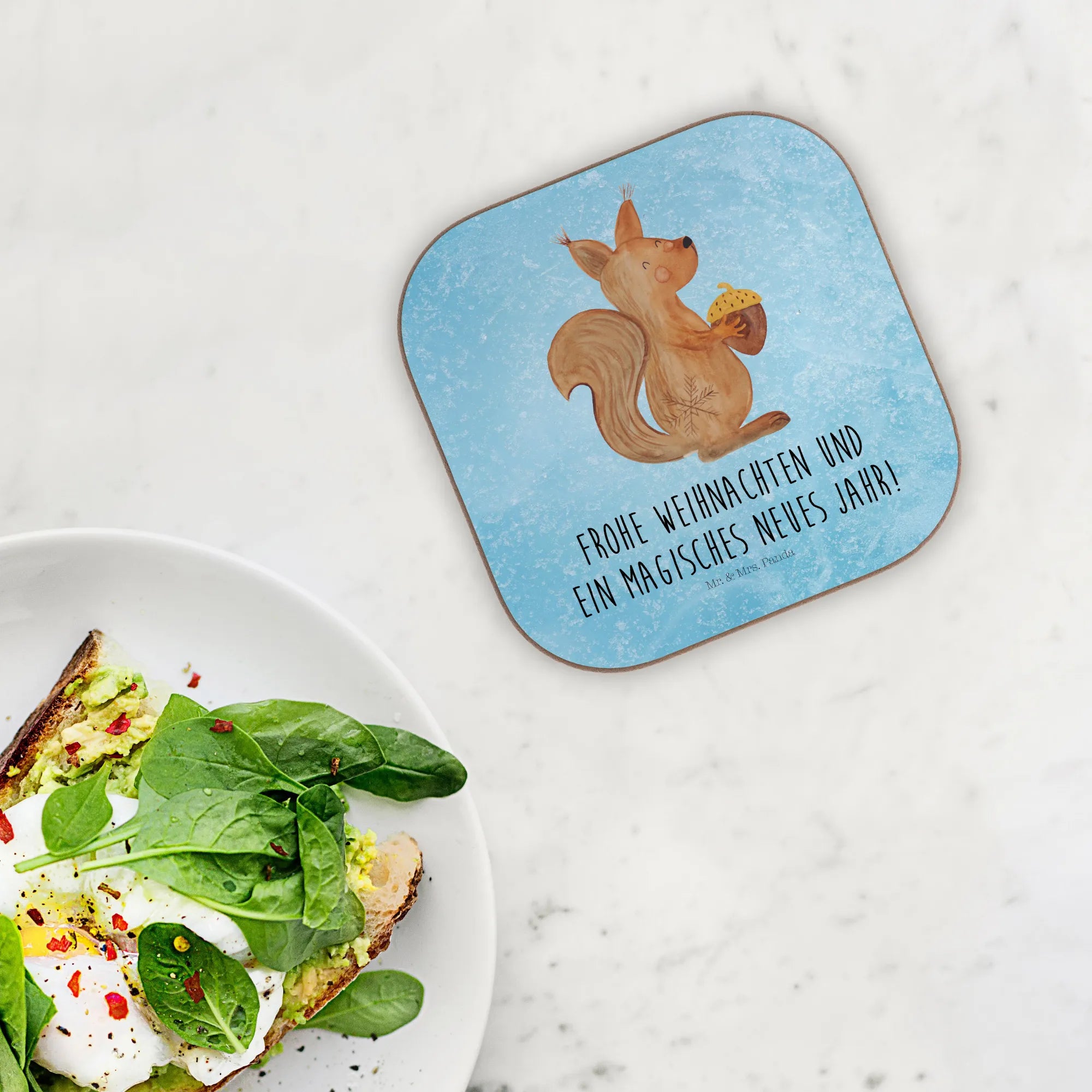 Entdecke den bezaubernden Untersetzer "Eichhörnchen Weihnachtszeit" aus unserer Winter Kollektion von Mr. & Mrs. Panda! Dieser wunderschöne quadratische Untersetzer ist nicht nur ein praktisches Accessoire für deinen Tisch, sondern auch ein liebevolles Stück, das die magischen Momente der Weihnachtszeit einfängt.