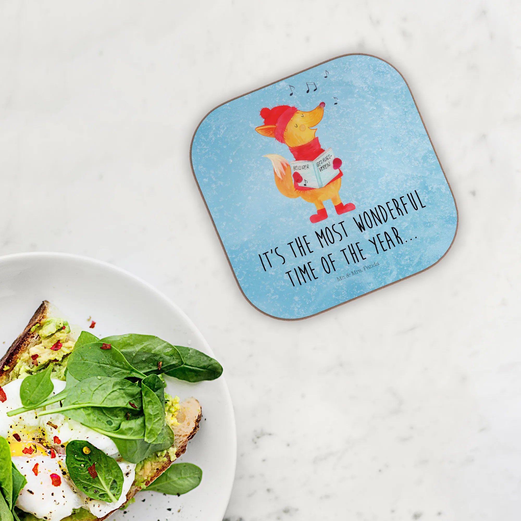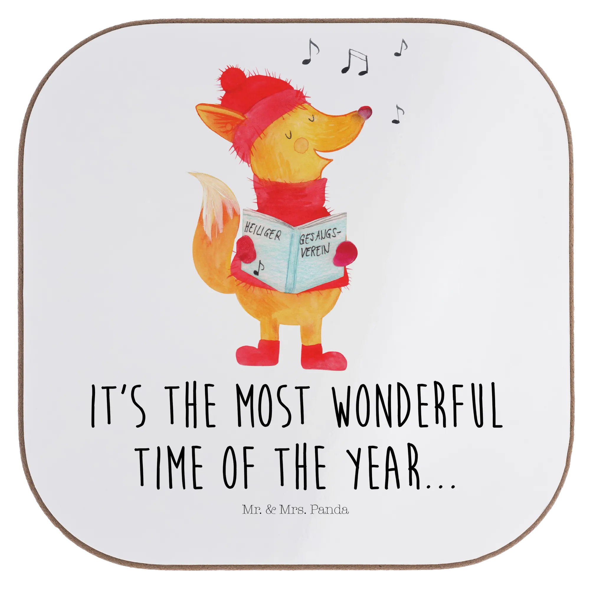 Der wunderschöne quadratische Untersetzer Fuchs Sänger von Mr. & Mrs. Panda ist das perfekte Geschenk für alle, die die Winterzeit lieben! Mit dem zauberhaften Motiv eines fröhlich singenden Fuchses, der in ein Liederbuch schaut, bringt er nicht nur Wärme in dein Zuhause, sondern sorgt auch für eine festliche Stimmung. Der Fuchs ist liebevoll mit seiner roten Mütze, einem passenden Schal und roten Stiefeln dargestellt und tanzt förmlich zu den musikalischen Noten, die ihn umgeben.