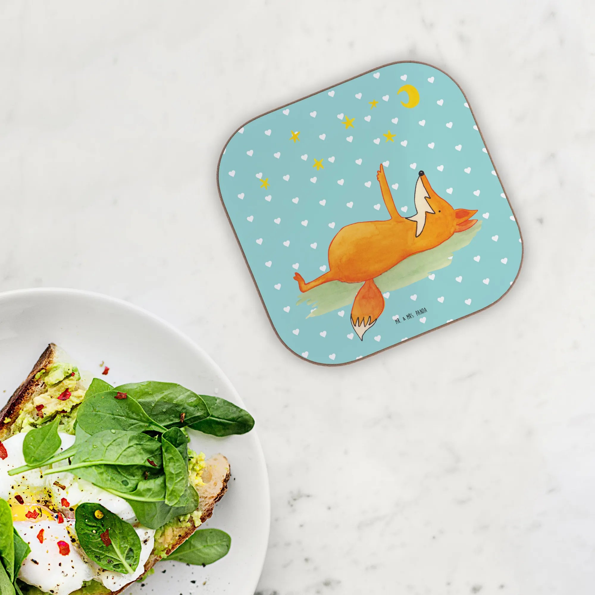 Mit einem niedlichen Fuchs, der auf dem Rücken liegt und in den funkelnden Sternenhimmel schaut, ist dieser Untersetzer nicht nur praktisch, sondern auch ein echtes Kunstwerk für jeden Tisch. Die Fuchs-Kollektion zeigt, wie gesellig und charmant diese cleveren Waldtiere sind. Egal ob du ihn für dich selbst behältst oder als Geschenk für Freunde und Familie verschenkst, dieser Untersetzer bringt Freude und ein Lächeln in jedes Zuhause.