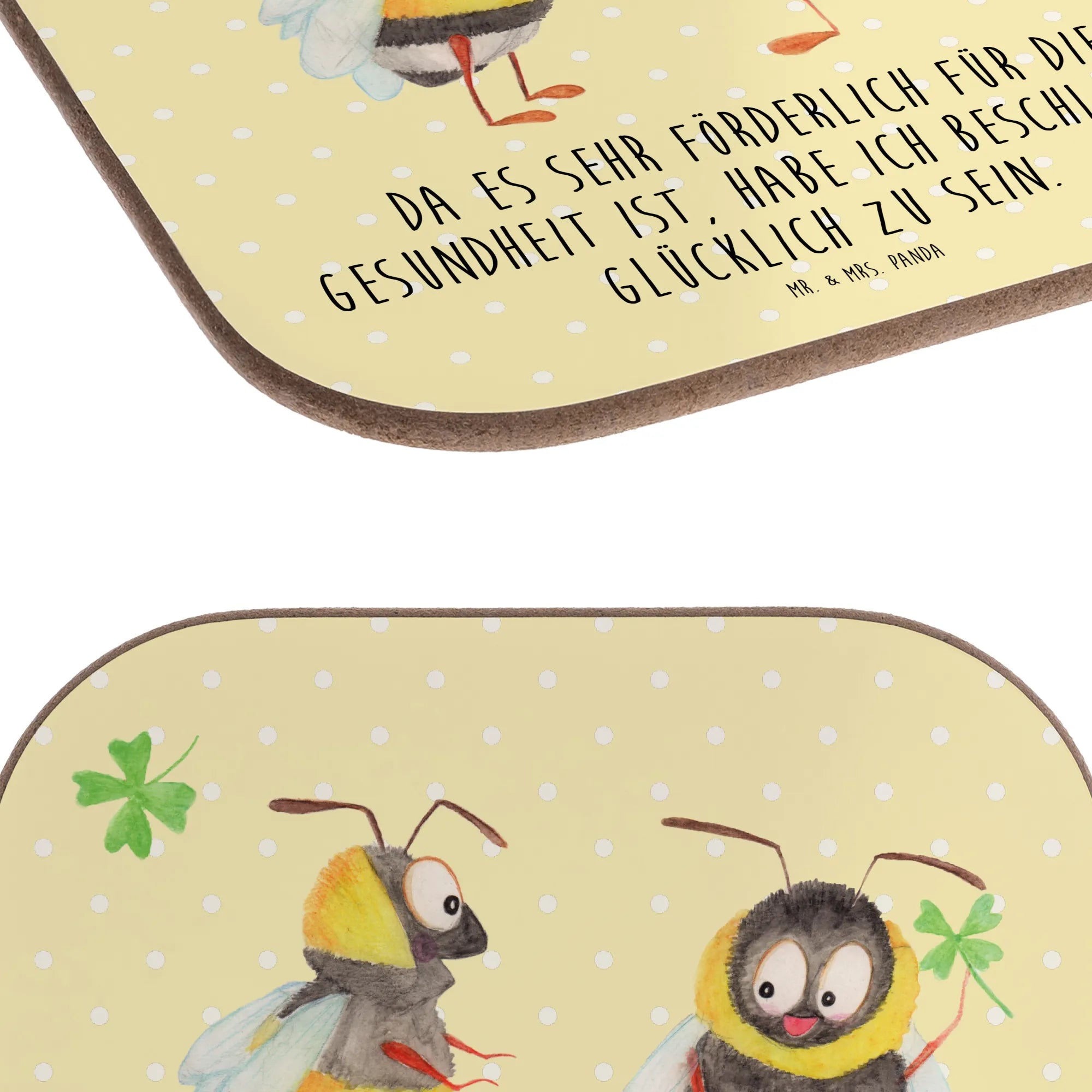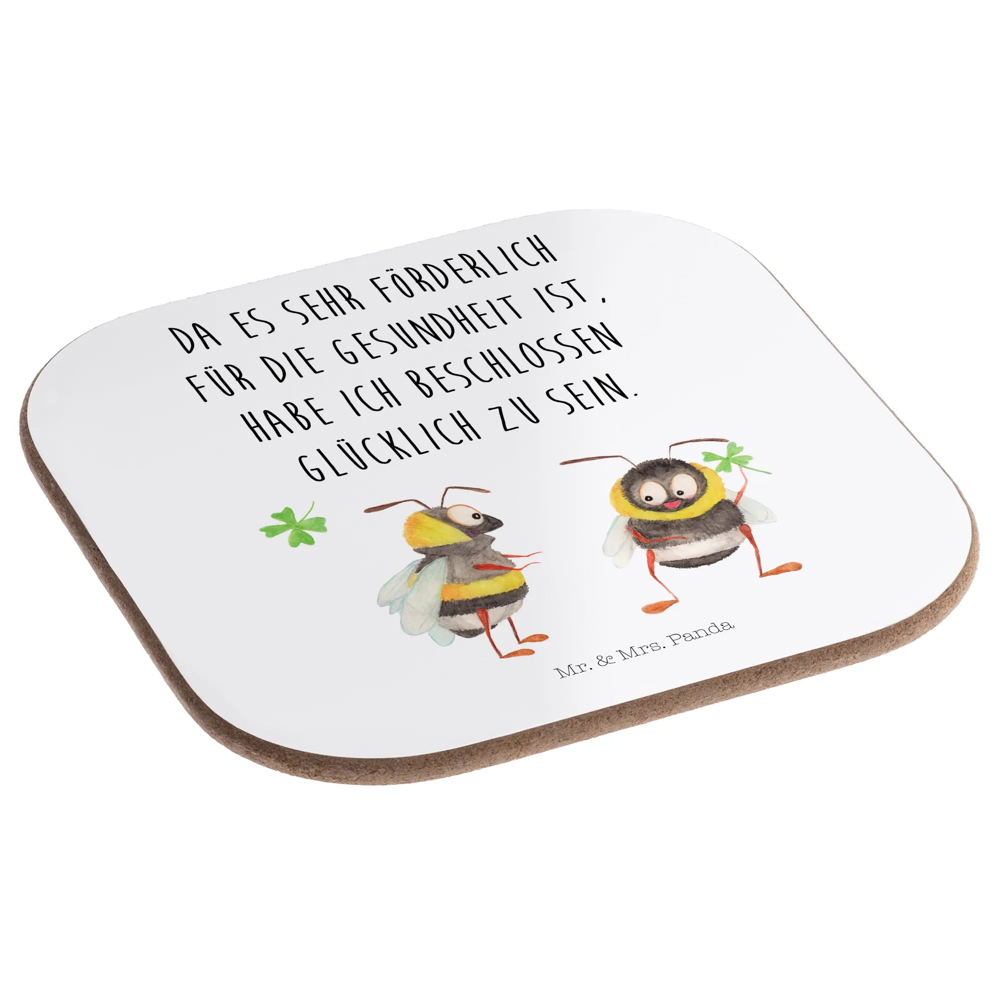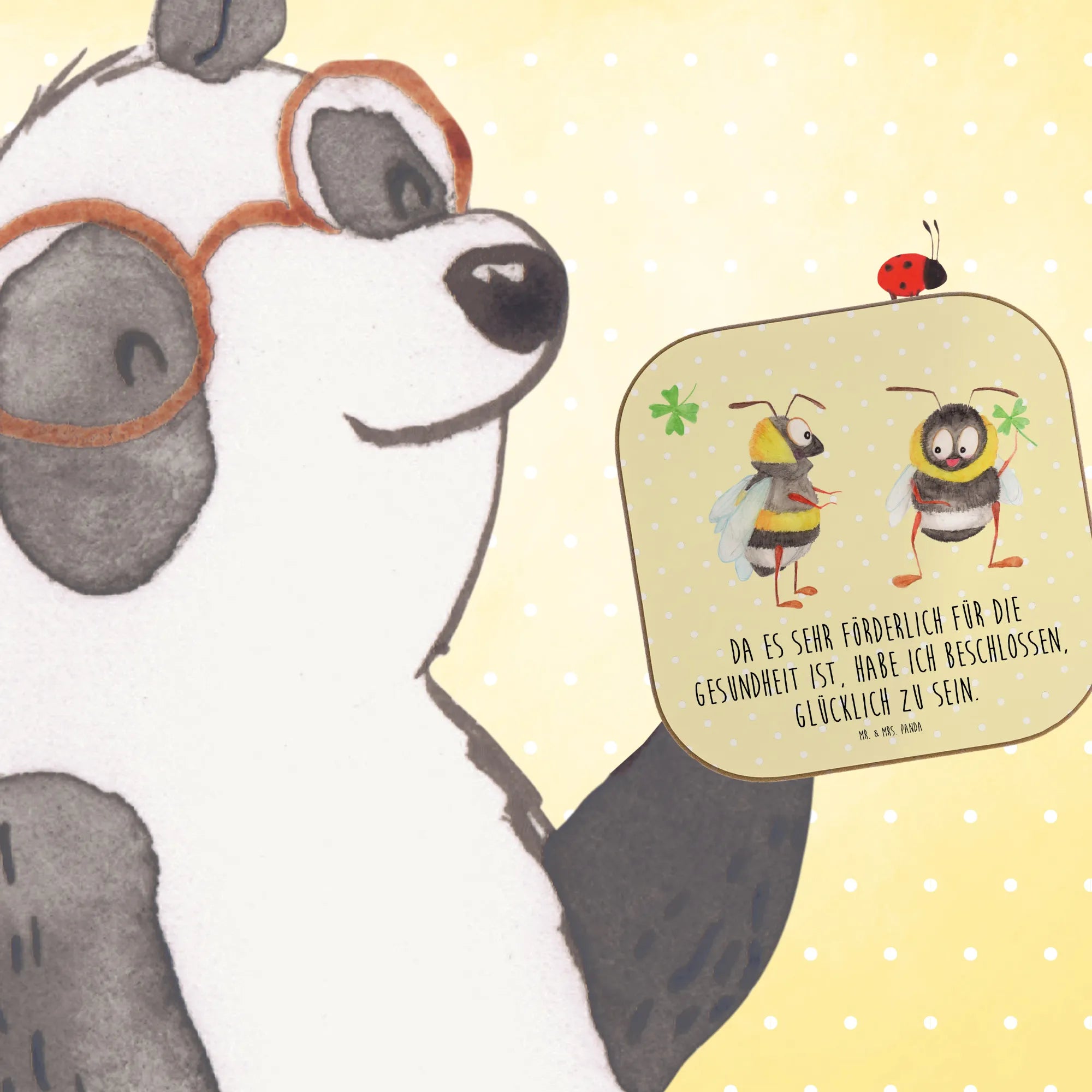 Ein kleiner Glücksbringer für deinen Tisch: Der quadratische Untersetzer „Hummeln mit Kleeblatt“ aus der Small World-Kollektion von Mr. & Mrs. Panda verbindet niedliches Design mit praktischer Funktion. Zwei liebevoll gezeichnete Hummeln halten gemeinsam ein Kleeblatt, dazu der fröhliche Spruch: „Da es sehr förderlich für die Gesundheit ist, habe ich beschlossen, glücklich zu sein.“ 🌼