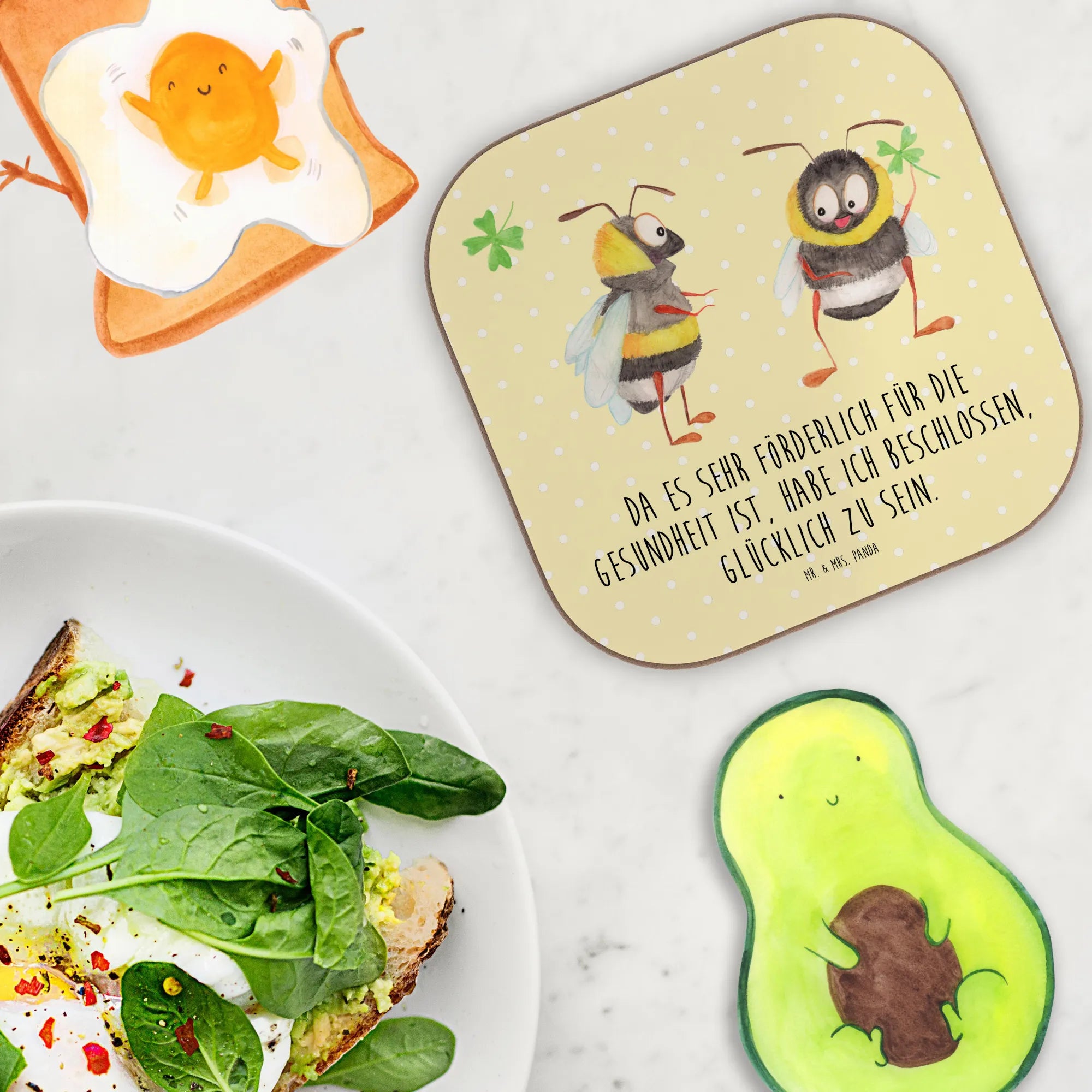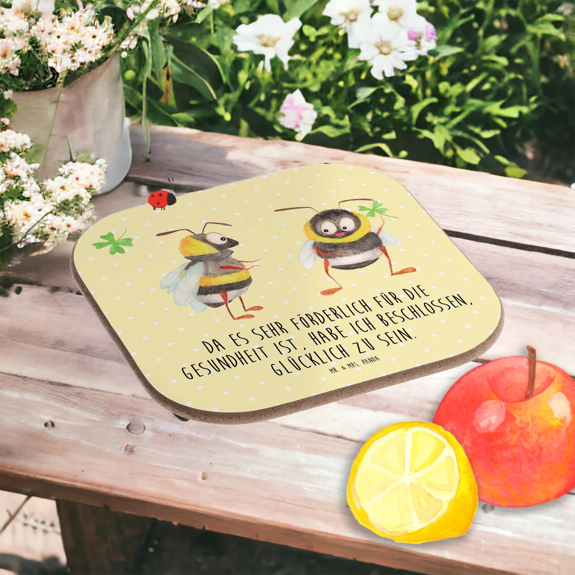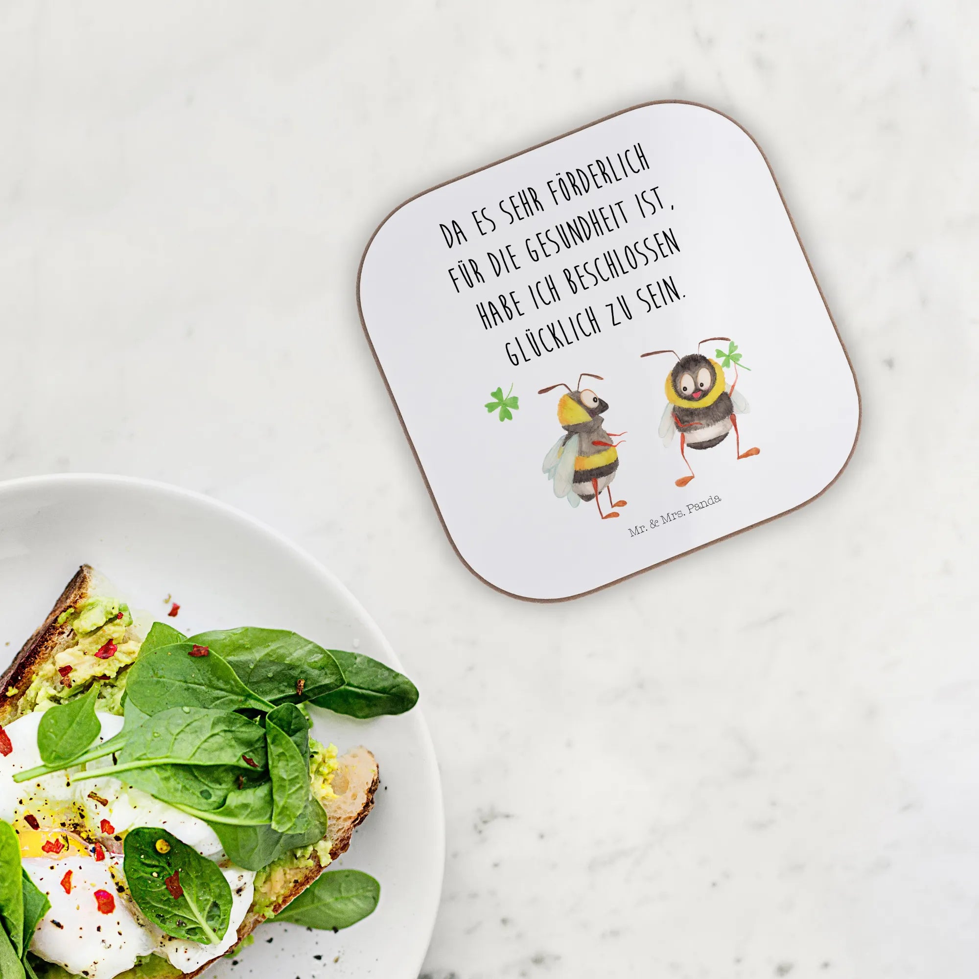 Ein kleiner Glücksbringer für deinen Tisch: Der quadratische Untersetzer „Hummeln mit Kleeblatt“ aus der Small World-Kollektion von Mr. & Mrs. Panda verbindet niedliches Design mit praktischer Funktion. Zwei liebevoll gezeichnete Hummeln halten gemeinsam ein Kleeblatt, dazu der fröhliche Spruch: „Da es sehr förderlich für die Gesundheit ist, habe ich beschlossen, glücklich zu sein.“ 🌼
