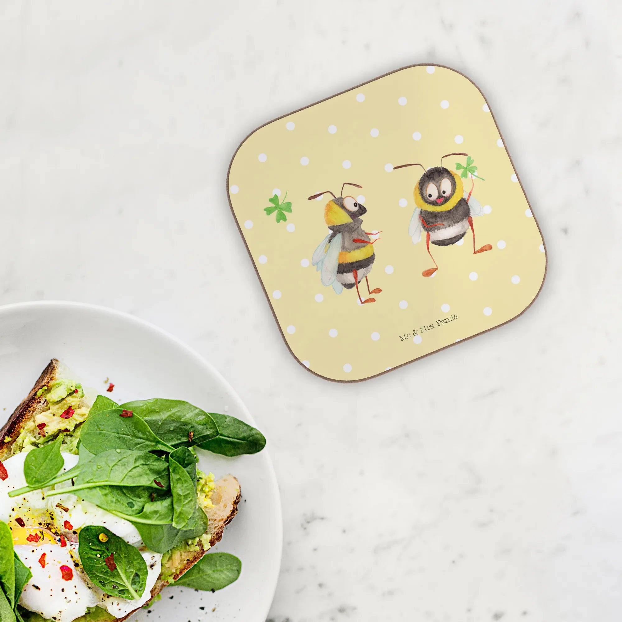 Du suchst nach dem perfekten Geschenk für Freunde oder Familie? Dann sind die Untersetzer mit dem bezaubernden Motiv der Hummeln mit Kleeblatt aus der kleinen Welt von Mr. & Mrs. Panda genau das Richtige für dich! Diese wunderschönen quadratischen Untersetzer schützen deinen Tisch vor unschönen Abdrücken und sorgen gleichzeitig für eine fröhliche Atmosphäre in deinem Zuhause.