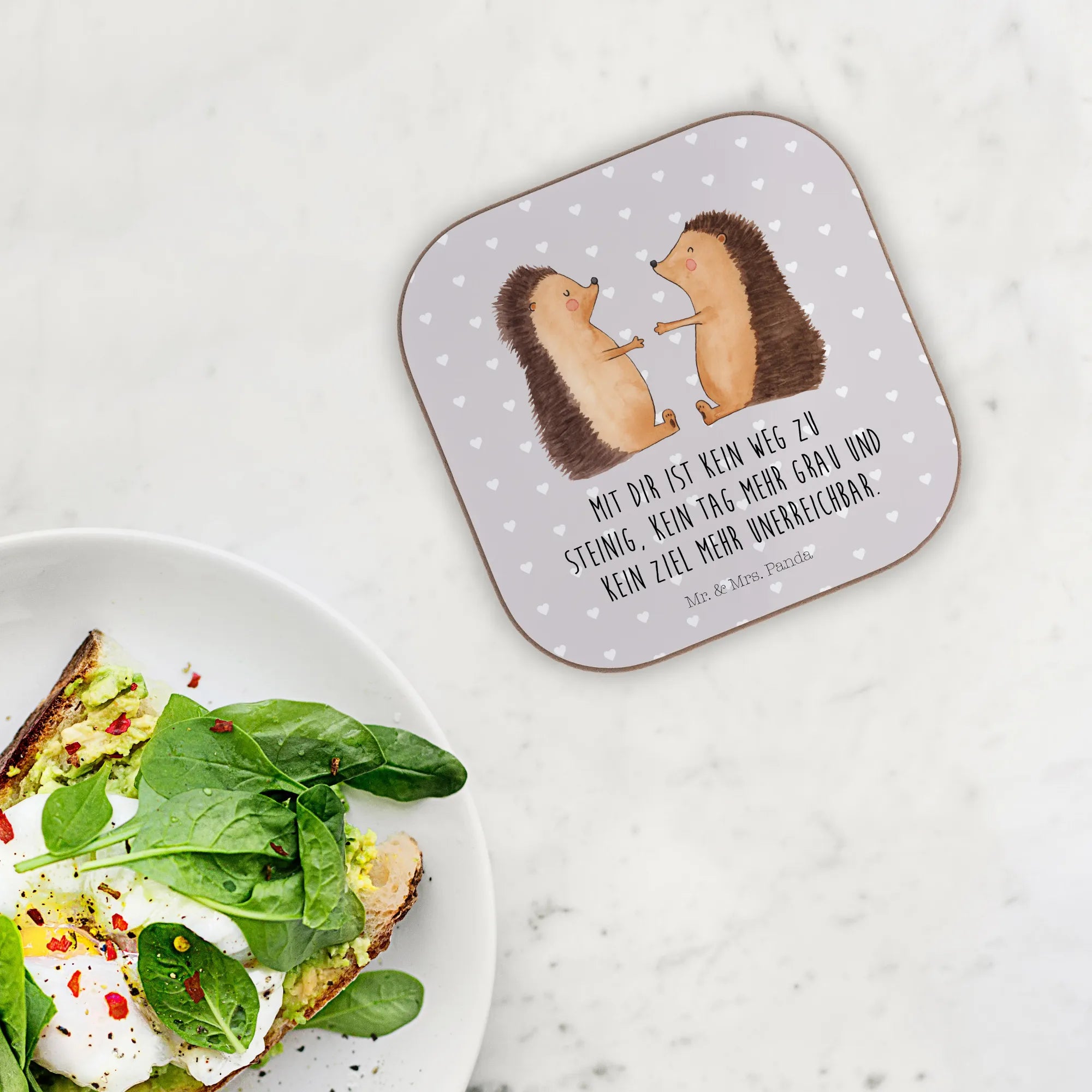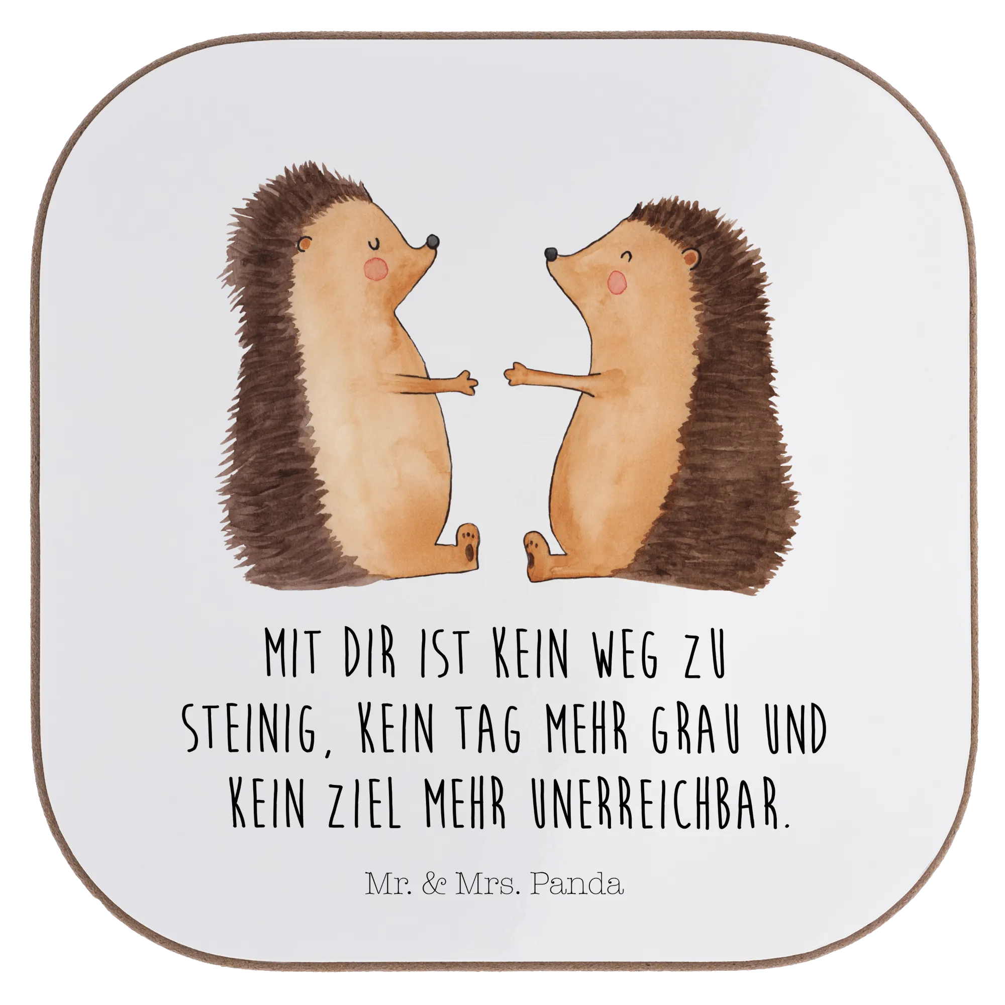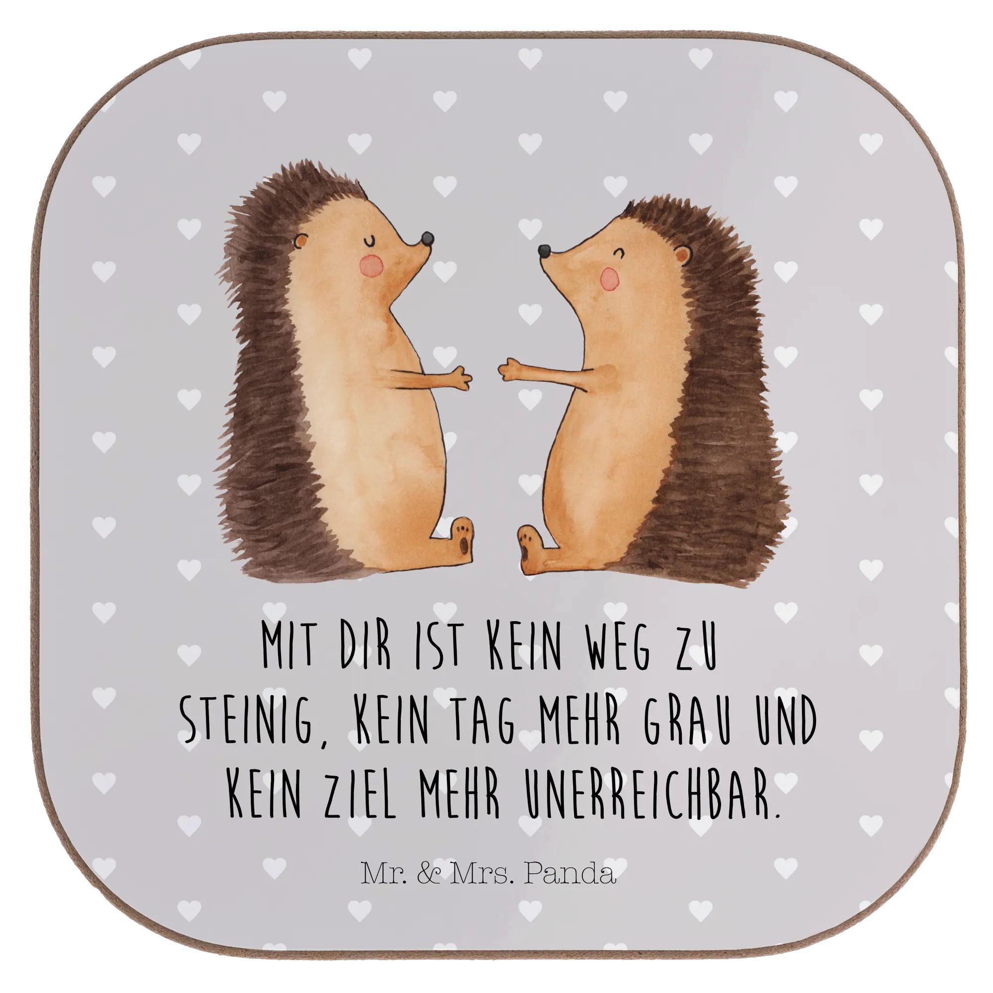 Ein kleiner Liebesgruß für jeden Tag ❤️ – Dieser quadratische Untersetzer aus der Liebe-Kollektion von Mr. & Mrs. Panda vereint süßes Motiv und sinnliche Botschaft. Die verliebten Igelchen auf pastellgrauem Hintergrund vermitteln Wärme, Zuneigung und Verbundenheit. Der eingedruckte Spruch „Mit dir ist kein Weg zu steinig, kein Tag mehr grau und kein Ziel mehr unerreichbar.“ macht den Untersetzer zu einem perfekten Liebesbeweis.