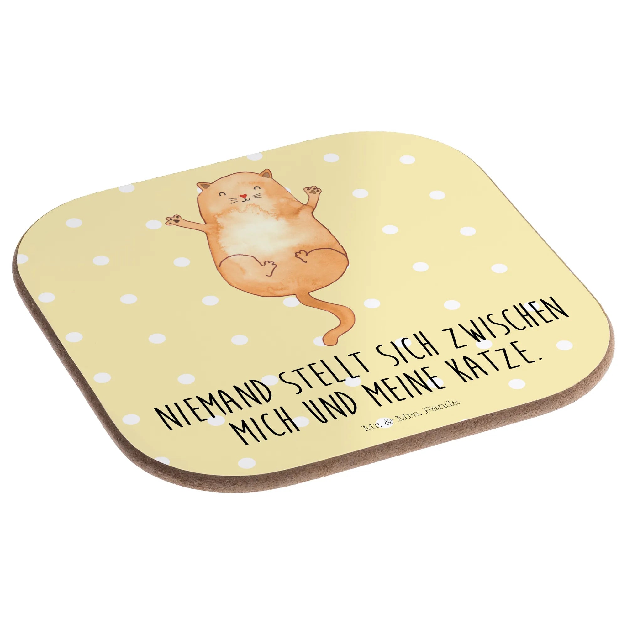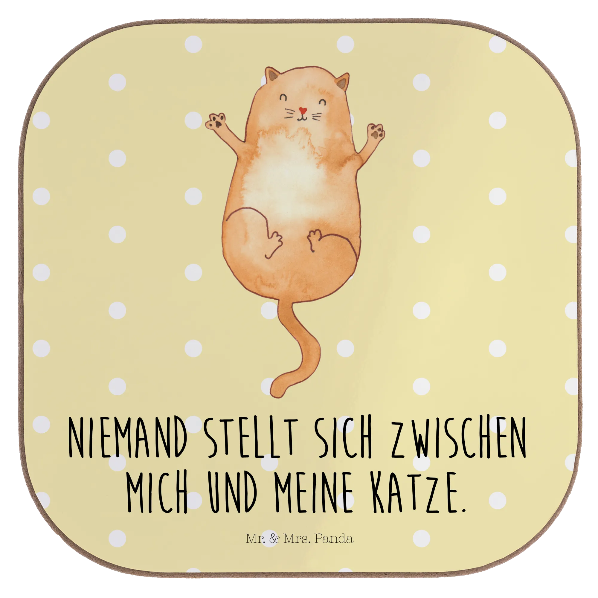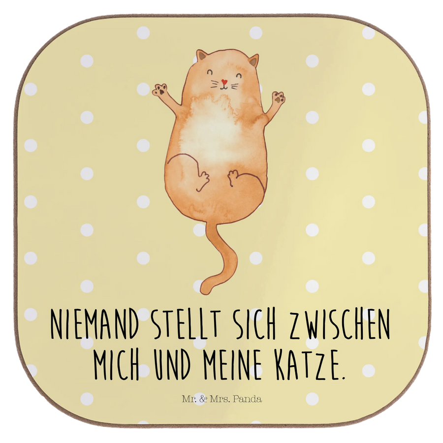 Tassenuntersetzer Katze Umarmen - mit Spruch - Gelb Pastell